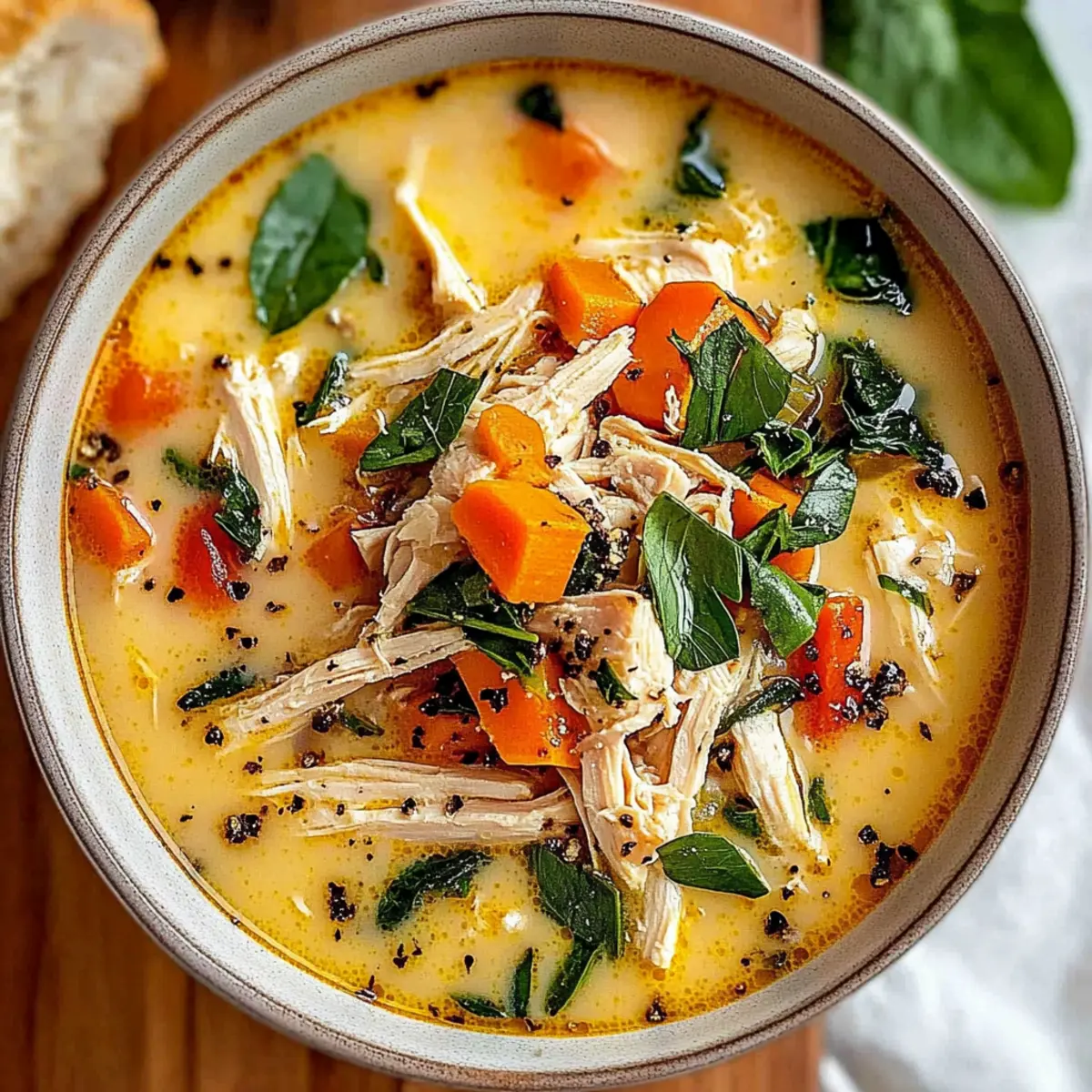 Jump to Recipe Print RecipeWith a comforting aroma and a burst of Mediterranean flavors wafting from the stovetop, I can’t help but feel transported to a sun-kissed Italian villa. This Simple Tuscan Soup is my go-to for those chilly evenings when I want something hearty yet uncomplicated—perfect for anyone craving the warmth of homemade Italian cuisine. Packed with tender shredded chicken, creamy white beans, and vibrant veggies, this dish not only satisfies the soul but also fits perfectly into a busy lifestyle, as it comes together in a single pot. It’s gluten-free, low-carb, and dairy-free, making it ideal for various dietary preferences! Are you ready to dive into a bowl of this cozy goodness? Why is Simple Tuscan Soup a Must-Try? Comforting Warmth: This Simple Tuscan Soup envelops you with warmth, making it the perfect companion for chilly nights. Flavor Explosion: Each bite is a symphony of Mediterranean flavors, featuring rich broth, tender chicken, and zesty sun-dried tomatoes that will transport your taste buds to Italy. Quick & Easy: With just one pot needed, the cleanup is as effortless as the preparation, allowing you to enjoy your meal without hassle. Crowd-Pleaser: Ideal for family dinners or gatherings, this dish promises to impress with its rich flavors and appealing textures! Health-Conscious: Gluten-free, low-carb, and dairy-free, this recipe accommodates a variety of dietary needs, ensuring everyone at the table can enjoy a bowl. Make sure to pair it with some crusty bread or a fresh salad for a complete meal. Dive into this delightful soup and experience the joy of homemade Italian comfort! Simple Tuscan Soup Ingredients • A delightful mix for comfort! For the Soup Base Olive Oil – Adds rich flavor and helps sauté the vegetables; avocado oil can be a tasty alternative. Onion – Provides a savory foundation; substitute with shallots for a milder touch. Carrots – Adds sweetness and color; you could swap in parsnips or sweet potatoes if desired. Garlic – Boosts flavor with its aromatic essence; fresh is best, but powdered can suffice in a pinch. Sun-Dried Tomatoes – Intensifies the tomato essence in this Simple Tuscan Soup; fresh cherry tomatoes are a great replacement for a lighter bite. Tomato Paste – Thickens the broth and enhances depth; adjust for preferred consistency. White Wine – Introduces acidity and complexity; for a non-alcoholic version, vegetable broth is a fitting substitute. Chicken Broth – Acts as the soup’s flavorful base; using homemade stock amplifies depth, while vegetable broth makes it vegetarian-friendly. For Creaminess Heavy Cream – Adds silky richness; coconut cream serves as a wonderful non-dairy alternative. For Protein and Fiber Shredded Chicken – The source of protein; rotisserie chicken is a quick choice, but feel free to use cooked turkey as an option. Cannellini Beans – Brings fiber and heartiness to the dish; substitute with any white bean if desired. For Color and Nutrition Fresh Spinach – Adds vibrant greenery and nutrients; kale or Swiss chard can replace it easily. For Seasoning Salt, Black Pepper, Oregano, Crushed Red Pepper, Thyme, Italian Seasoning – Elevates the overall flavor; adjust these to suit your taste and desired heat level. Step‑by‑Step Instructions for Simple Tuscan Soup Step 1: Heat the Base In a Dutch oven, heat 2 tablespoons of olive oil over medium heat. Once the oil shimmers, add one diced onion, sautéing for about 3 minutes until it turns soft and transparent, releasing a fragrant aroma. This will create a savory foundation for your Simple Tuscan Soup. Step 2: Add the Vegetables Next, stir in two sliced carrots and continue cooking for another 3 minutes, allowing them to soften. As they become tender, mix in 3 minced garlic cloves for about 30 seconds, just until you can smell the aromatic flavor, further enriching the soup. Step 3: Enhance with Tomatoes Now, add in a quarter cup of chopped sun-dried tomatoes along with 2 tablespoons of tomato paste. Cook everything together for 1-2 minutes, stirring frequently until the tomatoes release their oils and meld beautifully with the sautéed vegetables, enhancing the flavor of your Simple Tuscan Soup. Step 4: Deglaze with Wine Pour in half a cup of white wine, letting it simmer for 2-3 minutes to reduce slightly. This step brings depth to the soup, allowing the alcohol to cook off while infusing a subtle complexity, setting the stage for the vibrant flavors ahead. Step 5: Build the Broth Add in 4 cups of chicken broth along with a can of rinsed cannellini beans. Season with salt, black pepper, oregano, crushed red pepper, thyme, and Italian seasoning to taste. If you prefer a thicker texture, blend one cup of the soup and return it to the pot, allowing it to enhance the richness. Step 6: Incorporate Chicken and Simmer Stir in 2 cups of shredded chicken and a couple of bay leaves. Increase the heat slightly and let the soup simmer uncovered for at least 15 minutes. This allows all the flavors to meld together beautifully while the soup thickens to a comforting consistency. Step 7: Finish with Greens Remove the bay leaves, then add 2 cups of fresh spinach into the pot. Stir until the spinach wilts, which will take only a couple of minutes. Taste your Simple Tuscan Soup one last time and adjust the seasoning as necessary to ensure it’s absolutely perfect before serving. What to Serve with Simple Tuscan Soup? With fragrant spices and a creamy, savory texture warming the pot, it’s easy to imagine the delightful meal that pairs perfectly with this comforting bowl of goodness. Crusty Bread: Nothing complements the richness of the soup better than freshly baked crusty bread for dipping. It adds a satisfying crunch and absorbs the flavorful broth beautifully. Fresh Green Salad: A light, crisp salad with mixed greens and a tangy vinaigrette provides a refreshing contrast, balancing the hearty flavors of your Tuscan soup. Top it with c