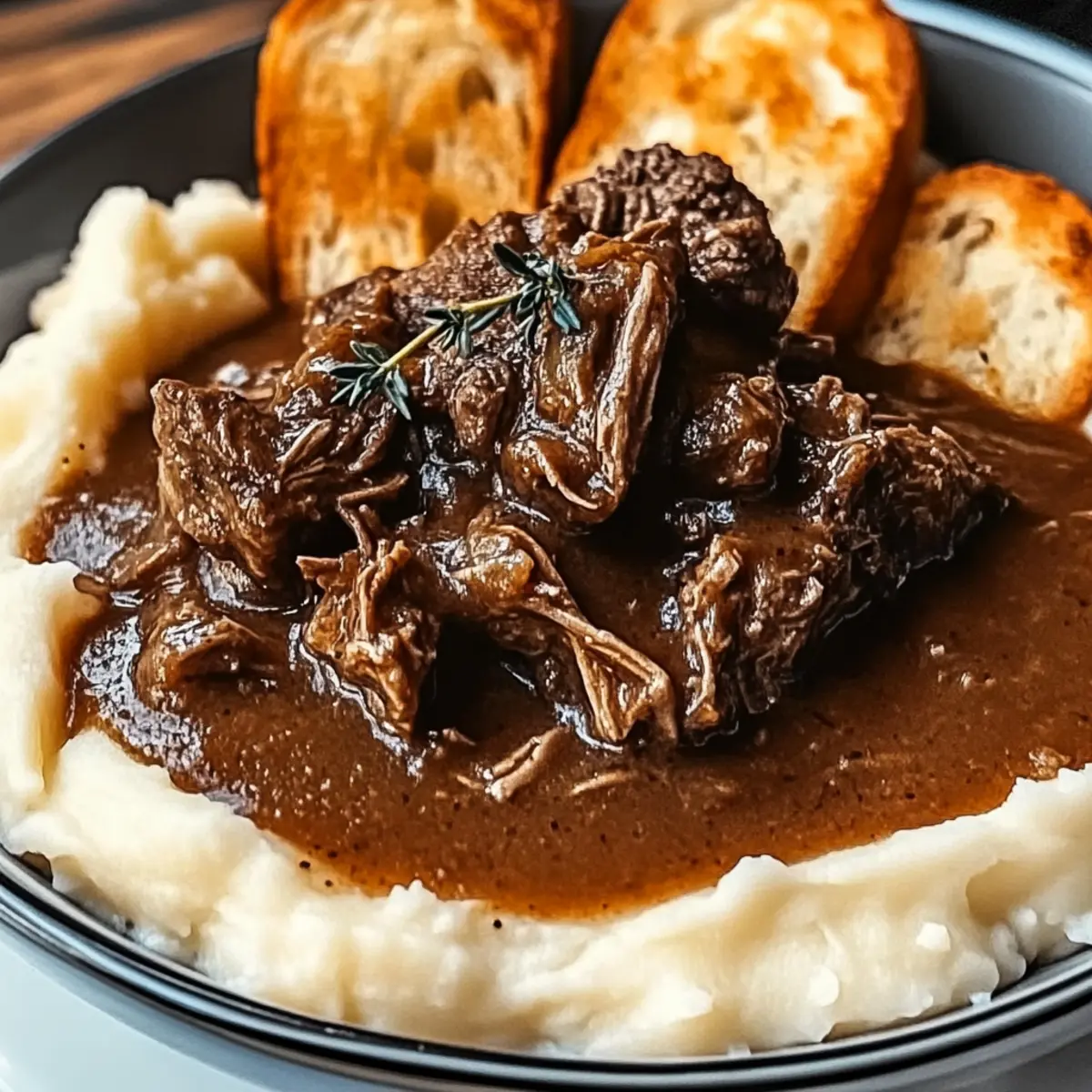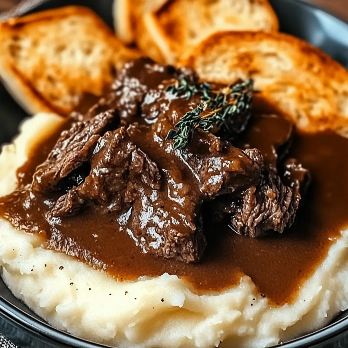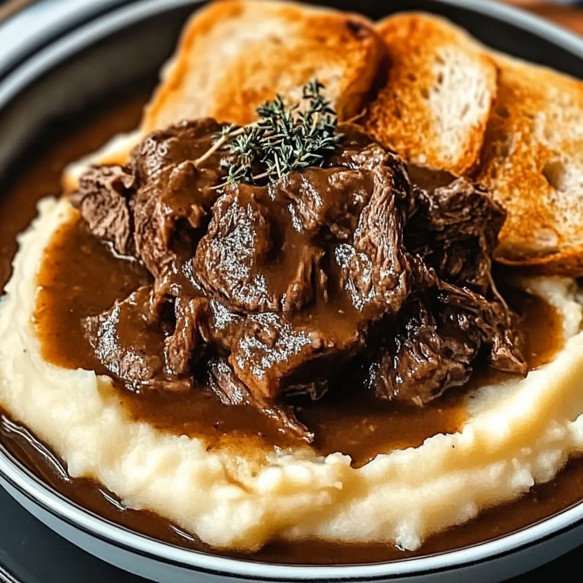 Jump to Recipe Print RecipeThere’s something magical about a slow cooker, isn’t there? With just a few humble ingredients, it transforms into your kitchen’s best friend, serving up the heartwarming Slow Cooker Beef Manhattan. Imagine tender beef bathed in a savory brown gravy, nestled on fluffy mashed potatoes and toasted bread—food that wraps you in a cozy hug. What I love most about this dish is its ease; it requires minimal prep time, allowing you to shift your focus to a good book or a movie while it simmers away. Plus, it’s a customizable delight, as you can easily swap out the beef for turkey or add in seasonal veggies for extra nutrition. Whether you’re looking to soothe a chilly night or simply want a comforting meal at the end of a busy day, this recipe has got your back. Are you ready to discover how to create this delicious classic? Why is Slow Cooker Beef Manhattan a Must-Try? Simplicity: Just toss everything into the slow cooker—no fussing over complicated steps. Heartwarming Flavor: The meltingly tender beef in rich gravy creates a dish that truly warms the soul. Customizable: Swap beef for turkey or add vibrant veggies like carrots for a twist! Crowd-Pleaser: Perfect for family gatherings, this recipe will impress both picky eaters and foodies alike. Perfect For Chilly Evenings: It’s the ideal comfort food to curl up with on a cold day. Don’t forget to serve it alongside creamy mashed potatoes or a fresh garden salad—it’s a meal everyone will savor! Slow Cooker Beef Manhattan Ingredients For the Beef Beef Roast – Choose chuck or round for optimal tenderness, as this ensures juicy, fork-tender meat. For the Sauce Beef Broth – This savory base brings richness; opt for low-sodium for a healthier alternative. Worcestershire Sauce – Adds depth of flavor; soy sauce can be a quick substitute. Soy Sauce – Enhances saltiness; use a gluten-free version if necessary. For the Seasoning Garlic Powder – Infuses a warm, aromatic flavor; feel free to use fresh garlic for more punch. Onion Powder – Complements the fresh onion used and deepens the flavor experience. Dried Thyme – Brings an herbaceous touch; Italian seasoning works well as a substitute. Black Pepper – Essential for enhancing overall flavor; adjust to your taste. Salt – Balances all the flavors; use lower sodium options if desired. For Thickening Cornstarch – This key ingredient thickens the gravy; mix with cold water to create a smooth slurry. Cold Water – Necessary for making that perfect cornstarch slurry. For Serving Bread – The foundation of your dish; white or Texas toast is perfect for soaking up the gravy. Mashed Potatoes – Complements the dish beautifully; whether homemade or store-bought, it adds creaminess. Optional Add-ins Vegetables – Add seasonal favorites like carrots or peas for nutrition and color. Sweet Potatoes – A sweet twist in lieu of traditional mashed potatoes can elevate the dish. With these ingredients, you’ll have everything you need to make a delightful Slow Cooker Beef Manhattan that promises a hearty, fulfilling meal. Happy cooking! Step‑by‑Step Instructions for Slow Cooker Beef Manhattan Step 1: Prepare the Base Start by slicing a large onion and placing it evenly across the bottom of your slow cooker. This layer will infuse the beef with sweetness and depth as it cooks. Make sure the onions are distributed well, as they will caramelize beautifully during the cooking process, forming a flavorful base for your Slow Cooker Beef Manhattan. Step 2: Add the Beef Roast Next, lay your beef roast, preferably chuck or round, atop the onion layer. Ensure it fits snugly but doesn’t overcrowd the cooker. This will allow the beef to become wonderfully tender as it cooks. Make sure the meat is set down gently to keep the onion layer intact underneath. Step 3: Pour in the Liquids Pour beef broth, Worcestershire sauce, and soy sauce directly over the beef. Aim for enough liquid to partially submerge the roast without making the entire mixture soupy. This savory liquid is key to developing a rich sauce that will soak into the beef, creating that beloved comfort-food flavor associated with Slow Cooker Beef Manhattan. Step 4: Season the Meat Sprinkle garlic powder, onion powder, dried thyme, black pepper, and salt over the beef roast. Use your hands to gently rub the seasonings into the meat for even coverage. This step is essential for flavor development; the spices will penetrate the beef as it cooks, ensuring every bite is deliciously seasoned. Step 5: Cook Low and Slow Cover the slow cooker with its lid and set it to LOW for 8 hours, or HIGH for 4-5 hours. This gentle simmer allows the collagen in the beef to break down, making it fork-tender. You’ll know it’s ready when you can easily shred the meat with two forks, revealing the juicy texture we all desire in a Slow Cooker Beef Manhattan. Step 6: Shred the Beef Carefully remove the cooked beef from the slow cooker and let it rest for a few minutes. Once cooled slightly, use two forks to shred the beef into bite-sized pieces. This step not only adds to the dish’s texture but also helps it absorb more of the flavorful gravy later on when reassembled. Step 7: Create the Gravy Strain the onion and liquid mixture from the slow cooker into a saucepan to separate the solids from the flavorful broth. In a small bowl, whisk cornstarch with cold water to form a slurry, then stir it into the strained mixture on medium heat. Cook for about 15 minutes or until thickened, creating a rich gravy that beautifully complements your Slow Cooker Beef Manhattan. Step 8: Assemble and Serve To serve, layer toasted bread on a plate, then add a generous scoop of creamy mashed potatoes on top. Next, pile the shredded beef over the potatoes, ensuring each bite will be packed with flavor. Finally, drizzle the thick gravy over the entire dish for a comforting and delicious finish that celebrates the essence of comfort food 