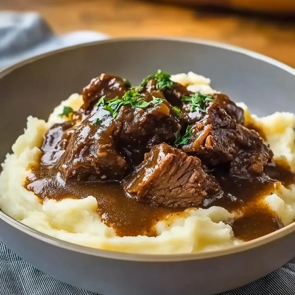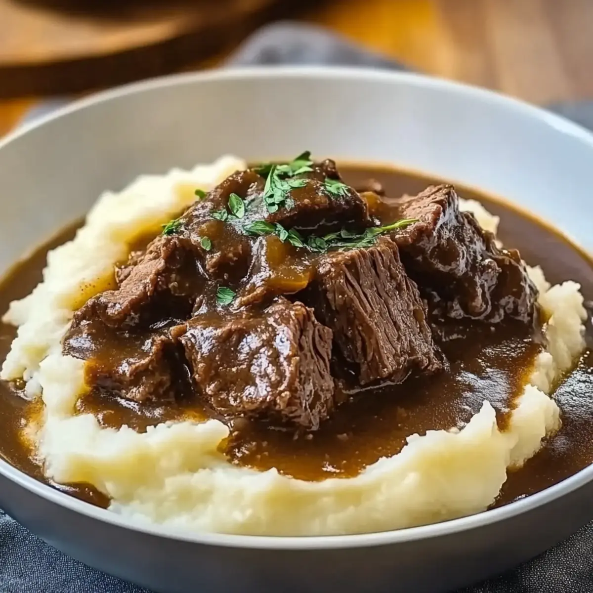 Jump to Recipe Print RecipeAs I took a moment to stir the savory fragrance wafting from my slow cooker, memories of family dinners flooded my mind. This Hearty Slow Cooker Beef Manhattan has become my go-to comfort food, pulling everyone in with its rich aroma and warm, inviting presence. The beauty of this recipe lies not only in its melt-in-your-mouth beef and luscious brown gravy but also in its effortless preparation. Just throw everything in and let your slow cooker do the magic! Whether you’re juggling a busy weeknight or planning a cozy family gathering, this dish is a true crowd-pleaser that saves you time while delivering ultimate comfort. Are you ready to dive into this deliciously nostalgic experience? Why Is This Recipe So Inviting? Simplicity: With just a few ingredients and minimal prep, this slow cooker beef Manhattan is straightforward to whip up. Amazing Flavor: The slow cooking process allows the beef to absorb all the delicious seasonings, resulting in a rich and tender experience that’s hard to resist. Family-Friendly: Perfect for all ages, this dish brings everyone together for a warm, satisfying meal after a long day. Versatile: Feel free to customize by adding your favorite veggies or serving it over egg noodles with this Beef Pepper Rice or Ground Beef Dumplings option. Time-Saving: Just set it and forget it! Your slow cooker does all the work, allowing you to focus on other tasks while it simmers away. Comfort Food Classic: There’s something undeniably heartwarming about a bowl of beef Manhattan with gravy over mashed potatoes, perfect for cozy family dinners. Slow Cooker Beef Manhattan Ingredients For the Beef • Beef Chuck Roast – The star of the dish, ideal for slow cooking and tenderness. Substitute with brisket or round roast if needed. For the Gravy • Beef Broth – Provides depth and moisture; chicken or vegetable broth can be used as a substitute. • Brown Gravy Mix – Essential for thickening and flavor; for homemade gravy, use cornstarch mixed with broth. • Worcestershire Sauce – Adds a savory umami kick; soy sauce serves as a great alternative. For the Aromatics • Onion – Infuses sweetness and enhances flavor; yellow or white onion works best. • Garlic Powder – Elevates the savory notes; feel free to use fresh minced garlic for added richness. For Serving • Mashed Potatoes – Acts as a comforting base; garlic mashed potatoes add a delightful twist. • Salt and Black Pepper – Necessary for enhancing taste; adjust to your preference. For Thickening (Optional) • Cornstarch – Helps thicken the gravy; mix with water to create a slurry for easy use. This Hearty Slow Cooker Beef Manhattan is a perfect blend of flavors and textures that promises to warm up your family gatherings and cozy dinners. Step‑by‑Step Instructions for Hearty Slow Cooker Beef Manhattan Step 1: Season the Beef Begin by generously seasoning your beef chuck roast with salt, black pepper, and garlic powder. This will enhance the flavor of the meat as it cooks. Use your hands to rub the spices into the beef thoroughly. Aim to create an even coating for the best taste. Set the roast aside while you prepare the slow cooker. Step 2: Prepare the Slow Cooker Layer the bottom of your slow cooker with sliced onions, creating a savory base for the Hearty Slow Cooker Beef Manhattan. Next, carefully place the seasoned beef on top of the onions, allowing the juices to meld during cooking. This method ensures that the meat becomes tender and flavorful as it simmers. Step 3: Whisk the Gravy Mixture In a separate bowl, whisk together the beef broth, brown gravy mix, and Worcestershire sauce until smooth. This mixture will serve as the rich gravy that envelops the beef. Pour the gravy mix evenly over the beef and onions in the slow cooker, ensuring the roast is well-coated and ready to absorb all those delicious flavors. Step 4: Slow Cook for Tenderness Cover the slow cooker and set it to cook on low for about 8 hours. This slow cooking process allows the flavors to deepen while the beef becomes fork-tender. Avoid lifting the lid during this time to maintain a consistent cooking temperature. As the hours pass, the delightful aroma will fill your kitchen, making it tempting to peek! Step 5: Thicken the Gravy (Optional) After the cooking time has elapsed, carefully remove the beef from the slow cooker, placing it on a cutting board. If you desire a thicker gravy, whisk together cornstarch and some water to create a slurry. Stir this slurry into the remaining cooking liquid in the slow cooker, and let it cook on high for an additional 10-15 minutes until the gravy thickens. Step 6: Shred and Serve Once the gravy reaches your desired thickness, shred the beef using two forks and return it to the slow cooker, stirring to combine it with the rich gravy. To serve, dish out a generous scoop of creamy mashed potatoes onto each plate, and top it with the beef and gravy mixture, ensuring a hearty serving of comfort with every bite. How to Store and Freeze Hearty Slow Cooker Beef Manhattan Fridge: Store leftovers in an airtight container in the refrigerator for up to 3 days. This keeps your comfort food fresh for those late-night cravings. Freezer: Freeze portions in freezer-safe containers for up to 2 months. Make sure to label them with the date for easy tracking and enjoy a quick meal later! Reheating: When ready to enjoy, thaw overnight in the fridge, then reheat on the stovetop or in the microwave until hot throughout, ensuring the hearty flavors of your Slow Cooker Beef Manhattan shine through. Wrapping: If you prefer individual servings, wrap each portion tightly in plastic wrap before placing them in the container to prevent freezer burn and maintain quality. What to Serve with Hearty Slow Cooker Beef Manhattan Imagine the warmth of a family gathering, the savory aroma filling the air as you create an inviting meal to share with loved ones. Garlic Bread: The buttery, garl