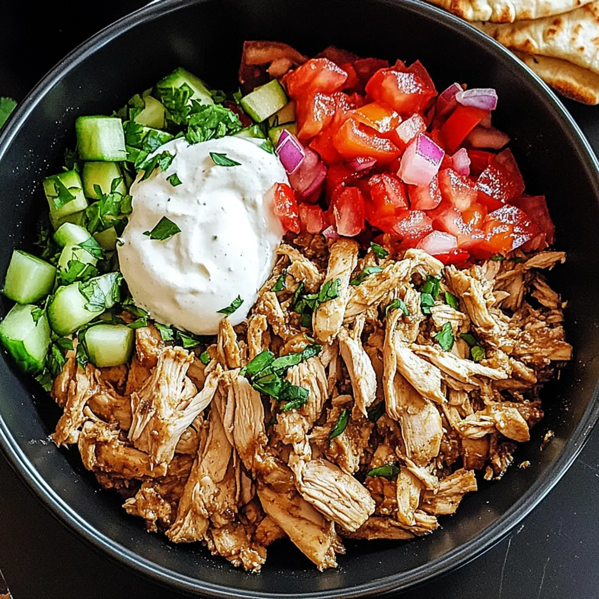 Jump to Recipe Print RecipeAs the aroma of spices wafts through the kitchen, I can’t help but feel transported to a bustling Middle Eastern street market. Today, I’m thrilled to share my Slow Cooker Chicken Shawarma recipe—a simple yet delightful way to bring those vibrant flavors right to your dining table. This dish not only features juicy, tender chicken marinated in a warm spice blend but also offers an effortless meal prep option. It’s a perfect solution for busy weeknights or for impressing guests around the dinner table. Pair it with fluffy pita bread or turmeric rice for an extra touch of comfort and freshness. Are you ready to transform your dinner routine with this easy, crowd-pleasing gem? Why is this shawarma recipe a must-try? Flavor-Packed seasoning brings a taste of the Middle East right to your home. Effortless cooking means you can set it and forget it while the slow cooker works its magic. Meal Prep-Ready, the leftovers are perfect for a busy week—reheat and serve with fresh toppings! Versatile enough to pair with pita, rice, or salads, this dish adapts to your lifestyle. Impressive yet simple, it’s bound to become a favorite for family gatherings or cozy dinners! Slow Cooker Chicken Shawarma Ingredients • Get ready to create a masterpiece of flavor with these essential elements! For the Shawarma Boneless, Skinless Chicken Thighs – Stays juicy during cooking and shreds easily for perfect serving. Plain Whole-Milk Yogurt – Tenderizes chicken and adds tang; substitute with thick plant-based yogurt or olive oil for a dairy-free option. Lemon Juice & Zest – Brightens the dish and enhances flavor; use bottled lemon juice in a pinch, but fresh zest is a game-changer! Garlic & Onion – Aromatic base for rich flavor; you can swap in garlic and onion powder for convenience (1 tsp each). For the Spice Blend Cumin – Provides a warm, earthy flavor that’s essential for authentic shawarma. Coriander – Adds a citrusy note to the spice mix, enhancing the overall depth. Smoked Paprika – Brings a subtle smokiness; try adjusting to taste if you love that flavor! Turmeric – Lends a beautiful golden color and adds health benefits. Cinnamon – Offers warmth and sweetness; omit cardamom and increase for a delightful substitution. Cardamom – For that distinctive shawarma warmth (omit if not available). For Cooking Olive Oil – Ensures flavor absorption and keeps chicken moist throughout the cooking process. Salt & Black Pepper – Essential for seasoning; adjust to suit your taste preference. Embrace this Slow Cooker Chicken Shawarma as it transforms your meal into a vibrant feast! Step‑by‑Step Instructions for Slow Cooker Chicken Shawarma Step 1: Prepare the Marinade In a large mixing bowl, combine plain whole-milk yogurt, olive oil, minced garlic, lemon zest, and lemon juice. Add the spice blend of cumin, coriander, smoked paprika, turmeric, cinnamon, and a pinch of salt and pepper. Stir until fully combined, creating a fragrant marinade that envelops your senses and sets the stage for delicious Slow Cooker Chicken Shawarma. Step 2: Marinate the Chicken Add the boneless, skinless chicken thighs to the marinade, ensuring each piece is thoroughly coated. For the best flavor, allow the chicken to marinate for 30 minutes at room temperature or up to 12 hours in the fridge for a deeper infusion of taste. The goal is to tenderize and flavor the meat beautifully before it slowly cooks. Step 3: Prepare the Slow Cooker While the chicken is marinating, slice an onion and scatter the pieces evenly in the bottom of your slow cooker. The onions will infuse flavor during cooking and create a delightful base for your Slow Cooker Chicken Shawarma, enhancing the overall dish while providing a sweet aroma. Step 4: Cook the Chicken Once the chicken is marinated, place it directly on top of the layer of onions in the slow cooker. Cover the cooker and set it to LOW for 6–7 hours or HIGH for 3–4 hours. You’ll know it’s done when the chicken is tender and easily shreds, filling your kitchen with irresistible, spicy scents. Step 5: Shred the Chicken After cooking, transfer the chicken to a cutting board and shred it using two forks for easy serving. Incorporate some of the slow cooker juices back into the shredded chicken for added moisture and flavor. This will ensure each bite is juicy and flavorful, perfect for your Slow Cooker Chicken Shawarma assembly. Step 6: Broil for Crispiness For that perfect finish, preheat your broiler while spreading the shredded chicken on a foil-lined baking sheet. Drizzle with olive oil and broil for 5–8 minutes, turning halfway. Watch for golden-brown crispy bits to form, enhancing the texture of the chicken, just like authentic shawarma. Step 7: Serve and Enjoy Now it’s time to serve your Slow Cooker Chicken Shawarma! Fill warm pita bread with the tender, spiced chicken and top with fresh toppings like diced tomatoes, cucumbers, or creamy garlic sauce. Enjoy the flavors that shine through every bite, making this a memorable meal for any occasion. Make Ahead Options These Slow Cooker Chicken Shawarma preparations are perfect for busy home cooks looking to save time during the week! You can marinate the chicken in the yogurt and spice blend up to 24 hours in advance, which allows the flavors to penetrate deeply for that mouthwatering taste. Simply store the marinated chicken in an airtight container in the refrigerator until you’re ready to cook. Additionally, once the chicken is cooked, it can be refrigerated for up to 4 days or frozen for up to 3 months. When it’s time to serve, gently reheat the chicken in the slow cooker or on the stovetop, adding a splash of water or cooking juices to maintain its juiciness. Finish by broiling for that crispy texture just before serving, giving you restaurant-quality results with minimal effort! What to Serve with Slow Cooker Chicken Shawarma As you savor the delightful warmth of spices in 