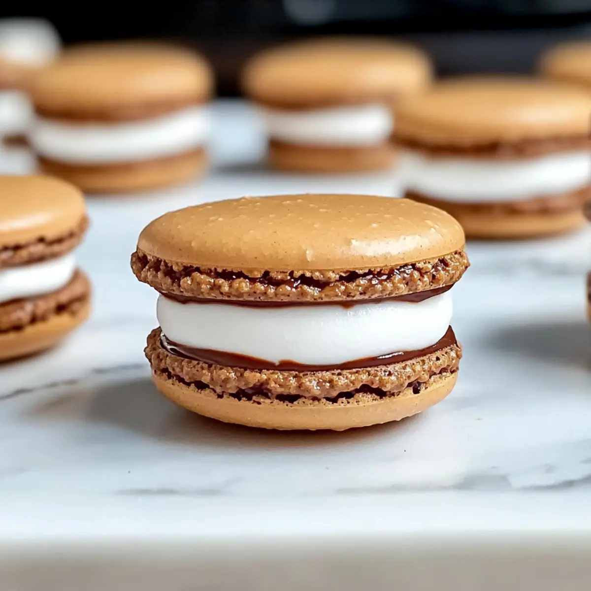 Jump to Recipe Print RecipeAs I sifted through boxes of graham crackers in my pantry, the scent of nostalgia hit me like a warm summer breeze. It reminded me of cozy nights spent around the campfire, roasting marshmallows and sharing smiles. Today, I’m excited to take those timeless flavors and transform them into something indulgent: S’mores Macarons. These delightful treats combine a velvety chocolate ganache with a fluffy marshmallow filling, all nestled between crunchy, chewy macarons. Not only are they a crowd-pleaser, but they also deliver the classic taste of s’mores without the need for an outdoor grill. Plus, they’re gluten-friendly depending on your graham cracker choice! Ready to impress your friends and family with these gourmet goodies? Let’s dive in and make some magical memories! Why Are S’mores Macarons Unforgettable? Nostalgic Delight: These macarons capture the essence of summer nights around the campfire, offering a modern twist on a classic treat. Zero Grill Needed: Enjoy the beloved s’mores flavor any time of year without needing to step outside or light a fire. Gourmet Appeal: Impress your guests with these elegant, upscale cookies that are as beautiful as they are tasty. Perfectly Balanced: The creamy chocolate ganache and fluffy marshmallow filling create a harmonious blend that delights the palate. Versatile Treat: Whether it’s a casual gathering or a festive celebration, these macarons make any occasion special. Plus, if you’re keen on exploring more delightful dessert options, be sure to check out my guide on perfectly baked macarons! S’mores Macarons Ingredients • Dive into the sweet world of S’mores Macarons with these essential ingredients! For the Macaron Shells Almond Flour – Provides a silky smooth texture; use superfine for best results. Confectioner’s Sugar – Sweetens and enhances the smoothness of your shells. Graham Cracker Crumbs – Infuses the essence of s’mores; sift finely to avoid lumps. Egg Whites – The base for your airy meringue; age at room temperature for stability. Granulated Sugar – Stabilizes your egg whites while whipping to form stiff peaks. Brown Gel Food Coloring (Optional) – Adds a beautiful touch to the shells’ appearance. For the Ganache and Filling Milk Chocolate – Offers rich, velvety flavor for the ganache that complements the s’mores theme. Heavy Cream – Essential for making the ganache smooth and creamy, providing depth of flavor. Marshmallow Creme – Adds that classic fluffy goodness, mirroring traditional s’mores. With these ingredients at hand, you’re one step closer to creating the unforgettable taste of S’mores Macarons that will leave your loved ones wanting more! Step‑by‑Step Instructions for S’mores Macarons Step 1: Prepare Macarons Begin by lining a baking sheet with a silicone mat, ensuring it is smooth and ready for the macaron shells. Preheat your oven to 300°F (150°C) so it’s hot and welcoming once the shells are piped. This initial setup allows you to work efficiently and keep your focus on creating perfect S’mores Macarons. Step 2: Combine Dry Ingredients In a food processor, pulse together 1 cup of almond flour, 1 ½ cups of confectioner’s sugar, and ½ cup of finely sifted graham cracker crumbs until well combined and powdery. After pulsing, sift the mixture into a large bowl to remove any lumps. This step ensures your macaron shells achieve that sought-after smooth finish and captures the true essence of s’mores. Step 3: Make Meringue In a clean mixing bowl, add aged egg whites (room temperature) and whip them using an electric mixer on medium speed until they become foamy. Gradually sprinkle in ¾ cup of granulated sugar, increasing the speed to high. Continue whipping until the mixture forms stiff peaks, which should take about 5-7 minutes. The meringue should be glossy and hold its shape, perfect for your S’mores Macarons. Step 4: Macaronage Fold the sifted dry ingredients into the whipped meringue using a spatula with gentle motions. Stop folding as soon as the mixture is smooth and flows like a thick ribbon, which should take about 30-40 seconds. Be cautious not to overmix, as this can lead to flat shells that won’t capture the delightful texture of your S’mores Macarons. Step 5: Pipe Transfer the macaron batter into a piping bag fitted with a round tip. Pipe 1.5-inch circles onto the lined baking sheet, leaving space between each. Once piped, tap the baking sheet firmly on your work surface to release any air bubbles trapped inside the batter. This technique is key to ensuring your macaron shells have a lovely, smooth surface. Step 6: Dry Allow the piped macarons to sit at room temperature for 30-60 minutes until a skin forms on the surface; they should be tacky to the touch but not wet. This crucial drying time helps develop the shiny top and prevents cracking during baking, paving the way for a beautifully refined S’mores Macaron. Step 7: Bake Once the skin has formed, place the macarons in your preheated oven and bake for 15-17 minutes. You will know they’re ready when the shells are firm to the touch and easily lift from the mat. Keep an eye on them to prevent overbaking, as perfectly baked S’mores Macarons should have a slight crunch while remaining chewy inside. Step 8: Prepare Ganache While the macarons cool, heat ½ cup of heavy cream in a small saucepan over medium heat until it just begins to simmer. Pour the hot cream over 8 ounces of chopped milk chocolate in a bowl, allowing it to sit for 5 minutes. Stir gently until smooth and fully combined, then chill the ganache in the refrigerator for about 15-20 minutes to thicken. Step 9: Assemble Once the macaron shells are completely cooled, pair them up by size. Pipe a layer of chilled ganache on the flat side of one shell and top with a small dollop of marshmallow creme. Sandwich the second shell on top, pressing down lightly to ensure it adheres. This layering deli