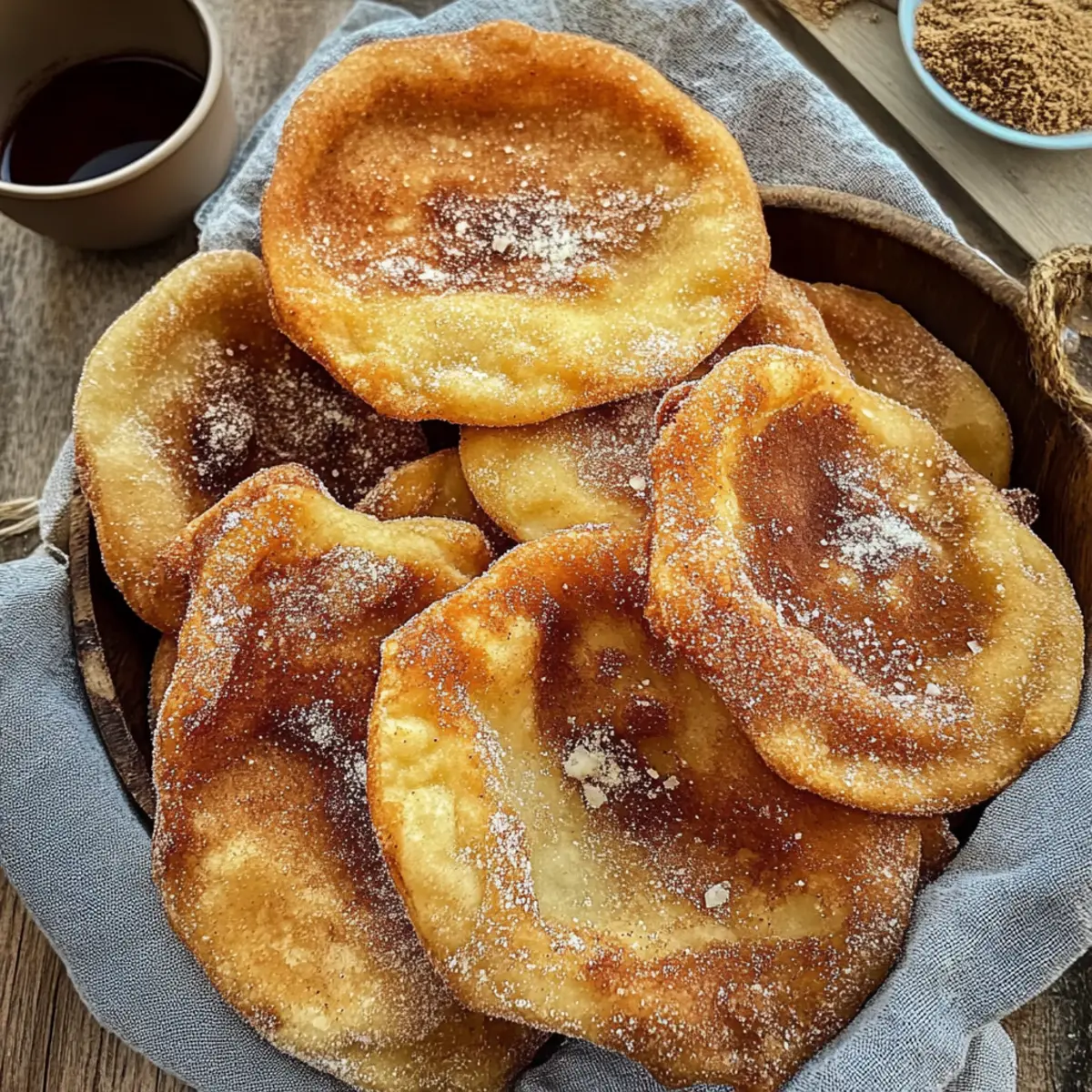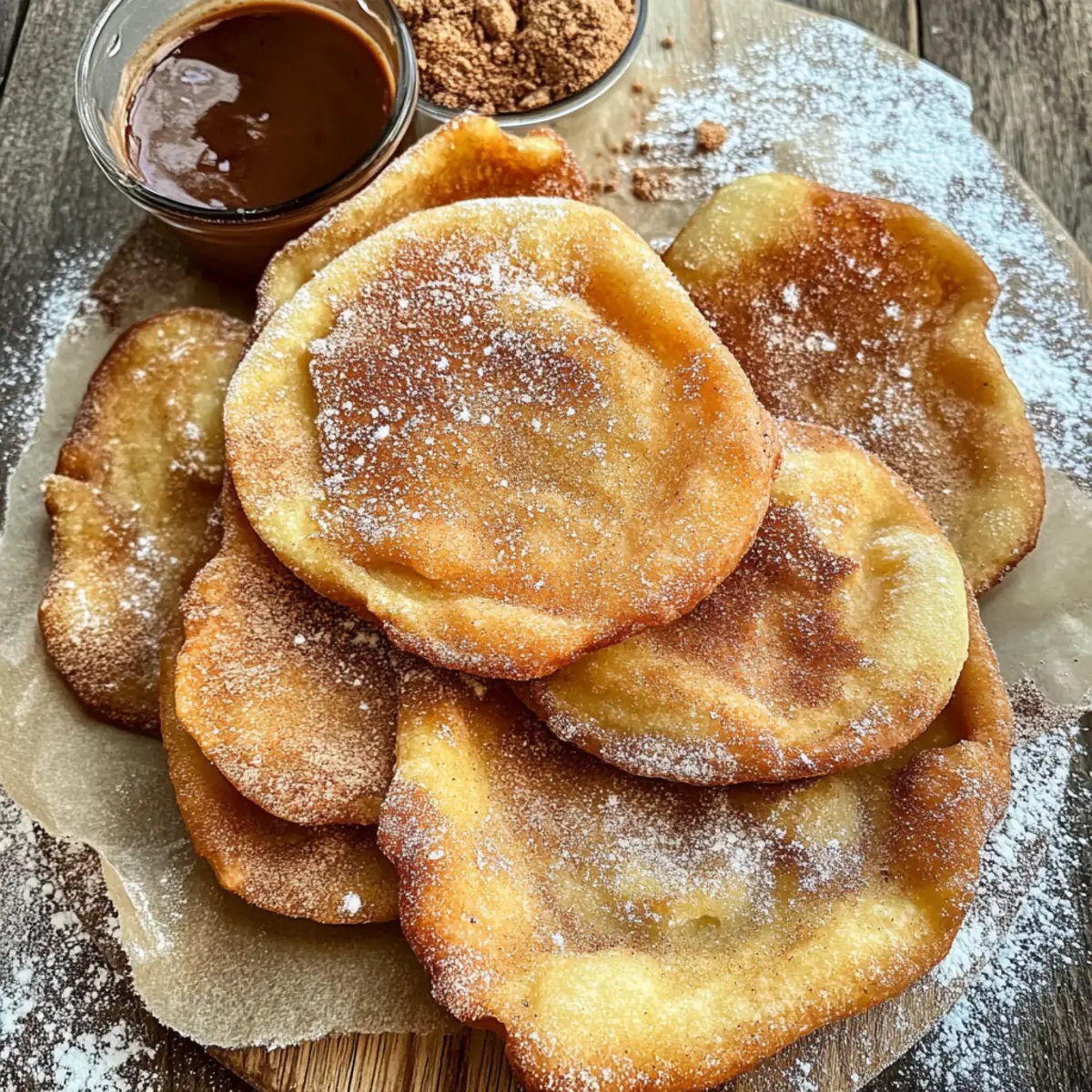 Jump to Recipe Print RecipeIn the midst of a lazy Sunday afternoon, the aroma of something sweet and fried wafted through my kitchen, transforming the usual calm into a delightful frenzy. Enter Sourdough Elephant Ears, a mouthwatering treat that perfectly marries the tangy bite of sourdough with a crisp, sugar-dusted exterior. These carnival-inspired delights make for an irresistible dessert—quick to prepare and fantastic for sharing during family gatherings or a fun day at home. Whether you’re working with an active sourdough starter or some trusty sourdough discard, this recipe promises a scrumptious outcome every time. Ready to indulge your taste buds with a twist on a classic fair treat? Let’s dive into making these heavenly bites together! Why Are Sourdough Elephant Ears Irresistible? Crispy, Delightful Texture: Expect a perfect crunch with a hint of chewiness from the sourdough. Festive Treat: These fried delights are not just desserts; they’re a carnival experience, bringing joy to every bite. Customizable Toppings: From classic cinnamon sugar to chocolate sauce, there’s a topping for every palate! Quick and Easy: Minimal effort yields maximum flavor—ideal for spontaneous cravings or family gatherings. Two Ways to Enjoy: Whether you have an active starter or sourdough discard, this recipe accommodates both options. Treat yourself and your loved ones to a sweet adventure with these delightful bites! Sourdough Elephant Ears Ingredients • Get ready to create a carnival favorite! For the Dough All Purpose Flour – Provides structure and body to the dough. Substitution Note: Use bread flour for a chewier texture. Whole Milk (Warm) – Activates the yeast and enriches the dough. Substitution Note: Can substitute with non-dairy milk, but may alter flavor. Butter (Melted) – Adds richness and flavor. Substitution Note: Coconut oil can be used for a dairy-free option. Sugar – Sweetens the dough and balances flavors. Substitution Note: Brown sugar adds a deeper flavor. Sourdough Starter or Sourdough Discard – Introduces the tangy flavor characteristic of sourdough. Notes: For younger starter, add commercial yeast. Salt – Enhances overall flavor. Essential for balancing sweetness. Dried Yeast (optional) – Aids in leavening for those using a young sourdough starter. Note: Omitting will extend rise time with active starter. For the Topping Cinnamon Sugar Topping – Provides a sweet and aromatic finish with cinnamon and sugar mix. Gather these ingredients and let’s embark on the delicious journey of making Sourdough Elephant Ears together! Step‑by‑Step Instructions for Sourdough Elephant Ears Step 1: Mix Wet Ingredients In a large mixing bowl, combine 1 cup of warm milk, 1/4 cup of melted butter, and 1/4 cup of sugar. Stir the mixture until the sugar is completely dissolved, creating a smooth base. This step ensures the yeast contributes to the lovely rise of your Sourdough Elephant Ears, so take a moment to enjoy the sweet aroma as you blend these ingredients together. Step 2: Activate Yeast (if using) If you are using dried yeast, sprinkle 2 teaspoons into the warm mixture and let it sit for about 5-10 minutes. You’ll know it’s ready when it becomes frothy and bubbly, indicating the yeast is alive and kicking. This step is crucial for a fluffy texture, especially if working with a younger sourdough starter. Step 3: Combine and Knead Next, add 3 cups of all-purpose flour and 1 teaspoon of salt to the wet mixture, followed by 1 cup of sourdough starter (or discard). Mix until a rough dough forms, then transfer it to a floured surface. Knead the dough for 5-10 minutes until it’s smooth and elastic, developing that delicious structure essential for crispy Sourdough Elephant Ears. Step 4: Rise the Dough Place the kneaded dough in a bowl greased with oil, covering it with plastic wrap or a kitchen towel. Let it rise in a warm place for 1-2 hours if using commercial yeast, or 4-8 hours for an active starter, until it doubles in size. This rising phase infuses the dough with flavor and helps achieve that delightful chewiness. Step 5: Shape and Rest After the dough has risen, gently deflate it and divide it into 8-10 equal pieces. Shape each piece into a ball and let them rest on a floured surface for about 10-15 minutes. This short resting period allows the gluten to relax, making it easier to flatten each piece into the iconic elephant ear shape. Step 6: Heat Oil In a large pot or deep fryer, heat about 3 inches of vegetable oil to approximately 170°C (340°F). Use a thermometer to ensure the oil reaches the right temperature to avoid burning. A splatter guard can help keep your workspace clean as you prepare to fry those irresistible Sourdough Elephant Ears. Step 7: Roll and Fry Take each rested dough ball and roll it out to approximately 1/4-inch thickness, creating the signature “elephant ear” shape. Carefully place 1-2 dough pieces into the hot oil, frying for 2-3 minutes on each side until they turn a beautiful golden-brown. Keep an eye on the color and bubble action as they fry—this visual cue signals that they’re getting crispy! Step 8: Dust and Serve Once the Sourdough Elephant Ears are perfectly fried, use a slotted spoon to remove them from the hot oil. Immediately coat them in a generous mix of cinnamon sugar while they’re still warm. Serve them straight away for the best experience, allowing everyone to indulge in a carnival treat that brings smiles to every gathering. Expert Tips for Sourdough Elephant Ears Perfecting Dough Texture: Ensure the dough is smooth and elastic by kneading it well. This helps achieve that crispy yet chewy texture that makes Sourdough Elephant Ears irresistible. Maintain Oil Temperature: Keep your oil at 170°C (340°F) for even frying. Too hot and the ears will burn; too cold and they’ll absorb excess oil. Customizing Sweetness: Feel free to mix up your topping! If you’re not a fan of cinnamon sugar, consider