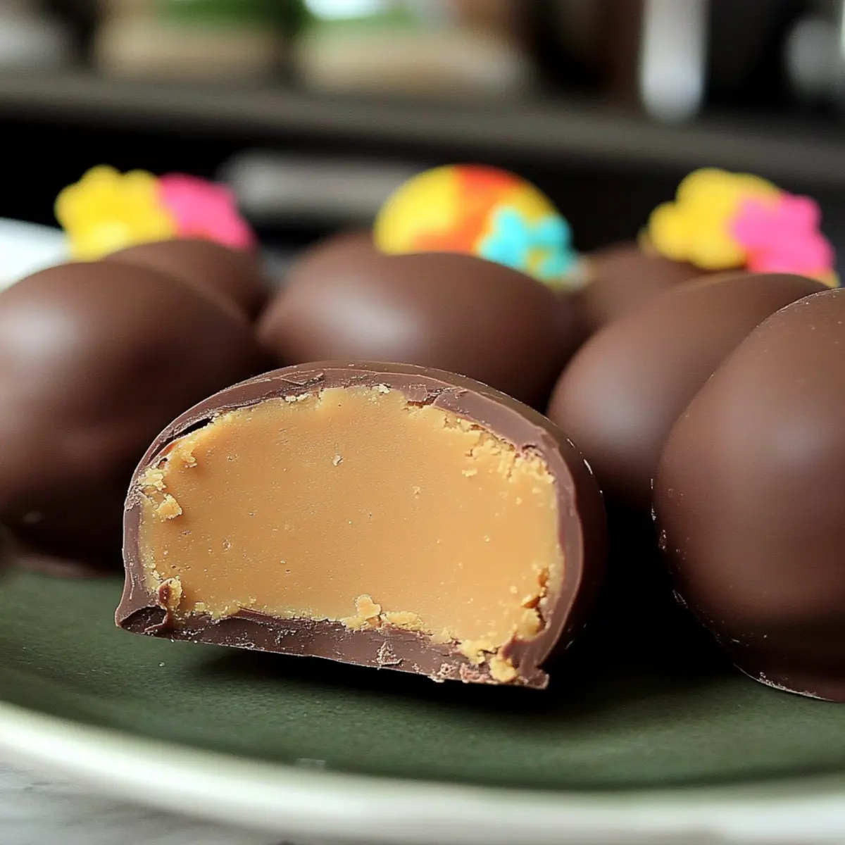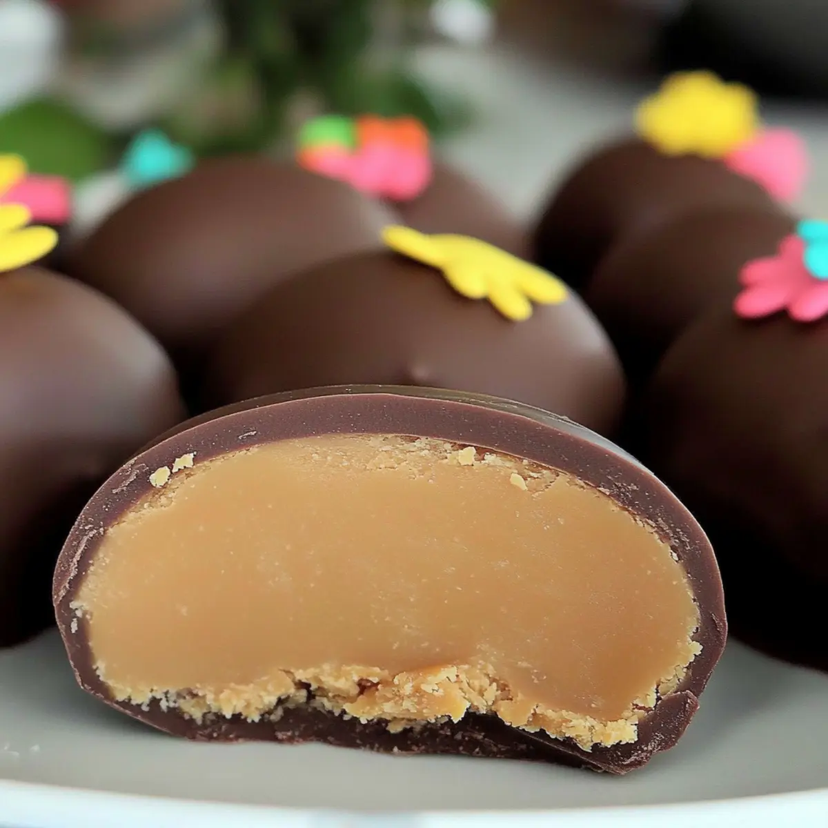 Jump to Recipe Print RecipeAs the sun sets on a warm spring evening, there’s something undeniably nostalgic in the air—a mix of laughter, joy, and the sweet scent of homemade treats. These Southern Church Peanut Butter Eggs take me right back to my childhood, where I eagerly waited for the church potluck, dreaming of those delectable, creamy confections. With their rich peanut butter filling enveloped in smooth chocolate, these eggs capture the heart of southern tradition and are perfect for both sharing and indulging on your own. This no-bake recipe is not only a crowd-pleaser but also offers a nut-free version using SunButter, making it versatile for everyone to enjoy. Are you ready to whip up a batch of these delightful treasures and make some sweet memories? Why are Southern Church Peanut Butter Eggs special? Nostalgic Taste: Each bite transports you back to childhood church potlucks, filled with laughter and joy. Easy No-Bake Recipe: This straightforward recipe requires minimal effort—perfect for busy schedules! Customizable Sizes: Whether you prefer giant eggs or bite-sized treats, adjust the size to suit your cravings. Nut-Free Option: Using SunButter allows those with allergies to indulge without worry. Perfect for Sharing: These eggs are great additions to Easter baskets, party treats, or heartfelt gifts for friends and family. Dive into the sweet, creamy goodness of these Southern Church Peanut Butter Eggs and create lasting memories today! Southern Church Peanut Butter Eggs Ingredients • Get ready to assemble the perfect Southern Church Peanut Butter Eggs! For the Filling Unsalted Butter – Provides richness and moisture for a creamy filling; feel free to use salted butter if that’s what you have on hand. Peanut Butter – The star ingredient that gives the eggs their delightful flavor and creamy texture; substitute with SunButter for a nut-free version. Vanilla Extract – Enhances the overall flavor profile; for best effect, don’t skip this ingredient. Powdered Sugar – Sweetens and helps bind the filling together; sift it for smooth incorporation. For the Coating Chocolate Chips – The smoother the chocolate, the better; choose high-quality chocolate for a delicious coating. Sugar Flowers (optional) – For a festive touch, these can beautifully decorate the finished eggs! Gather these simple ingredients and let’s create some sweet, nostalgic magic with your Southern Church Peanut Butter Eggs! Step‑by‑Step Instructions for Southern Church Peanut Butter Eggs Step 1: Melt Butter and Peanut Butter In a medium saucepan, combine ½ cup of unsalted butter and 1 cup of creamy peanut butter over medium heat. Stir continuously until the mixture is completely melted and smooth, which should take around 3 to 5 minutes. Be careful not to let it boil; you want a velvety blend that melts together harmoniously. Step 2: Combine Ingredients Once the butter and peanut butter mixture is smooth, pour it into a large mixing bowl. Add 1 teaspoon of vanilla extract and gradually mix in 2 cups of sifted powdered sugar. Stir with a wooden spoon or spatula until the mixture is well combined and reaches a thick, dough-like consistency that can hold its shape when rolled. Step 3: Chill Mixture To help the filling firm up, cover the bowl with plastic wrap and place it in the fridge for about 30 minutes. This chilling step is crucial, as it allows the mixture to set and makes it easier to shape into eggs. Check the mixture after 20 minutes; it should be firm enough to handle. Step 4: Shape Eggs Retrieve the chilled mixture from the fridge, and using your hands, roll it into egg shapes about the size of a golf ball. Aim for around 15 to 16 eggs in total. Place each formed egg on a tray lined with paper towels to absorb any excess oil. This step helps ensure a clean finish once they are coated in chocolate. Step 5: Refrigerate After shaping the eggs, refrigerate them for an additional 2 to 3 hours. This allows the Southern Church Peanut Butter Eggs to become completely firm, making them easier to dip into chocolate later. You’ll know they’re ready when they feel solid to the touch. Step 6: Melt Chocolate While the eggs are setting, prepare to melt your chocolate. Use about 12 ounces of chocolate chips; either milk or dark chocolate works beautifully. Melt the chocolate in a microwave-safe bowl using 30-second intervals, stirring in between until it is smooth and fully melted. Avoid overheating to maintain a glossy texture. Step 7: Dip Eggs Once the chocolate is ready, dip each egg into the melted chocolate using a fork or toothpick to ensure full coverage. Tap off any excess chocolate before placing them on a parchment-lined tray. The coating should be even and smooth, creating a luscious shell around the Southern Church Peanut Butter Eggs. Step 8: Decorate If desired, while the chocolate is still wet, gently place a sugar flower on top of each dipped egg for a festive touch. Allow the decoration to adhere before moving on to the final step. Let the eggs set at room temperature or refrigerate them until the chocolate is firm to the touch, which should take about 30 minutes. What to Serve with Southern Church Peanut Butter Eggs As you prepare these scrumptious treasures, consider balancing their rich sweetness with delightful pairings that enhance your Easter celebration. Creamy Mashed Potatoes: The buttery, smooth texture complements the sweet, rich flavor of the peanut butter eggs, creating a balanced meal. Fresh Spring Salad: A crisp salad with arugula, goat cheese, and berries adds a refreshing contrast to the indulgent eggs, brightening up your plate. Homemade Bread Rolls: Soft, fluffy rolls provide a comforting base, perfect for soaking up any leftover chocolate or peanut butter flavors. Zesty Lemonade: This tangy drink cuts through the sweetness, offering a refreshing sip that keeps you coming back for more. Chocolate-Covered Strawberries: For a truly indulgent dessert exper