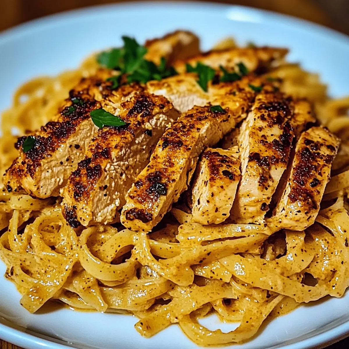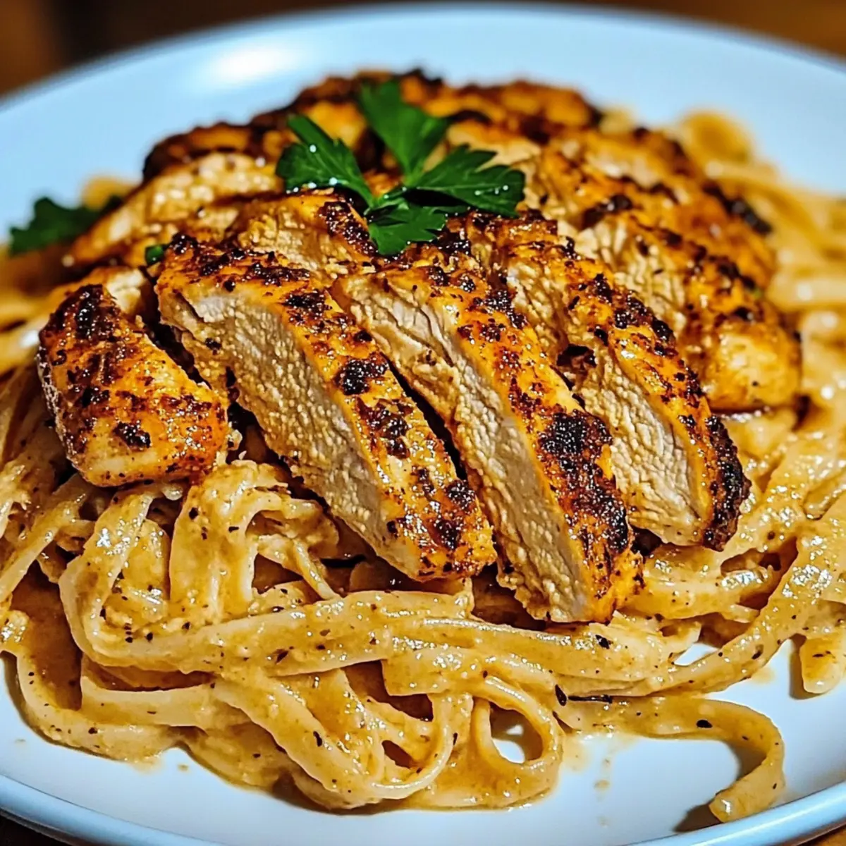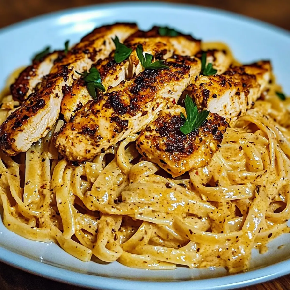 Jump to Recipe Print RecipeAmidst the busy weeknight rush, I often find myself craving something both comforting and exhilarating. Enter my Spicy Cajun Chicken Linguine in Creamy Garlic Parmesan Sauce, a dish that dances between bold flavors and smooth textures, turning an ordinary dinner into a culinary adventure! With just a handful of ingredients, this recipe is not only a quick weeknight win but also a surefire crowd-pleaser that can impress anyone at your table. The spicy Cajun chicken, perfectly seared, rests atop silky linguine coated in a dreamy garlic Parmesan sauce, making each bite a delightful experience. Whether it’s just another Tuesday or a special occasion, you’re bound to love how effortlessly this dish combines warmth and a touch of spice. Ready to spice up your dinner rotation? Let’s dive into this mouthwatering recipe! Why is this dish a must-try? Elevated Comfort Food: Experience the best of both worlds with a dish that blends spicy Cajun flair and creamy richness. Quick and Easy: Perfect for weeknights! It takes only about 30 minutes from cutting board to table, making it an ideal dinner solution. Crowd-Pleasing Flavors: Impress your family and friends with the bold spices and luscious textures that are sure to have everyone craving seconds. Adaptable and Versatile: Want variety? Easily swap out chicken for grilled shrimp or veggies! For a gluten-free option, simply use gluten-free pasta. Not sure how to complement your meal? Pair this dish with a light salad or a refreshing fizzy drink for a complete dining experience. Spicy Cajun Chicken Linguine Ingredients For the Cajun Chicken • Cajun Seasoning – Adds bold, spicy flavor; consider making your own blend for freshness. • Chicken Breasts – Provides essential protein; pound to even thickness for uniform cooking. • Olive Oil – For searing chicken to achieve a golden crust; vegetable oil can work as a substitute. For the Linguine • Linguine – The perfect base for this dish, allowing sauce to cling; feel free to swap with fettuccine or penne. • Butter – Infuses richness into the sauce; margarine is a suitable alternative for a dairy-free option. • Garlic – Enhances the flavor profile, bringing aromatic goodness; always use fresh garlic for best results. For the Sauce • Heavy Cream – Creates the luscious, creamy sauce; half-and-half can minimize calories, but the richness will change. • Parmesan Cheese – Adds nuttiness to the sauce; opt for grated fresh cheese for better melting properties, or Pecorino Romano as a substitute. • Cream Cheese – Smooths out the sauce texture and enhances richness; omit for fewer calories and add more cream instead. • Red Pepper Flakes – Optional, increases spice level; adjust quantity based on your heat preference. For Garnish • Fresh Parsley – Brightens the dish; chives or basil can offer a different flavor profile if you’d like a change. This Spicy Cajun Chicken Linguine in Creamy Garlic Parmesan Sauce will elevate your typical dinner to an extraordinary culinary experience! Step‑by‑Step Instructions for Spicy Cajun Chicken Linguine in Creamy Garlic Parmesan Sauce Step 1: Prepare the Chicken Begin by mixing the Cajun seasoning thoroughly and generously rub it over both sides of the chicken breasts, ensuring an even coating. Let the seasoned chicken rest for about 15 minutes to absorb the flavors. This allows the spice to penetrate, enhancing the taste of your Spicy Cajun Chicken as it cooks to perfection. Step 2: Cook Chicken In a large skillet, heat 2 tablespoons of olive oil over medium-high heat until shimmering. Carefully add the seasoned chicken breasts and sear for 5–6 minutes on each side, or until they turn golden brown and reach an internal temperature of 165°F (74°C). Once cooked, transfer the chicken to a cutting board and let it rest for a few minutes before slicing it. Step 3: Cook Linguine While the chicken is resting, bring a large pot of salted water to a rolling boil. Add the linguine and cook according to the package instructions until al dente, usually about 8-10 minutes. Before draining, reserve about ½ cup of the pasta water. This starchy water will help to adjust the sauce consistency later. Drain the linguine and set aside. Step 4: Make Sauce In a medium saucepan, melt 2 tablespoons of butter over medium heat. Add the minced garlic and sauté until fragrant, about 1-2 minutes. Next, pour in 1 cup of heavy cream, bring to a gentle simmer, and whisk in the Parmesan cheese along with the cream cheese until melted and completely smooth. Stir in red pepper flakes for that extra kick, adjusting to taste. Step 5: Combine Add the drained linguine directly into the creamy sauce, tossing gently to coat the pasta well. If the sauce is too thick, gradually mix in some reserved pasta water until you reach the desired creamy consistency. Allow the dish to cook on low heat for about 2-3 minutes, just enough for the flavors of the Spicy Cajun Chicken Linguine in Creamy Garlic Parmesan Sauce to meld beautifully. Step 6: Serve To plate, twirl a generous portion of the creamy linguine onto each plate. Top with the sliced Cajun chicken, allowing its vibrant spice to shine through. Garnish with freshly chopped parsley for a pop of color and serve hot, inviting everyone to dive into this delicious and comforting meal! How to Store and Freeze Spicy Cajun Chicken Linguine Fridge: Store any leftovers in an airtight container for up to 3-4 days. This will maintain the dish’s creamy texture while keeping the flavors intact. Freezer: It’s best to avoid freezing the creamy sauce, as it may separate after thawing. Instead, freeze the Cajun chicken and pasta separately in airtight containers for up to 2 months for best quality. Reheating: To reheat, gently warm the chicken on the stovetop over low heat. For the linguine, add a splash of cream or pasta water to restore its creamy consistency, heating until warmed through. Serving Af