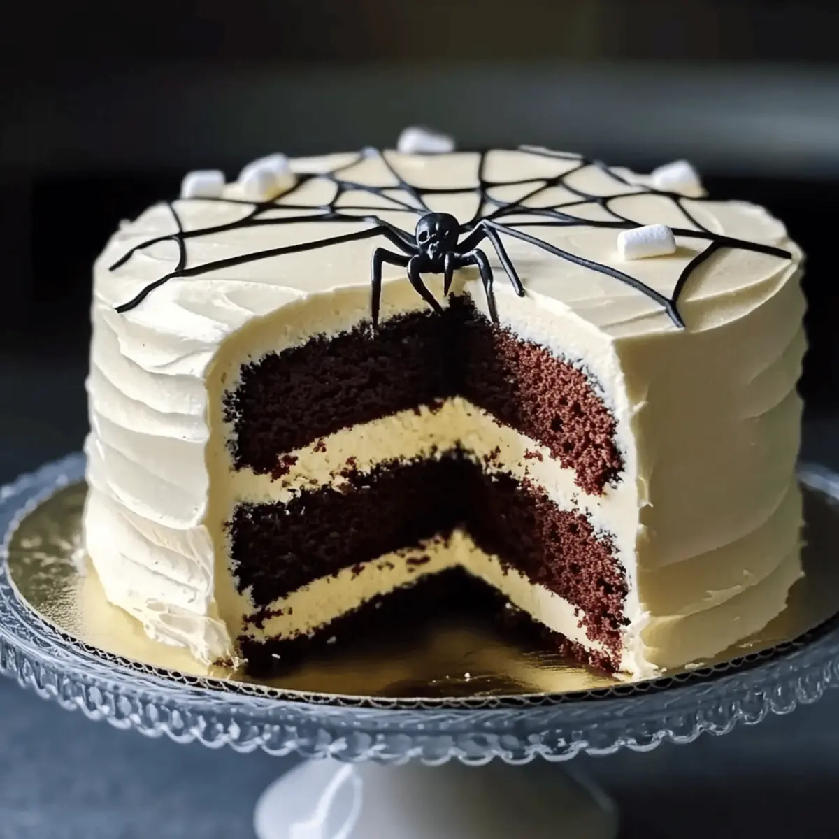 Jump to Recipe Print RecipeAs I unwrapped the last vestiges of summer and welcomed the chill of autumn, my kitchen transformed into a haven for Halloween-inspired delights. Enter the Spook-tacular Spider’s Web Cake—a showstopper that bridges the gap between indulgent dessert and festive centerpiece. This miracle combines a moist chocolate sponge with luxurious Swiss meringue buttercream, creating a blend that is not just delicious but effortlessly elegant. With whimsical marshmallow cobwebs draped across the surface, it’s a dish that promises to dazzle guests and make any gathering memorable. Plus, it’s a breeze to whip up, ensuring you can spend less time in the kitchen and more time enjoying the festivities. Curious about how to craft this hauntingly beautiful dessert? Let’s dive into the delicious details! Why is Spider’s Web Cake a Must-Make? Unique Presentation: The tantalizing marshmallow cobwebs lend an impressive visual flair that will wow your guests. Rich, Indulgent Flavor: Combining chocolate sponge with creamy Swiss meringue buttercream creates a decadent bite every time. Fun to Decorate: Get creative with the spider designs, making it perfect for a Halloween party. Time-Saving: The straightforward steps mean less fuss in the kitchen—just what you need during festive times! Crowd-Pleasing Favorite: With its delightful flavors, this cake is sure to be a hit at any gathering, just like our Double Chocolate Cake or Peach Dump Cake. Versatile Recipe: Feel free to add your own twist or try the variation ideas for something new! Spider’s Web Cake Ingredients For the Cake Unsalted Butter – Provides richness and moisture; can use salted butter, but reduce added salt. Cocoa Powder – Adds chocolate flavor; consider using Dutch-processed cocoa for a deeper taste. Chocolate Stout – Infuses a rich depth of chocolate flavor; Young’s Double Chocolate Stout is recommended. White Caster Sugar – Sweetens the cake structure; granulated sugar can be a substitute if needed. Light Brown Soft Sugar – Contributes moisture and a caramel-like flavor; dark brown sugar can work for a richer profile. Vanilla Extract – Enhances overall flavor; no substitutions necessary. Large Eggs – Binds ingredients and provides structure; lightly beaten eggs help ensure consistency. Dark Chocolate – Adds intense chocolate flavor; ensure it is melted and cooled before incorporating. Plain Flour – Forms the cake structure; use gluten-free flour for a gluten-free version. Bicarbonate of Soda – Acts as a leavening agent to help the cake rise. For the Buttercream Large Egg Whites – Essential for making the Swiss meringue buttercream; must be fresh for best results. Caster Sugar (for Buttercream) – Sweetens and stabilizes meringue; no substitutions for optimal texture. Unsalted Butter (for Buttercream) – Creates a creamy texture; must be at room temperature for proper mixing. White Chocolate – Melts well into the buttercream; ensure it’s cooled before adding it to the mix. For Decoration White Mini Marshmallows – Used for cobweb decoration; they add a fun touch to the final presentation. Black Sugar Paste – Creates spooky spider decorations atop the cake, enhancing the Halloween theme. Transforming these ingredients into a Spider’s Web Cake not only provides a delicious dessert but also invites you to explore creativity in kitchen artistry! Step‑by‑Step Instructions for Spider’s Web Cake Step 1: Preheat the Oven and Prepare Tins Begin by preheating your oven to 180°C (160°C for fan) or gas mark 4. While it heats, grease three 20cm round cake tins with butter and line the bottoms with baking parchment. This preparation ensures a smooth release of your Spider’s Web Cake once baked, so don’t skip this crucial step! Step 2: Mix Cocoa and Stout In a mixing bowl, whisk together cocoa powder with 200ml of boiling water until smooth and glossy. Then, incorporate 200ml of cooled chocolate stout into the cocoa mixture, stirring until fully combined. Set this rich liquid aside, as it’ll lend incredible flavors to your cake batter, making it irresistibly delicious. Step 3: Cream Butter and Sugars In a stand mixer, beat 250g of unsalted butter, 200g white caster sugar, and 100g light brown soft sugar on medium speed for about 5 minutes until the mixture looks fluffy and pale. Gradually introduce 3 large lightly beaten eggs, mixing well after each addition, followed by 150g of melted dark chocolate. This step creates the base of your rich chocolate cake. Step 4: Combine Dry Ingredients In another bowl, whisk together 275g of plain flour, 1 teaspoon of bicarbonate of soda, and a pinch of salt. Slowly add this dry mixture into the butter-sugar-egg mixture, alternating it with the cocoa-stout mixture. Mix gently until just combined to avoid overworking the batter, which can affect the texture of your Spider’s Web Cake. Step 5: Bake the Cake Layers Divide the batter evenly among the prepared cake tins, smoothing the tops with a spatula. Place the tins in the preheated oven and bake for 25-30 minutes. You’ll know they’re done when a skewer inserted into the center comes out clean. Once baked, allow the cakes to cool in the tins for about 10 minutes before transferring them to a wire rack to cool completely. Step 6: Prepare Swiss Meringue Buttercream While the cakes cool, create the Swiss meringue buttercream. Place 3 large egg whites and 200g caster sugar in a heatproof bowl over simmering water, whisking until the sugar dissolves. Remove from heat and whisk on high speed until stiff peaks form and the mixture cools to room temperature. Gradually add 250g of room temperature unsalted butter, mixing until glossy and smooth, then fold in 100g of melted and cooled white chocolate. Step 7: Assemble the Cake Once the cake layers are completely cool, place the first layer on a serving plate. Spread a generous layer of buttercream on top, then add the second layer and repeat th