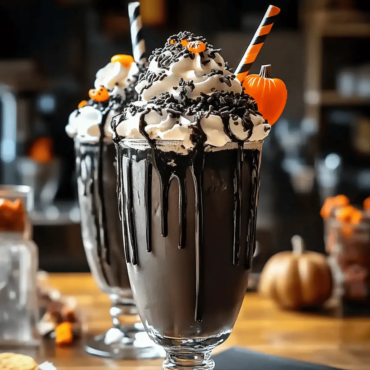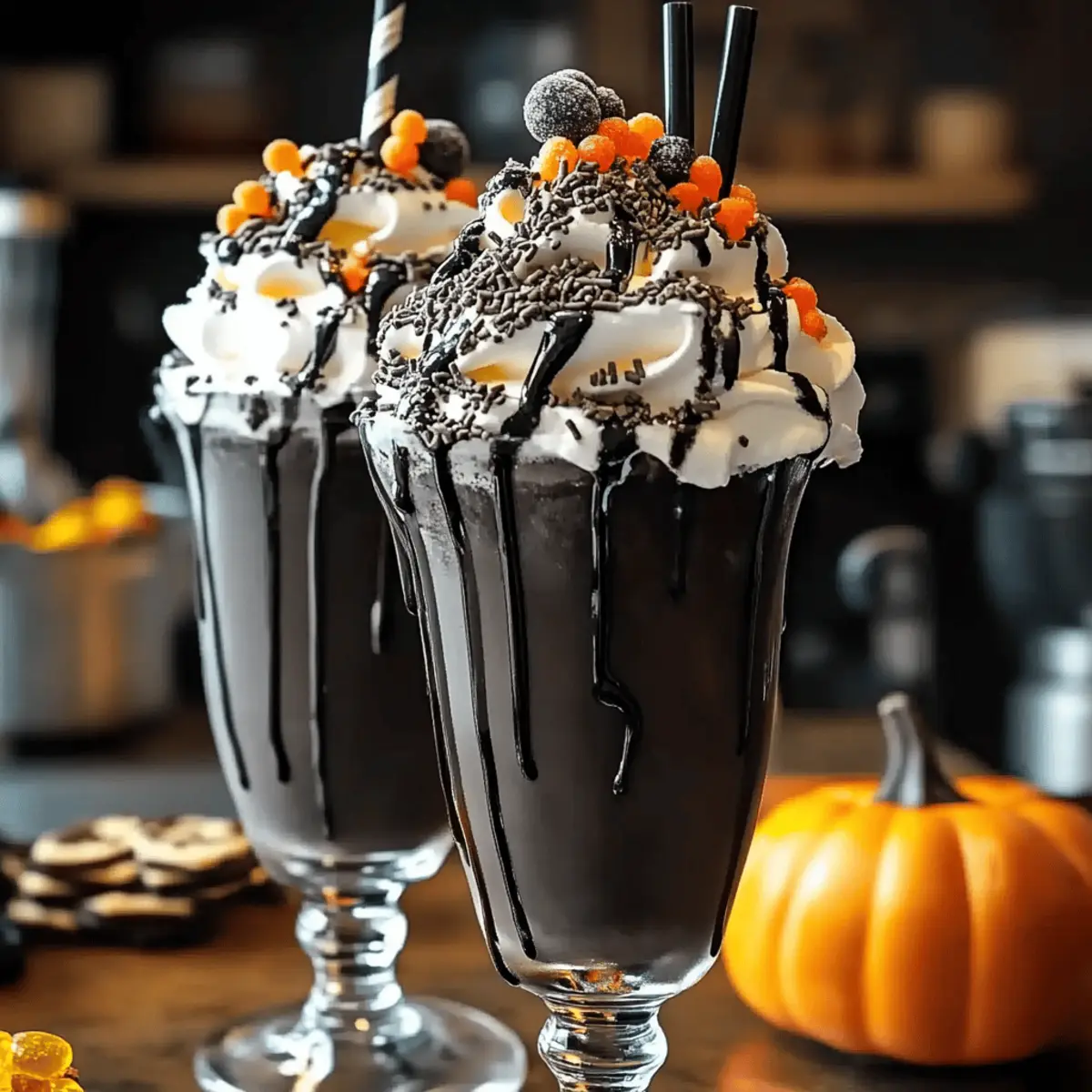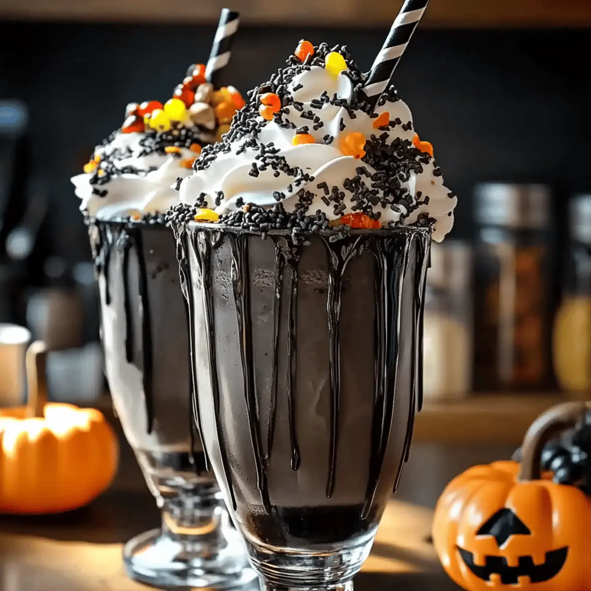 Jump to Recipe Print RecipeAs I stood in my kitchen, surrounded by the delightful chaos of Halloween decorations, the idea for a Spooky Black Halloween Milkshake jumped into my mind like a playful ghost. This creamy, sweet concoction not only captures the essence of Halloween with its rich black hue, but it also doubles as a fun and customizable treat that kids will adore. Whether you’re hosting a ghoulish gathering or just looking to add a festive twist to a regular dessert night, this recipe is a perfect crowd-pleaser that’s completely nonalcoholic. Plus, it’s a breeze to whip up, so you’ll have more time to enjoy the tricks and treats of the season. Are you ready to create a hauntingly delicious drink that will enchant guests of all ages? Let’s dive into the spooky fun! What Makes This Milkshake So Special? Simplicity: The recipe is incredibly easy to make, requiring just a few common ingredients you likely have on hand. Endless Customization: With options to personalize flavors and decorations, each milkshake can be a unique creation that fits your party theme perfectly. Kid-Friendly Fun: It’s a nonalcoholic treat the whole family can enjoy, making it ideal for Halloween gatherings or themed dessert nights. Visual Delight: Its striking black color and playful toppings create an eye-catching centerpiece that will wow your guests. Time-Saving: Mix and serve quickly, allowing you to focus on enjoying the festive atmosphere rather than stressing over complicated desserts. This treat pairs wonderfully with other Halloween favorites like Blackberry Cream Cheese, adding to your spooky spread! Spooky Black Halloween Milkshake Ingredients Get ready to gather the essentials for your deliciously eerie drink! For the Milkshake Vanilla Ice Cream – Provides creaminess and sweetness; feel free to swap it with your favorite flavor for a personal touch. Milk (whole or 2%) – Adds the perfect texture; use non-dairy milk for a dairy-free alternative. Black Gel Food Coloring or Activated Charcoal Powder – Creates that dramatic black color; make sure it’s food-grade and add gradually for the best results. Vanilla Extract – Enhances the flavor profile; almond extract can add a unique twist if you’re feeling adventurous. For the Toppings Whipped Cream – Light and festive topping; there are dairy-free options available to suit any dietary needs. Black and Orange Sprinkles – Fun and colorful decorations that scream Halloween; experiment with your favorite edible glitter too! Crushed Chocolate Cookies – Add texture and rich chocolate flavor; you can substitute this with crushed candy or nuts for variety. Halloween-themed Candy – Gummy worms or candy eyeballs tie in the Halloween theme perfectly; pick any candies that complement your spooky vision. For Serving Black Straws or Spoons – Add to your presentation’s aesthetic; colorful options make serving even more fun! Unlock the full potential of your Spooky Black Halloween Milkshake by choosing the perfect ingredients to make this seasonal treat truly your own! Step‑by‑Step Instructions for Spooky Black Halloween Milkshake Step 1: Blend the Base In a powerful blender, combine about 4 cups of vanilla ice cream, 1 cup of milk, and 1 teaspoon of vanilla extract. Make sure the ingredients are at room temperature so they blend smoothly. Blend on high for about 30 seconds until creamy and well integrated, then gradually add the black gel food coloring until the desired rich black hue is achieved. Step 2: Adjust Consistency Once your Spooky Black Halloween Milkshake is beautifully black, stop the blender and taste the mixture. If it’s too thick for your liking, add an extra splash of milk and blend again for an additional 10 seconds. Conversely, if it’s too thin, blend in a bit more ice cream, ensuring you maintain that luscious, creamy texture. Step 3: Chill Your Glasses While the milkshake is blending, take a moment to chill your serving glasses. Place them in the freezer for about 10-15 minutes to ensure they are cold. This step enhances the overall experience, keeping your Spooky Black Halloween Milkshake frosty and refreshing. Step 4: Assemble the Milkshakes Once the glasses are chilled, carefully pour the thick milkshake into each glass, filling them about three-quarters full. If you want a creative touch, swirl the sides of the glass with additional black gel food coloring before pouring. This adds an extra spookiness to your presentation. Step 5: Top It Off Generously pipe whipped cream on top of each milkshake, creating a delightful mountain. Then sprinkle a mix of black and orange sprinkles for festive flair. Don’t hold back—let your imagination run wild with toppings! Step 6: Add Fun Decorations Finish your Spooky Black Halloween Milkshake with crushed chocolate cookies, gummy worms, or candy eyeballs atop the whipped cream. These toppings not only heighten the visual appeal but also add exciting textures and flavors that will delight your guests. Step 7: Serve With Style Insert colorful black straws or spoons into each glass for a fun presentation. Serve immediately to keep the milkshake cold and let everyone enjoy this eerie treat. With bubbling giggles and delighted screams, your Spooky Black Halloween Milkshake will surely be the highlight of the gathering! Make Ahead Options These Spooky Black Halloween Milkshakes are perfect for busy home cooks who want to save time while still delivering delicious treats! You can prepare the milkshake base (ice cream, milk, vanilla extract, and black gel food coloring) and store it in the refrigerator for up to 24 hours before serving. To maintain the creamy texture, ensure it’s in an airtight container. When you’re ready to serve, simply blend the mixture to refresh it, then pour into chilled glasses. Top with whipped cream, sprinkles, and Halloween candies at the last minute for that delightful finishing touch. This way, you can delight your guests with a hauntingl