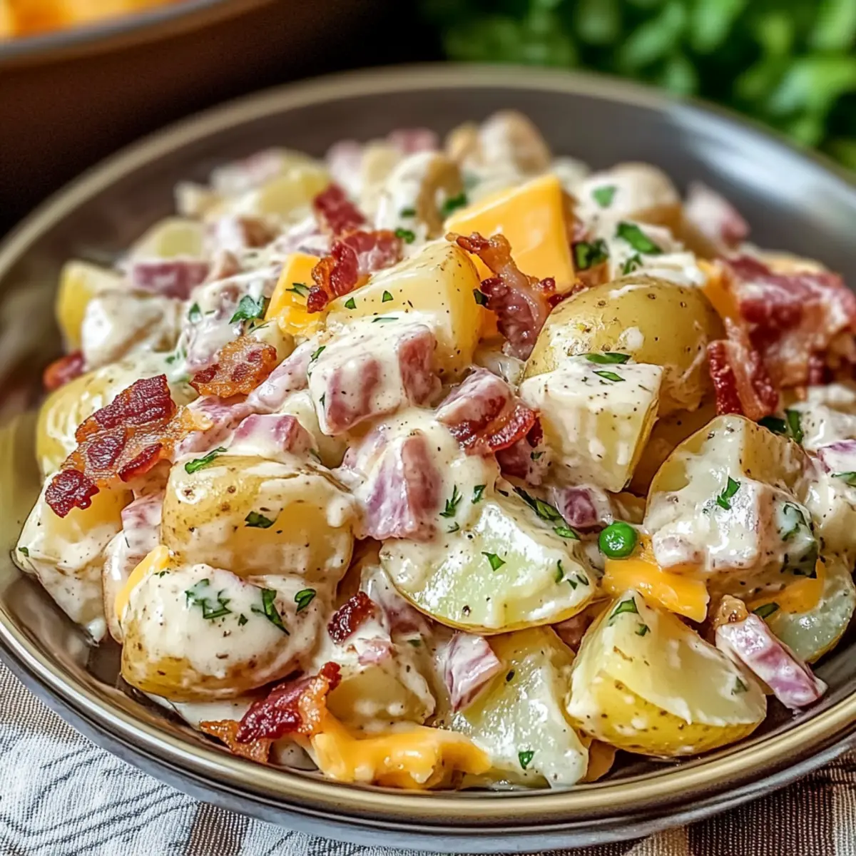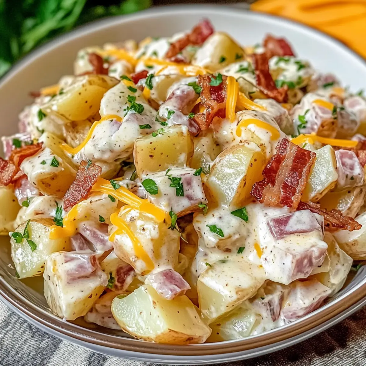 Amid the sizzling sounds of summer barbecues, I stumbled upon a creamy revelation that instantly became my go-to side dish: Steakhouse Potato Salad. Imagine a bowl brimming with tender red potatoes, crispy bacon, and sharp cheddar, all dressed in a tangy Dijon mustard that elevates the humble spud to gourmet status. Not only is this dish perfect for those warm evenings spent with friends, but it also allows for endless customization, making it a beginner-friendly option that suits every palate. Whether you’re whisking it together for a picnic or serving it alongside grilled meats, this potato salad adds a touch of class and flavor that’s hard to resist. Curious about how to create your own masterpiece? Let’s dive in!