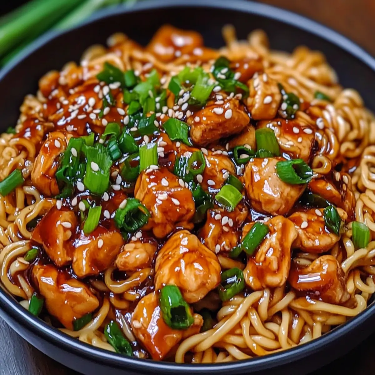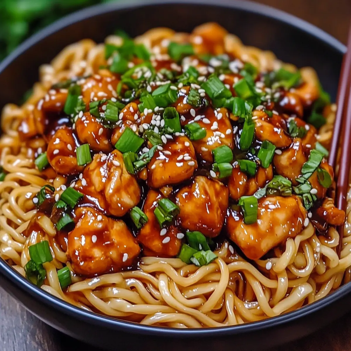 Jump to Recipe Print RecipeAs the sweet aroma of garlic suffused my kitchen, I couldn’t help but feel a sense of comfort wash over me. With my bustling schedule, I crave meals that are not only quick to prepare but also packed with flavor—and that’s where these Sticky Garlic Chicken Noodles come in. This mouthwatering dish showcases tender chicken and chewy noodles enveloped in a luscious sticky sauce that’s truly irresistible. In under 30 minutes, you’ll create a delightful weeknight dinner that’s adaptable to various dietary needs, making it perfect for everyone at the table. With a satisfying mix of honey and soy sauce, this recipe not only caters to high-protein diets but also opens up a world of personalization. Curious how this simple dish can become your next go-to favorite? Let’s dive into the details! Why try Sticky Garlic Chicken Noodles? Simplicity: This dish is incredibly easy to make—perfect for busy weeknights! Flavor-Packed: The combination of sticky honey and savory soy sauce ensures maximum taste in every bite. Customizable: Switch up proteins or add vegetables for a personalized twist, accommodating everyone’s preferences. Time-Saving: Ready in under 30 minutes, this recipe keeps you off the couch and eating well. Crowd-Pleaser: Impress family or guests while enjoying a restaurant-quality meal at home. Pair it with a side of your favorite Garlic Chicken Zucchini for a wholesome feast! Sticky Garlic Chicken Noodles Ingredients • You won’t believe how simple these ingredients are! For the Chicken • Chicken Breasts – a primary protein source providing richness and flavor; you can substitute chicken thighs for juicier meat. For the Noodles • Noodles (e.g., rice or egg noodles) – the base of the dish that offers chewiness and texture; can swap with spaghetti or fettuccine in emergencies. For the Sauce • Garlic – adds strong, aromatic flavor essential for the sauce; fresh cloves yield the best results. • Soy Sauce – provides umami and savory depth; feel free to use tamari for gluten-free versions. • Honey – acts as the sweetener creating a sticky glaze; no direct substitute recommended, but agave can work for a vegan option. • Ginger – contributes a warm, spicy note to balance flavors; fresh ginger is preferable, but ground ginger can also be used. • Red Chili Flakes – optional for adding heat; sprinkle according to your personal spice preference. For the Garnish • Sesame Seeds – an optional garnish that adds crunch and flavor; can be omitted if desired. • Green Onions – provide a bright, fresh touch as a garnish; you can substitute with chives if you like. Dive into this mouthwatering Sticky Garlic Chicken Noodles and enjoy a dish that’s not only high in protein but also adaptable to various dietary needs! Step‑by‑Step Instructions for Sticky Garlic Chicken Noodles Step 1: Cook the Noodles Begin by boiling a large pot of water over high heat. Once bubbling, add your noodles (rice or egg noodles) and cook according to package instructions, typically 4–6 minutes. Stir occasionally to prevent sticking. When al dente, drain the noodles in a colander and toss with a drizzle of oil to keep them separate. Set aside while you prepare the chicken. Step 2: Sauté the Chicken In a large skillet, heat a tablespoon of oil over medium-high heat. Once hot, add bite-sized pieces of chicken breasts and cook for about 6–8 minutes, flipping occasionally, until golden brown and cooked through. The chicken should reach an internal temperature of 165°F (75°C). Remove the chicken from the skillet and keep it warm while making the sauce. Step 3: Make the Sauce In the same skillet, lower the heat to medium and add minced garlic and grated ginger. Sauté for 1–2 minutes until fragrant, stirring constantly to avoid burning. Next, pour in soy sauce and honey, along with red chili flakes if desired. Bring the mixture to a gentle simmer, letting it thicken for about 3–4 minutes until glossy and sticky. Step 4: Combine Everything Return the cooked chicken to the skillet, ensuring it’s well coated with the sticky sauce. Add the drained noodles to the skillet, tossing everything together gently for 2–3 minutes. Make sure the noodles absorb the flavors from the sauce thoroughly. Adjust seasoning with additional soy sauce or chili flakes to taste if needed. Step 5: Serve and Garnish Once everything is well combined, remove the skillet from heat. Dish out your Sticky Garlic Chicken Noodles into serving bowls. For a finishing touch, sprinkle with sesame seeds and chopped green onions for added crunch and freshness. Enjoy your delicious, homemade meal right away while it’s warm! Expert Tips for Sticky Garlic Chicken Noodles Fresh Ingredients Matter: Always use fresh garlic and ginger for the most vibrant flavors; dried alternatives won’t provide the same aromatic kick. Avoid Overcooking Chicken: Keep an eye on the chicken while cooking to prevent it from becoming dry. Aim for a golden brown finish at 165°F (75°C). Prevent Sticky Noodles: After draining, toss your noodles with a little oil to keep them from clumping together before mixing with the sauce. Customize Spice Level: Adjust the amount of red chili flakes according to your taste—start with a pinch and incrementally add more if you like it spicy! Thickening Sauce: For an extra glossy finish, create a cornstarch slurry by mixing cornstarch with water before adding it to the sauce mix. Make It Your Own: Feel free to switch proteins or introduce seasonal vegetables, making your Sticky Garlic Chicken Noodles as versatile as your cravings! What to Serve with Sticky Garlic Chicken Noodles Looking to create a well-rounded dinner experience that will impress your family or friends? Steamed Broccoli: This vibrant green vegetable adds crunch and freshness, balancing the savory richness of the noodles. Crispy Spring Rolls: Their crunchy texture contrasts beautifully with the chewy 