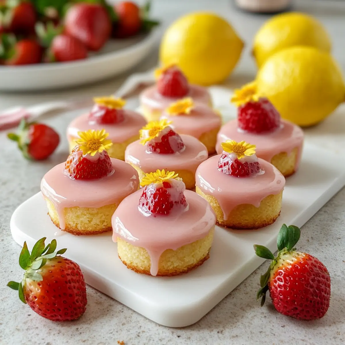 Spoon the batter into the prepared molds, filling each about two-thirds full for the perfect bite-sized cakes. Place them in the preheated oven and bake for 12 to 15 minutes, or until they are lightly golden and a toothpick inserted in the center comes out clean. The aroma of strawberries and lemons will fill your kitchen as they bake!