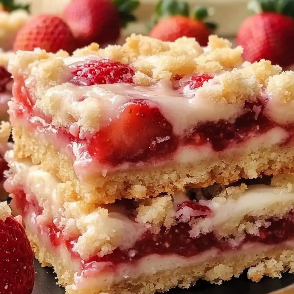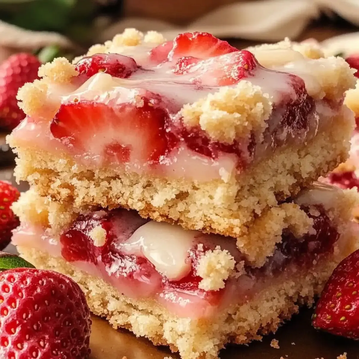 Jump to Recipe Print RecipeAs I took my first bite of these bright and buttery Strawberry Shortcake Bars, I was instantly transported to a sun-soaked afternoon, where laughter and the sweet fragrance of strawberries filled the air. With their buttery crumb crust, juicy berries, and a drizzle of vanilla glaze, these bars embody the essence of summer. What I love most about them is how effortlessly they come together—perfect for picnics, potlucks, or just a weeknight craving for something sweet. Not only are they a delightful treat, but the easy preparation makes them a go-to dessert you’ll want to whip up again and again. Are you ready to indulge in this sweet escape? Why are Strawberry Shortcake Bars unforgettable? Easy to Make: These Strawberry Shortcake Bars require minimal ingredients and time, perfect for busy bakers and dessert lovers alike. Bright Flavors: The combination of juicy strawberries and sweet vanilla glaze creates a refreshing burst of flavor that’s sure to please any palate. Versatile Adaptations: Feel free to swap in your favorite berries or unique extracts for a custom twist, as shown in my recipe for Cucumber Strawberry Salad. Perfect for Sharing: Whether it’s a summer picnic or a cozy family dinner, these bars are a crowd-pleaser that disappear quickly! Make-Ahead Friendly: They can be prepared in advance, making them ideal for unexpected guests or planned events, just like the indulgent Banana Split Bars. These bars are the ultimate summer dessert that you’ll want to enjoy all season long! Strawberry Shortcake Bars Ingredients • Prepare to indulge in making these delightful Strawberry Shortcake Bars! For the Crust All-purpose flour – Provides structure; substitute with whole wheat flour for a nuttier flavor. Granulated sugar – Sweetens the crust and filling; coconut sugar is a great less-refined alternative. Light brown sugar – Adds depth of sweetness and moisture; dark brown sugar delivers a richer taste. Salted butter – Enriches the crust; use unsalted butter and add a pinch of salt if desired. Pure vanilla extract – Enhances flavor; homemade or imitation vanilla works in a pinch. For the Filling Fresh strawberries – The star of your bars, offering juiciness; frozen strawberries can be used if thawed, drained, and mixed with extra flour. For the Glaze Powdered sugar – Sweetens the glaze; substitute with a sugar alternative for a lower-calorie option. Whipping cream – Adds richness to the glaze; milk can be used for a lighter version. Get ready to create a mouthwatering treat that encapsulates summer in every bite! Step‑by‑Step Instructions for Strawberry Shortcake Bars Step 1: Preheat the Oven Begin by preheating your oven to 350°F (175°C). While the oven heats, prepare an 8×8-inch baking pan by lining it with parchment paper, leaving some overhang for easy removal later. This simple step ensures your Strawberry Shortcake Bars release easily and have defined edges once baked. Step 2: Prepare the Crust Mixture In a large mixing bowl, combine all-purpose flour, granulated sugar, light brown sugar, and a pinch of salt. Whisk these dry ingredients together until well blended. Then, pour in melted salted butter and pure vanilla extract, stirring until the mixture resembles coarse crumbs. This forms the buttery base of your delicious bars. Step 3: Create the Crust Layer Take about two-thirds of the crumb mixture and press it firmly and evenly into the bottom of your prepared pan. Use the back of a measuring cup or your fingers for an even layer. Bake this crust in the preheated oven for 15-20 minutes, or until it turns lightly golden brown, providing a sturdy, flavorful base for your Strawberry Shortcake Bars. Step 4: Prepare the Strawberry Filling While the crust is baking, wash and chop your fresh strawberries into bite-sized pieces. In a separate bowl, toss the chopped strawberries with a little granulated sugar and some extra flour. This mixture will help absorb excess moisture from the berries and create a luscious filling. Set this aside for the next step. Step 5: Assemble the Bars Once the crust is baked and slightly cooled, evenly spread the strawberry mixture over the warm crust, ensuring it covers the entire surface. Then, sprinkle the remaining crumb mixture over the top, creating a delightful texture. This layered approach helps lock in the juicy strawberries while adding a crispy topping to your Strawberry Shortcake Bars. Step 6: Bake the Bars Return your assembled bars to the oven and bake for an additional 30-35 minutes. Keep an eye on them; the top should be set and bubbling away, signaling that the filling is perfectly cooked. The heavenly aroma of strawberries and buttery crumbs will fill your kitchen as they bake. Step 7: Cool and Prepare for Glazing After baking, remove your Strawberry Shortcake Bars from the oven and let them cool completely on a wire rack. This cooling step is crucial, as it helps the bars set properly. If you like, refrigerating them for about 30 minutes ensures cleaner cuts when slicing. Step 8: Make the Glaze In a small bowl, whisk together powdered sugar, whipping cream, and a splash of vanilla extract until smooth. The glaze should be thick yet pourable. This sweet topping will elevate your bars, adding a touch of elegance and sweetness to each bite. Step 9: Cut and Serve Once your bars are completely cool, use the parchment paper to lift them from the pan and place them on a cutting board. Cut them into 12 equal squares for easy serving. Drizzle your creamy glaze over the top before enjoying a delightful taste of summer with every Strawberry Shortcake Bar! What to Serve with Strawberry Shortcake Bars These delightful treats are perfect for brightening up any gathering, making your summer moments even sweeter. Whipped Cream: A dollop of fresh whipped cream adds a light and airy touch, enhancing the fruity flavor without overpowering it. Vanilla Ice Cream: The creaminess of vanilla ice cream 