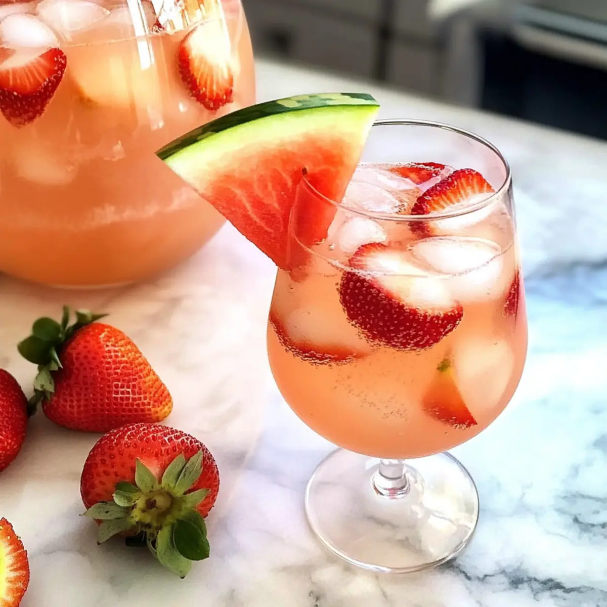 Jump to Recipe Print RecipeThe sun’s warmth beckons, and all I can think about is a refreshing drink that feels like a celebration in a glass. This Easy Strawberry Watermelon White Wine Sangria is my go-to for those sunny days, especially when Mother’s Day rolls around. With the delightful combo of juicy strawberries and sweet watermelon, this recipe is not only a crowd-pleaser but also a breeze to whip up, allowing you to focus on making memories rather than stressing in the kitchen. Trust me, the sparkling finish from champagne adds just the right touch of festive flair that your loved ones will adore. So, are you ready to toast to spring with this light and fruity delight? Why is this sangria the ultimate delight? Easy Preparation: This strawberry watermelon white wine sangria comes together in just a few simple steps, making it perfect for even the busiest host. Vibrant Flavors: With the juicy combination of strawberries and watermelon, every sip bursts with refreshing sweetness that screams summer. Versatile Base: Mix and match with your favorite fruits or wines to create a signature drink tailor-made for your palate. Elegant Touch: The addition of sparkling champagne elevates this sangria from casual to classy, ensuring it’s the highlight of any gathering. Perfect for Any Occasion: Whether it’s Mother’s Day brunch or a sunny patio hangout, this drink is a guaranteed crowd-pleaser, leaving everyone wanting more. Feel inspired? Pair it with a light appetizer, and consider a side of refreshing Cucumber Strawberry Salad to complement your delightful drinks! Strawberry Watermelon White Wine Sangria Ingredients For the Fruit Base • Fresh Strawberries – Adds natural sweetness and vibrant color; use ripe berries for the best flavor. • Fresh Watermelon Cubes – Provides a juicy, refreshing base for the drink; choose sweet, ripe watermelon for optimal taste. For the Liquid Ingredients • Simple Syrup – Enhances sweetness; adjust quantity based on personal taste and the sweetness of the fruit. • Fresh Lime Juice – Introduces acidity to balance the sweetness; use freshly squeezed juice for brightness. • Plain Vodka – Adds depth and an additional layer of flavor; choose your preferred brand for personal touch. • Pinot Grigio Wine – Acts as the primary base alcohol; select a dry variant for a crisp taste and ensure it is pre-chilled. • Prosecco or Champagne – Gives a sparkling finish to the drink; opt for a brut style to keep the sweetness in check. For Garnishing • Strawberry Slices (optional) – For garnish, adding extra visual appeal and flavor accents. • Fresh Mint Sprigs or Lime Wheels (optional) – Offers a fresh aromatic touch for garnish; enhance the drink’s presentation. Step‑by‑Step Instructions for Strawberry Watermelon White Wine Sangria Step 1: Blend the Fruit Begin by placing 2 cups of fresh strawberries (hulled) and 2 cups of cubed watermelon into a blender. Add 1/4 cup of simple syrup and the juice of 1 fresh lime. Blend the mixture until smooth, about 30 seconds. You want a vibrant, silky consistency that showcases the colors of summer. Step 2: Pour the Mixture Take a medium pitcher and carefully pour the blended fruit mixture into it. Use a spatula to ensure you get every delicious drop. At this point, you will notice the beautiful pink hue that signifies the joy of your Strawberry Watermelon White Wine Sangria, setting the stage for the next step. Step 3: Add the Alcohol Next, pour in 1/2 cup of plain vodka and a chilled bottle (750 ml) of Pinot Grigio wine into the pitcher. Stir gently using a long bar spoon for about 15 seconds, allowing the flavors to meld together harmoniously. The infusion of vodka and wine will deepen the refreshment of this delightful drink. Step 4: Sparkle it Up Now it’s time to top off your sangria with a splash of fizz! Slowly pour in 1 bottle (750 ml) of chilled Prosecco or champagne, allowing it to gently mix with the rest of the liquid. Stir lightly one more time for about 10 seconds, ensuring each component dances together while keeping that refreshing sparkle intact. Step 5: Serve and Garnish Fill your favorite glasses with ice, then pour the sangria over the ice until each glass is about three-quarters full. Add thinly sliced strawberries and lime wheels as a vibrant garnish. If desired, you can also include fresh mint sprigs for an elegant touch, enhancing both the visual appeal and aroma of your Strawberry Watermelon White Wine Sangria. How to Store and Freeze Strawberry Watermelon White Wine Sangria Fridge: Store leftover sangria in an airtight container in the fridge for up to 3 days. Add fresh fruit just before serving for vibrancy and flavor. Make-Ahead: You can prepare the fruit base a few hours in advance, refrigerating it until you’re ready to add sparkling wine and serve. This keeps the fizz intact. Freezer (Optional): For longer storage, freeze the blended fruit mixture without alcohol in ice cube trays. This allows you to create instant sangria later by blending the cubes with wine and sparkling water. Reheating: Sangria is best enjoyed cold and isn’t typically reheated. Instead, serve it over ice for a refreshing sip every time. Strawberry Watermelon White Wine Sangria Variations Feel free to let your creativity shine by customizing this sangria recipe to suit your taste buds or occasion! Berry Blend: Swap strawberries for a mix of raspberries and blueberries for a colorful twist. This berry medley adds an enticing tartness that complements the sweetness perfectly. Peach Delight: Replace watermelon with ripe peaches for a fragrant and juicy alternative. Peaches bring a lovely aroma, making each sip a delightful experience. Herb Infusion: Add fresh basil or rosemary for an unexpected herby note. This provides a unique flavor profile that surprises the palate and elevates your drink’s complexity. Citrus Burst: Incorporate sliced oranges or lemons for a zesty refreshment. The bri