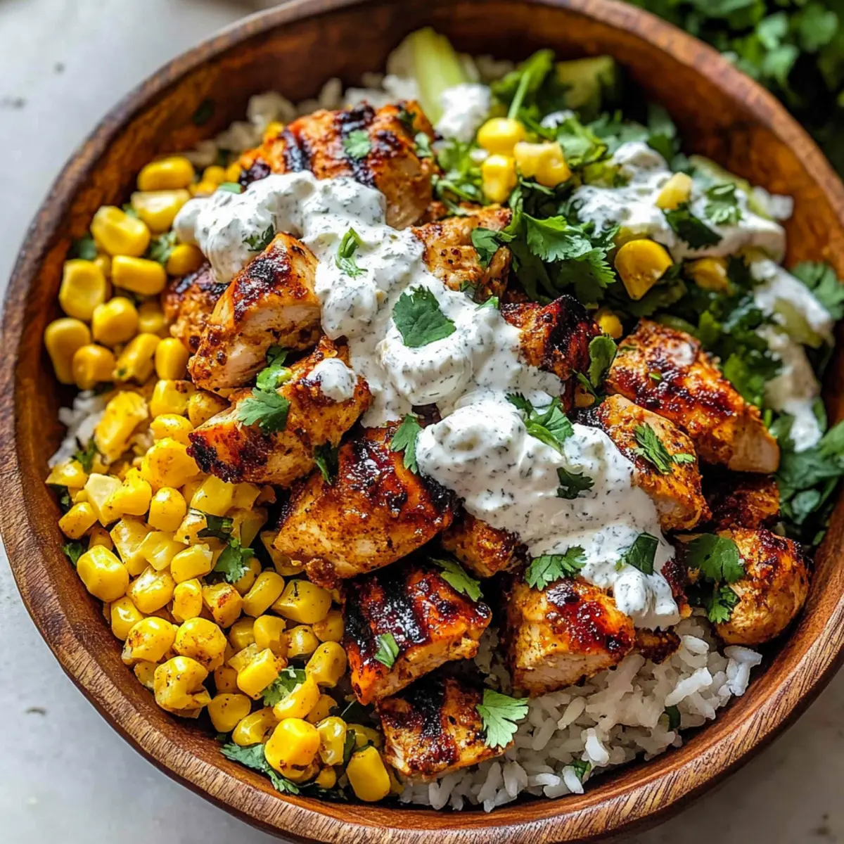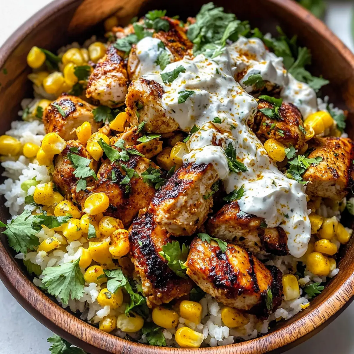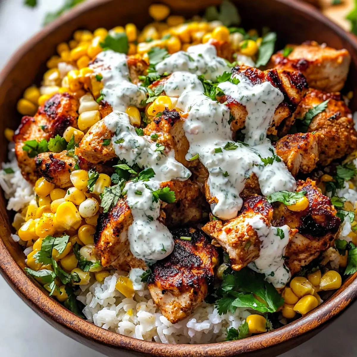 Jump to Recipe Print Recipe“Do you ever have those evenings where you crave something exciting yet comforting? Let me introduce you to my Street Corn Chicken Bowl—a quick and filling Mexican-inspired dish that captures all the vibrant flavors of street food without the wait! In just 30 minutes, you can whip up this crowd-pleaser that combines juicy chicken thighs, luscious corn, and fluffy rice, making it perfect for busy weeknights or meal prep. Not only does it provide a satisfying and hearty meal for the whole family, but it’s also a breeze to make, minimizing cleanup and maximizing flavor. Are you ready to bring some fiesta vibes to your dinner table?” Why is This Recipe a Must-Try? Quick Preparation: Whip up this meal in just 30 minutes, perfect for busy weeknights! Family-Friendly: It’s a sure hit with kids and adults alike, making dinner stress-free and enjoyable. Vibrant Flavors: The fusion of smoky corn, zesty lime, and juicy chicken is a flavor explosion you’ll love. Make-Ahead Convenience: Meal prepping is a breeze! The components store well, saving you time later. Versatile Options: Easily switch the protein or grains to suit your preferences, making it adaptable for any diet. Minimal Cleanup: One skillet and a bowl keep your kitchen tidy, ensuring you can enjoy your delicious creation without the mess. Street Corn Chicken Bowl Ingredients Get ready to create some magic in the kitchen with this vibrant dish! For the Chicken • Chicken Thighs – Provides flavor and moisture; boneless skinless is easiest for quick prep. • Lime Juice – Adds acidity and freshness; fresh juice is key for that vibrant flavor. • Avocado Oil – Acts as a marinade base and prevents sticking; you can swap with olive oil too. • Chili Powder – Adds spice and depth; adjust based on how spicy you like it or use taco seasoning. • Ground Cumin – Enhances the dish with earthy notes; just a pinch goes a long way. • Garlic Powder or Fresh Garlic – Provides aromatic flavor; fresh garlic offers an even bigger punch. • Salt and Black Pepper – Essential for overall seasoning; do taste tests as you go! For the Corn Mixture • Sweet Corn Kernels – Essential for the street corn flavor; frozen is fine, just thaw before using. • Red Onion – Offers crunch and sharpness; sometimes, a little red onion can elevate your flavors! • Sour Cream and Mayonnaise – Adds creaminess to the corn topping; Greek yogurt works as a lighter substitute. • Cotija Cheese – Provides a salty, crumbly finish; if unavailable, feta works in a pinch. For the Base • Prepared Rice – Serves as the heart of the bowl; consider quinoa for a healthier twist. • Fresh Cilantro – A bright garnish that adds freshness; feel free to omit if herbs aren’t your thing. • Lime Wedges – For serving and enhancing flavors; a squeeze of lime can brighten up every bite! Dive into creating this Street Corn Chicken Bowl and bring exceptional flavors to your family table! Step‑by‑Step Instructions for Street Corn Chicken Bowl Step 1: Marinate Chicken In a medium bowl, whisk together lime juice, avocado oil, chili powder, ground cumin, garlic powder, salt, and black pepper to create a flavorful marinade. Add the chicken thighs, ensuring they are well-coated, then cover the bowl and refrigerate for 15-30 minutes. This step allows the chicken to absorb all the delicious flavors, giving your Street Corn Chicken Bowl a tasty kick. Step 2: Cook Chicken Heat a large skillet over medium-high heat. Once hot, add the marinated chicken thighs to the pan, searing them for 8-10 minutes per side, or until the internal temperature reaches 165°F and the exterior is golden brown. After cooking, remove the chicken from the skillet and let it rest for a few minutes before slicing to keep it juicy. Step 3: Prepare Street Corn Mix In a separate bowl, combine the sweet corn kernels, diced red onion, sour cream, mayonnaise, Cotija cheese, and a squeeze of lime juice. Mix gently to combine, then taste and season with additional salt and pepper as needed. This vibrant corn mixture adds a refreshing touch to your Street Corn Chicken Bowl. Step 4: Heat the Rice To warm the prepared rice, place it in a microwave-safe dish and add a splash of water. Microwave it on high for 2-3 minutes or until heated through and fluffy. This base will soak up the flavors from the chicken and corn, providing a delightful foundation for your delicious bowl. Step 5: Assemble Bowls Divide the warm rice evenly among serving bowls. Top each bowl with sliced chicken, generous spoonfuls of the street corn mixture, and additional Cotija cheese, if desired. Garnish each bowl with fresh cilantro and lime wedges to add brightness and a final pop of flavor to your Street Corn Chicken Bowl. What to Serve with Street Corn Chicken Bowl Savor the festive flavors of this dish while exploring delightful accompaniments that elevate your meal to another level. Warm Flour Tortillas: Soft and pliable, these are perfect for wrapping around your ingredients, providing a comforting texture and a hand-held option for your meal. Black Beans with Cumin: Rich in protein and fiber, seasoned black beans complement the chicken bowl’s flavors and add a nutritious punch. Refreshing Cucumber Salad: Crisp cucumbers tossed with lime juice and cilantro offer a cool, crunchy contrast to the warmth of the chicken and rice. Zesty Avocado Slices: Creamy avocado drizzled with lime juice not only adds richness but also balances the spices from the bowl beautifully. Mexican Street Corn Salad: This flavorful side mirrors the main dish, enhancing those beloved street corn flavors while adding a different texture to your meal. Chilled Horchata: This sweet, creamy drink made with rice and cinnamon perfectly balances the dish’s spice, refreshing your palate with each sip. Indulge in these pairings for a well-rounded and satisfying dining experience that brings the fiesta home! Expert Tips for t