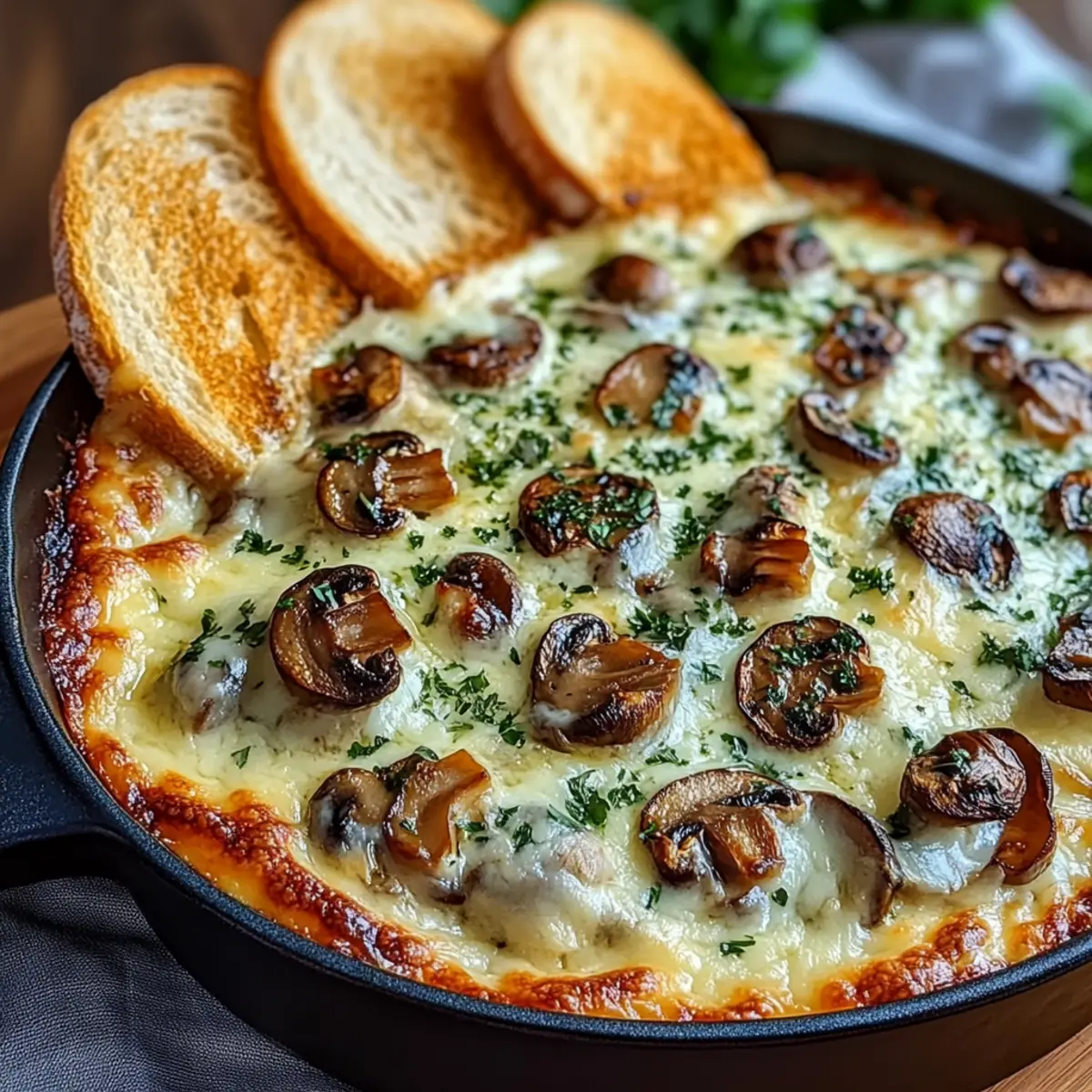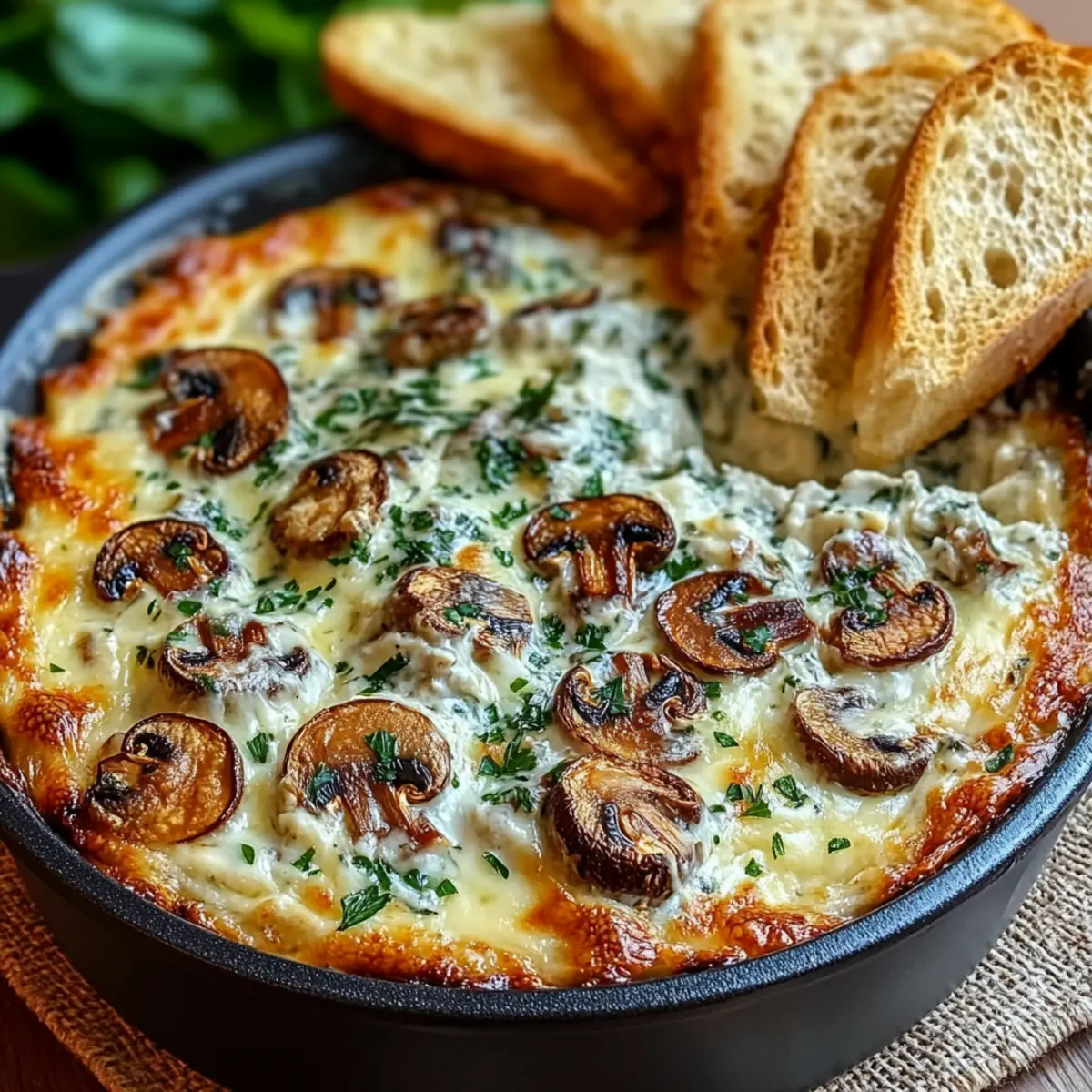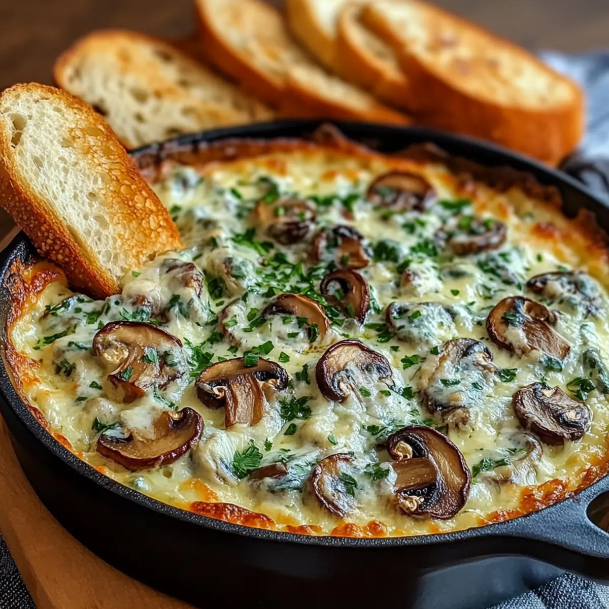 Jump to Recipe Print RecipeAs I was enjoying a cozy evening in, the thought struck me: nothing beats the comfort of a warm, cheesy dip to share with friends and family. That’s when I whipped up my favorite Creamy Stuffed Mushroom Dip. Packed with the rich, savory goodness of sautéed mushrooms, creamy cheeses, and aromatic garlic, this vegetarian appetizer is sure to be a crowd-pleaser at any gathering. What I love most is how easily it comes together—perfect for last-minute plans or game day snacks. This dip not only warms the heart but also makes entertaining effortless. Curious to see how to elevate your next get-together with this delightful dish? Let’s dive into the recipe! Why is Stuffed Mushroom Dip a Must-Try? Crowd-Pleasing Delight: This Stuffed Mushroom Dip is always met with rave reviews, making it a favorite at gatherings. It’s perfect for game days or cozy evenings! Quick and Easy: With just a few simple steps, you’ll have a hot, cheesy dip ready in no time. Preparing for unexpected guests? You’ll love how fast it comes together! Versatile Ingredients: Feel free to customize it! Add spinach for color, or swap out cheeses for a unique twist. Check out variation ideas to inspire your creativity! Warm and Cozy: The creamy texture and golden-brown top create the ultimate comfort food experience—perfect for sharing with loved ones. Expect smiles all around as everyone digs in! Simple Clean-up: Made in a skillet, it minimizes dishes while delivering maximum flavor. You’ll appreciate how easy it is to enjoy this delicious dip without the mess. Stuffed Mushroom Dip Ingredients • Get ready for creamy goodness! For the Dip Olive Oil or Butter – Provides fat for sautéing and flavor; coconut oil is a great dairy-free alternative. Mushrooms (8 ounces, sliced) – Adds depth of flavor and umami; prefer fresh over canned for the best taste. Garlic (2 cloves, minced) – Enhances flavor with aromatic notes; fresh garlic makes all the difference in this Stuffed Mushroom Dip. Cream Cheese (8 ounces, softened) – Delivers creaminess and helps bind the dip; try Neufchâtel for a lighter option. Sour Cream (1/2 cup) – Contributes tanginess and moisture; Greek yogurt can be a suitable substitute. Mozzarella Cheese (1 cup, divided) – Provides meltiness and stretch; Fontina adds a unique texture if you’re feeling adventurous. Grated Parmesan Cheese (1/4 cup) – Introduces nuttiness and depth; no recommended substitutions found. Salt (1/2 teaspoon) – Enhances overall flavor; adjust based on your taste and other ingredients. Black Pepper (1/4 teaspoon) – Adds a touch of heat; freshly cracked gives the best flavor. Fresh Thyme or Parsley (1 teaspoon, chopped) – Offers a fresh herbaceous note; basil or chives can also brighten the dish. For Serving Toasted Bread or Crackers – Perfect pairings for scooping up this warm, creamy dip; choose your favorites! Vegetable Sticks (celery, bell pepper strips) – A healthy option to enjoy with the dip, bringing a nice crunch to the experience. Step‑by‑Step Instructions for Stuffed Mushroom Dip Step 1: Sauté the Mushrooms Begin by heating 1 tablespoon of olive oil or butter in a cast iron skillet over medium heat. Add 8 ounces of sliced mushrooms and sauté for 8-10 minutes, stirring occasionally, until they are browned and tender. As they cook, the mushrooms will release their moisture, concentrating their flavor and aroma, which sets the foundation for your delicious Stuffed Mushroom Dip. Step 2: Add Aromatics When the mushrooms are beautifully browned, add 2 cloves of minced garlic to the skillet. Cook for an additional minute, stirring constantly until the garlic becomes fragrant. Keep an eye on the garlic to prevent it from burning, as this could impart a bitter taste to your Stuffed Mushroom Dip, and let those inviting aromas fill your kitchen. Step 3: Incorporate Creamy Ingredients Lower the heat slightly and introduce 8 ounces of softened cream cheese and ½ cup of sour cream into the skillet. Stir gently until the mixture is fully melted and creamy, ensuring an even blend of flavors. This sumptuous base will form the heart of your Stuffed Mushroom Dip, so take your time to achieve that velvety consistency. Step 4: Add Cheeses and Season Next, mix in half of the 1 cup of shredded mozzarella cheese and all of the ¼ cup grated Parmesan cheese. Stir until everything is well combined and smooth; the cheeses will melt into the dip, adding a delightful gooeyness. Season with ½ teaspoon of salt and ¼ teaspoon of black pepper for extra flavor—taste as you go to ensure it’s just right. Step 5: Top with Mozzarella Sprinkle the remaining mozzarella over the top of the dip for a bubbly finish. This layer will create a wonderful, gooey, and cheesy topping as it bakes. Preheat your oven to 375°F and prepare to transfer the skillet. Step 6: Bake to Perfection Place your skillet in the preheated oven and bake for 15-20 minutes. Keep an eye on it, and when the dip is bubbly and the top is golden brown, you’ll know it’s ready to come out. This is the moment to enjoy the transformation of your Stuffed Mushroom Dip into a warm, irresistible treat. Step 7: Garnish and Serve After baking, remove the skillet from the oven and let it cool for a couple of minutes. Garnish your dish with freshly chopped thyme or parsley for a pop of color and flavor. Serve hot with toasted bread, crackers, or fresh vegetable sticks, and get ready to share this delightful Stuffed Mushroom Dip with family and friends! Stuffed Mushroom Dip Variations & Substitutions Customize your Stuffed Mushroom Dip and make it shine with these delightful ideas that’ll tantalize your taste buds! Dairy-Free: Substitute cream cheese and sour cream with coconut yogurt and dairy-free cream cheese for a vegan-friendly twist. With these swaps, you’ll still enjoy that creamy, satisfying texture, making it perfect for any gathering! Spinach & Cheese: Add 1 cup of fre