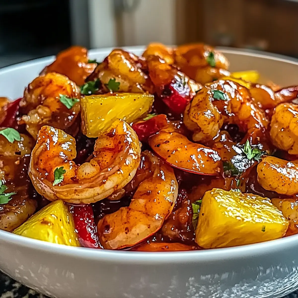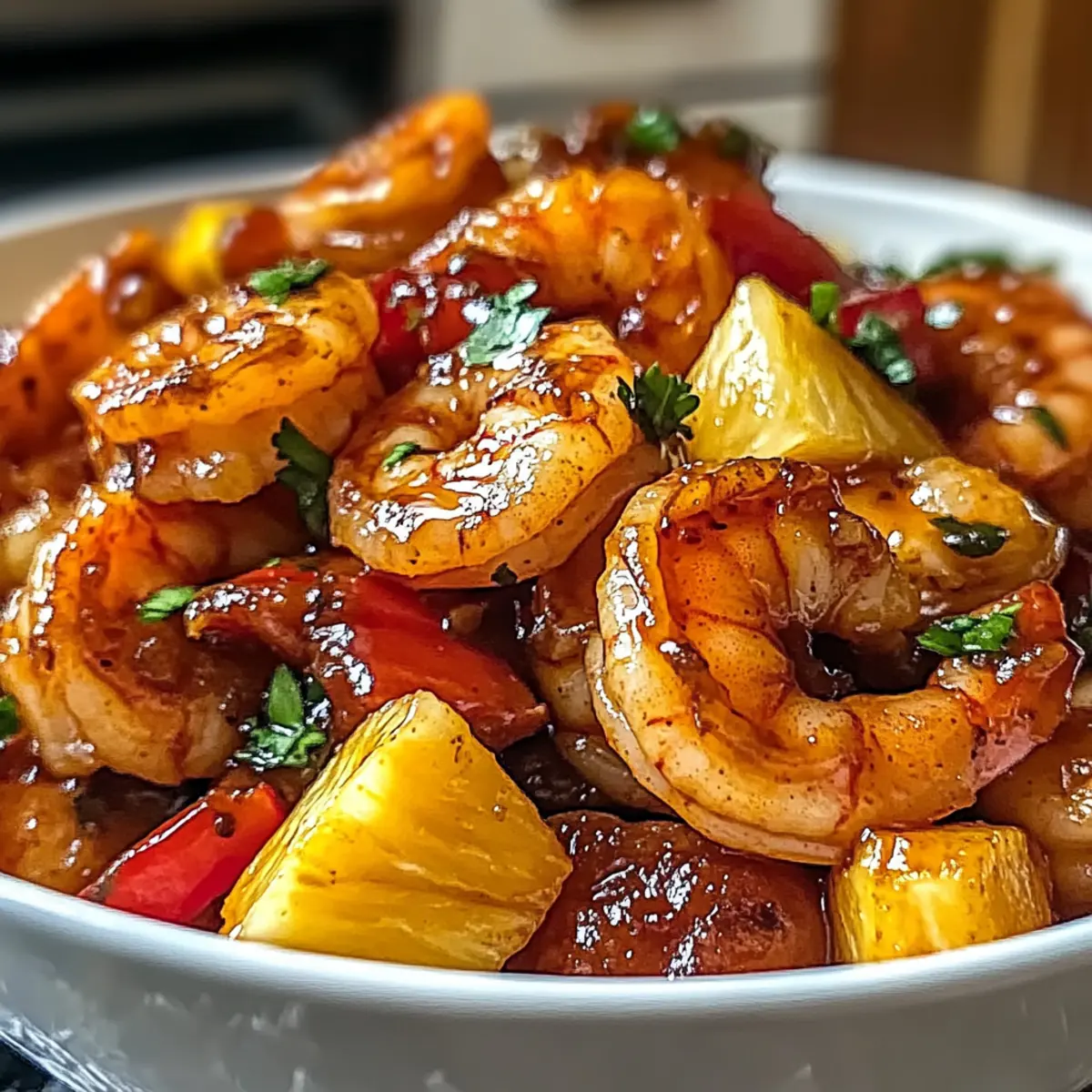 Jump to Recipe Print RecipeThe tantalizing aroma of sweet and spicy goodness fills the kitchen as I whip up one of my all-time favorites: Sweet Chili Pineapple Shrimp. This dish is a delightful fusion of flavors, bringing together tender shrimp and juicy pineapple coated in a luscious sweet chili sauce that dances on your palate. What I love most about this recipe is how quick it is to prepare—perfect for bustling weeknight dinners or when entertaining guests. Plus, it’s incredibly versatile; you can easily customize it by tossing in your favorite veggies or adding a squeeze of fresh lime juice for that extra zesty pop. Are you ready to transform your dinner routine with this tropical delight? Let’s dive in! Why is this shrimp dish so special? Quick and Easy: You can whip up this delightful Sweet Chili Pineapple Shrimp in just 30 minutes, making it a fantastic choice for busy weeknights or spontaneous gatherings. Flavor Party: The fusion of sweet pineapple and spicy chili sauce creates a flavor explosion that will keep your taste buds dancing! Customizable: Feel free to add your favorite veggies like bell peppers or snap peas, or swap the shrimp for chicken or tofu for a unique twist. Visually Stunning: The vibrant colors of the shrimp and pineapple make this dish a showstopper that impresses your guests while enhancing your dinner table’s aesthetics. Healthy Choice: Packed with lean protein and vitamins from the pineapple, this dish is not only delicious but also nutritious. Serve it over jasmine rice or alongside a fresh salad for a complete meal that satisfies. If you’re looking for more tropical flavors, you can check out Garlic Chili Oil for a bold option or complement this dish with Pineapple Chicken Rice. Sweet Chili Pineapple Shrimp Ingredients For the Shrimp Shrimp – Opt for wild-caught shrimp for superior flavor; frozen shrimp works too, just ensure they are thawed before use. Sweet Chili Sauce – This key ingredient adds the perfect balance of sweetness and spice; make a quick substitute by combining honey and sriracha if needed. Soy Sauce – Enhance the dish’s umami flavor with low-sodium soy sauce if you’re watching your salt intake. For the Flavor Base Garlic – Freshly minced garlic infuses aromatic flavor that elevates your dish to another level. Ginger – Freshly grated ginger adds a warm zest that complements the shrimp beautifully. For the Fruity Twist Pineapple – Fresh pineapple is preferred for its juiciness; canned pineapple is a convenient alternative, just make sure it’s well-drained. For Cooking Olive Oil – Use olive oil for cooking the shrimp; feel free to substitute with your favorite cooking oil if desired. Optional Enhancements Cilantro – Fresh cilantro can be used for garnish; it not only adds a pop of color but also brightens the flavors. Lime Juice – A splash of lime juice brings a refreshing acidity that enhances the dish. Red Pepper Flakes – For those who like it hot, sprinkle in some red pepper flakes to kick up the spice level. Dive into this vibrant and flavorful Sweet Chili Pineapple Shrimp—a dish that’s not just easy to make but also a feast for the eyes and the palate! Step‑by‑Step Instructions for Sweet Chili Pineapple Shrimp Step 1: Marinate the Shrimp In a mixing bowl, combine the shrimp with sweet chili sauce, soy sauce, minced garlic, and freshly grated ginger. Toss everything together until the shrimp are evenly coated. Let the mixture marinate in the refrigerator for 15 to 30 minutes, allowing the flavors to meld beautifully. Your shrimp should take on a lovely glaze that will enhance the dish’s overall taste. Step 2: Prepare the Pineapple While the shrimp marinate, prepare your pineapple for the Sweet Chili Pineapple Shrimp. If using fresh pineapple, cut it into bite-sized chunks, ensuring you remove the core. For canned pineapple, simply drain it well to avoid excess moisture. Set it aside, as you’ll add this sweet tanginess to the skillet shortly. Step 3: Cook the Shrimp Heat a large skillet over medium-high heat and drizzle in olive oil, allowing it to warm up for about a minute. Once the oil is shimmering, carefully add the marinated shrimp to the pan. Cook them for 2 to 3 minutes on each side, or until the shrimp turn pink and opaque—this indicates they are cooked perfectly and ready to bring the dish to life. Step 4: Combine Pineapple and Shrimp After the shrimp are cooked, it’s time to elevate your Sweet Chili Pineapple Shrimp! Add the prepared pineapple to the skillet and stir gently to combine, ensuring everything is well mixed. Cook for an additional 2 to 3 minutes until the pineapple is warmed through and slightly caramelized, adding that beautiful tropical flavor to the dish. Step 5: Serve and Garnish Once cooked, plate your Sweet Chili Pineapple Shrimp and admire the vibrant colors. For an extra flourish, garnish the dish with freshly chopped cilantro and a squeeze of lime juice if desired. This last touch not only adds visual appeal but also a burst of freshness that brightens every bite. Make Ahead Options These Sweet Chili Pineapple Shrimp are perfect for busy weeknights and meal prep enthusiasts! You can marinate the shrimp in the sweet chili sauce mixture up to 24 hours in advance, ensuring the flavors penetrate deeply for a more delicious dish. Additionally, you can chop the pineapple and store it in an airtight container in the refrigerator for 3 days. When you’re ready to enjoy this delightful meal, simply cook the marinated shrimp and pineapple together in a skillet as directed. This way, you’ll save precious time without compromising the vibrant flavors and quality of your meal. Enjoy a taste of the tropics with minimal effort! Sweet Chili Pineapple Shrimp Variations Explore the endless possibilities to elevate your Sweet Chili Pineapple Shrimp and make it uniquely yours! Add Vegetables: Toss in bell peppers, snap peas, or broccoli for added crunch and vibrant color.