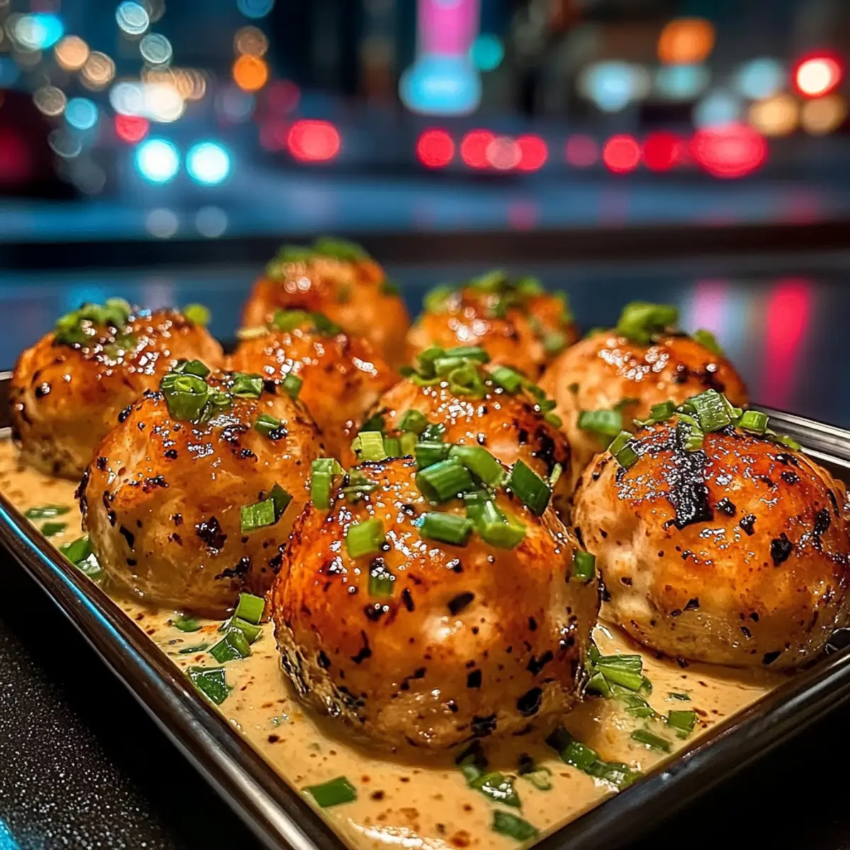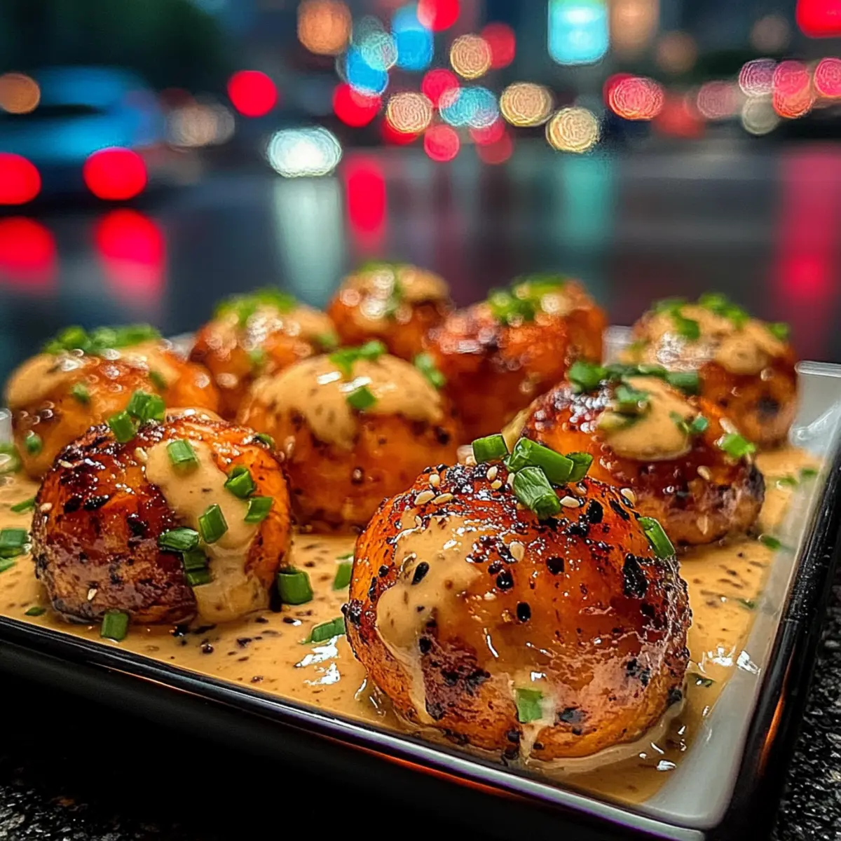 Jump to Recipe Print RecipeAs the scent of sweet chili wafts through my kitchen, I can’t help but smile. It’s time to whip up a batch of these irresistible Sweet Chili Salmon Balls with Creamy Garlic Sauce! The beauty of this recipe lies not only in its vibrant flavors but also in its quick and easy preparation—perfect for busy weeknights or impressing friends at gatherings. Each protein-packed bite delivers a satisfying crunch, thanks to a crispy exterior, while the creamy garlic sauce adds a luscious touch that takes it to the next level. Plus, with heart-healthy omega-3s from fresh salmon, you can feel great about indulging in this delightful dish. Curious to find out just how easy it is to bring this tasty meal to your table? Let’s dive in! Why are Sweet Chili Salmon Balls a must-try? Convenience: These bites come together quickly, making them perfect for anyone with a busy lifestyle. Flavor Explosion: The combination of sweet chili sauce and garlic creates an irresistible flavor profile that will have your taste buds dancing. Health Benefits: Packed with omega-3 fatty acids, these salmon balls are heart-healthy without sacrificing taste. Versatility: Pair them with a zesty green salad or jasmine rice for a fulfilling meal, or enjoy them as an appetizer! If you love easy-to-make, delicious dishes, you might also want to check out my recipes for Garlic Butter Salmon or Garlic Chicken Zucchini for more tasty options! Sweet Chili Salmon Balls Ingredients • Here’s everything you need to create these delicious Sweet Chili Salmon Balls with Creamy Garlic Sauce. For the Salmon Balls Fresh Salmon – The core ingredient that gives these balls their protein and omega-3 goodness; opt for the freshest quality for the best flavor. Sweet Chili Sauce – This is what adds that delightful balance of sweetness and spice; if you need a substitute, mix honey and soy sauce for a quick fix. Breadcrumbs – They provide the necessary structure and help bind the salmon; gluten-free breadcrumbs can be used for those with dietary restrictions. Egg – A crucial binder to hold everything together; swap for a flax egg if you’re looking for a vegan option. Minced Garlic – Elevates the flavor profile beautifully; adjust the amount based on how garlicky you like it. Chopped Green Onions – These add a fresh, mild onion flavor; chives work well as a substitute if you’re short on green onions. Salt and Pepper – Essential seasonings to enhance the overall taste; feel free to tailor them to your preference. For the Creamy Garlic Sauce Cream – Creates a smooth and rich base for the sauce; consider using a plant-based cream for a dairy-free version. Minced Garlic – Mirrors the flavor from the salmon balls for consistency; raw garlic gives more intensity, so adjust to your taste. Salt and Pepper – Season to your liking for the perfect finishing touch; balance is key! Step‑by‑Step Instructions for Sweet Chili Salmon Balls with Creamy Garlic Sauce Step 1: Preheat the Oven Begin by preheating your oven to 400°F (200°C). This ensures it’s hot enough to create a beautifully crispy exterior on your Sweet Chili Salmon Balls. While the oven heats, you can start preparing your salmon mixture, which will make things seamless later on. Step 2: Prepare the Salmon Take your fresh salmon and finely chop it, or pulse it in a food processor until you achieve a chunky consistency. The goal is to maintain some texture while ensuring it’s manageable for mixing. This step is crucial for the overall flavor and will help bind the ingredients together seamlessly. Step 3: Combine the Ingredients In a large mixing bowl, combine the chopped salmon with sweet chili sauce, breadcrumbs, egg, minced garlic, chopped green onions, salt, and pepper. Mix everything thoroughly for about 2-3 minutes until well combined. This mixture will be the heart of your Sweet Chili Salmon Balls, so make sure it’s evenly mixed and blended. Step 4: Form the Salmon Balls Now, use your hands to form the salmon mixture into small balls, roughly 1 to 1.5 inches in diameter. Place them neatly on a greased, parchment-lined baking sheet, ensuring they’re spaced apart to allow even cooking. This step is not only fun but crucial for achieving that delightful crunch you crave. Step 5: Bake the Salmon Balls Slide the baking sheet into your preheated oven and bake the salmon balls for 15-20 minutes. Keep an eye on them; they should turn golden brown and reach an internal temperature of 145°F (63°C) for safety. The delightful aroma of your Sweet Chili Salmon Balls will fill your kitchen during this time! Step 6: Broil for Extra Crispiness If you prefer an extra crispy finish, switch to broil for the last 2-3 minutes of baking. This step will give your salmon balls that perfect golden-brown crust, enhancing both the look and texture. Monitor closely to prevent burning and ensure they turn out just right. Step 7: Prepare the Creamy Garlic Sauce While your Sweet Chili Salmon Balls are baking, whisk together the cream, minced garlic, salt, and pepper in a small bowl to create the creamy garlic sauce. Adjust the consistency with a splash of water if needed. This versatile sauce is the perfect complement to your salmon balls, adding a rich and flavorful touch. Step 8: Serve and Enjoy Once the salmon balls are out of the oven and have cooled slightly, serve them with the creamy garlic sauce drizzled on top or on the side for dipping. This pairing enhances the flavor experience, making your Sweet Chili Salmon Balls an irresistible treat for any occasion! Expert Tips for Sweet Chili Salmon Balls Chill the Mixture: Let the salmon mixture rest in the fridge for 15 minutes before shaping. This helps the ingredients stick together better, preventing the balls from falling apart. Adjust Texture: If the salmon mixture feels too dry, a splash of sweet chili sauce can add moisture; if it’s too wet, incorporate more breadcrumbs to achieve the right consi