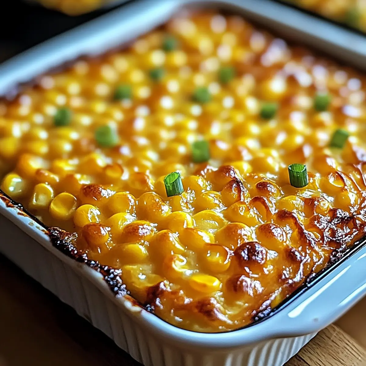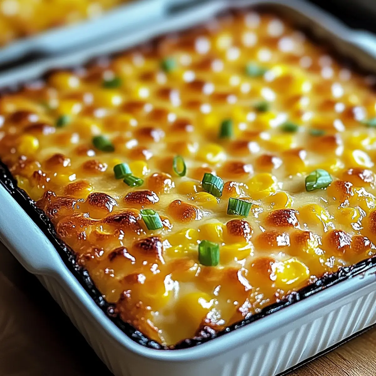 Jump to Recipe Print RecipeThe sweet aroma of honey and corn wafting through your kitchen can turn an ordinary evening into something special. It was just last week when I decided to whip up my Sweet Harmony Honey-Glazed Corn Casserole for a cozy family dinner. This dish perfectly marries comforting flavors with an easy prep that even the busiest home chefs will appreciate. Not only is it a crowd-pleaser that kids adore, but it also offers the flexibility of using fresh or frozen corn, making it super convenient for any day of the week. As the honey caramelizes to a golden glaze, you’ll soon discover that this casserole is destined to become a favorite at your table. Curious how to recreate this delightful dish? Let’s dive into the recipe! Why Is This Corn Casserole So Special? Comfort Food Done Right: This Sweet Harmony Honey-Glazed Corn Casserole provides a warm, inviting flavor that captures the essence of home-cooked goodness. Crowd-Pleasing Delight: Perfect for family dinners or holiday gatherings, it’s a dish everyone loves, even picky eaters! Easy Preparation: With minimal ingredients and simple steps, this recipe doesn’t take a kitchen expert to master. Versatile Ingredients: Use fresh or frozen corn based on your preference, with options for gluten-free adaptations as well. Memorable Aroma: As it bakes, the sweet honey caramelizes, filling your kitchen with an irresistible scent that sets the mood for comfort and togetherness. Sweet Harmony Honey-Glazed Corn Casserole Ingredients • Discover how easy it is to create this cozy favorite! For the Casserole • Whole Kernel Corn – Adds texture and bite; use frozen corn if desired and ensure it’s thawed first. • Cream-Style Corn – Provides creaminess and richness; substitute by blending regular corn with a splash of cream if unavailable. • Corn Muffin Mix – The base ingredient for the casserole’s structure; Jiffy mix is commonly used but a homemade mix works too. • Sour Cream – Adds tang and moisture; plain Greek yogurt can be substituted for a lighter option. • Butter – Enhances richness and flavor; margarine can be used but opt for real butter for the best taste. • Eggs – Bind the ingredients together; use large eggs for best results. • Honey – The star ingredient for sweetness and shine; maple syrup can be substituted for a unique twist. • Salt – Enhances the corn’s flavor and balances sweetness. • Optional Spices – A pinch of nutmeg or cinnamon can be added for a warm note. This Sweet Harmony Honey-Glazed Corn Casserole is not just easy to prepare, but it’s a delightful treat that brings a touch of warmth to any meal! Step‑by‑Step Instructions for Sweet Harmony Honey-Glazed Corn Casserole Step 1: Preheat and Prepare Preheat your oven to 350°F (175°C) and greasing a 9×13-inch baking dish with butter to prevent sticking is essential. This will provide a nice, golden finish to your Sweet Harmony Honey-Glazed Corn Casserole. Ensure your oven is fully heated before moving on to the next steps, as this helps in achieving even cooking throughout. Step 2: Mix the Casserole Base In a large mixing bowl, combine the corn muffin mix, cream-style corn, whole kernel corn, sour cream, melted butter, eggs, and salt. Stir gently until just combined, ensuring not to overmix; a few lumps are okay. The mixture should be thick and creamy as you prepare it for the baking dish, creating the perfect base for your delicious casserole. Step 3: Pour and Bake Carefully pour the combined ingredients into your greased baking dish, spreading them evenly. Place the casserole in your preheated oven and bake for 45-50 minutes. You will know it’s ready when the top is a lovely golden brown and a toothpick inserted in the center comes out mostly clean, signaling a well-set interior. Step 4: Glaze for Shine With just 5 minutes left in the baking time, take the remaining tablespoon of honey and warm it slightly until it is pourable. Drizzle this honey over the top of your casserole, allowing it to create a beautiful, shiny glaze as it finishes baking. This final touch enhances the sweet flavor of the Sweet Harmony Honey-Glazed Corn Casserole. Step 5: Cool and Serve Once baked to perfection, remove the casserole from the oven and let it cool for 5-10 minutes. This resting period allows the casserole to set and makes it easier to serve. The beautiful golden crust with a soft, custardy center will be a delightful addition to your dining experience, evoking warmth and comfort with each bite. How to Store and Freeze Sweet Harmony Honey-Glazed Corn Casserole Fridge: Store leftovers in an airtight container for up to 4 days. This keeps the casserole fresh and tasty for quick meals throughout the week. Freezer: Wrap tightly in foil or use a freezer-safe container to freeze for up to 2 months. Thaw overnight in the fridge before reheating. Reheating: Reheat in a preheated oven at 350°F (175°C) for about 20-25 minutes until warmed through and serve to enjoy the same delightful flavors of your Sweet Harmony Honey-Glazed Corn Casserole. Sweet Harmony Honey-Glazed Corn Casserole Variations Feel free to let your creativity shine and customize this dish with these fun variations! Cheesy Delight: Add 1 cup of shredded cheddar or Monterey Jack to the mix for a rich, cheesy goodness that kids will love. The melted cheese throughout the casserole creates a creamy dream. Spicy Twist: For a flavorful kick, toss in 1 diced jalapeño or a pinch of cayenne pepper. This addition brings a delightful heat that balances the sweetness of the honey. Seasonal Swap: Replace honey with maple syrup and sprinkle cinnamon on top for a cozy, autumn-inspired flavor. The combination of maple and cinnamon warms the heart and soul. Gluten-Free Option: Use a gluten-free cornbread mix instead of the regular mix to ensure everyone can enjoy this comforting dish. It’s a simple swap that doesn’t sacrifice flavor. Savory Version: Reduce the honey t