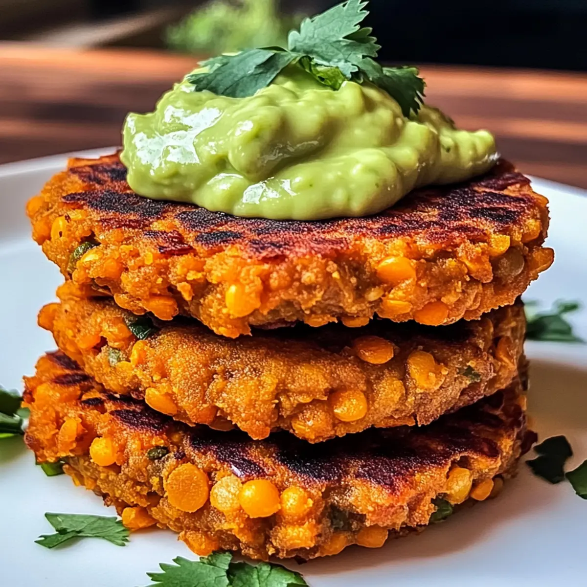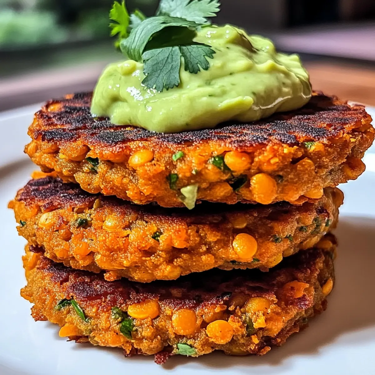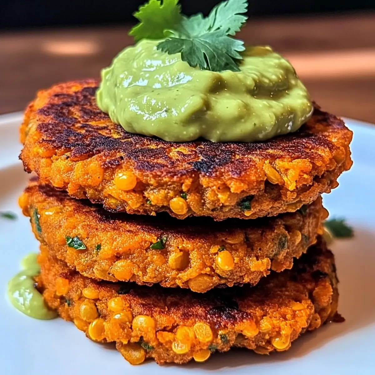 Jump to Recipe Print RecipeThe aroma of roasted sweet potatoes always brings back memories of cozy family dinners. It’s hard to resist the comfort they offer, especially when paired with healthy ingredients like red lentils. Today, I’m excited to share my recipe for Crispy Sweet Potato & Red Lentil Patties with Creamy Avocado Cilantro Sauce. This delightful dish not only offers a satisfying crunch but also makes for a quick meal or snack that even your busiest days can accommodate. Perfect for those of us seeking nutritious, plant-based options without sacrificing flavor, these patties are a real crowd-pleaser. Ready to dive in and create a dish that’s as delicious as it is healthy? Let’s get cooking! Why are these patties a must-try? Crispy Texture: The irresistible crunch of the patties gives way to a soft, velvety center, thanks to the sweet potatoes and lentils. Healthy and Satisfying: Packed with protein and fiber, they offer a nutritious alternative to fast food cravings. Quick and Easy: With a preparation time of just 30 minutes, they’re perfect for weeknight dinners or lunch prep. Flavorful Sauce: The creamy avocado cilantro sauce adds a bright, zesty flavor that elevates the patties to new heights. Versatile Options: Customize with various herbs or even swap lentils for beans—they’re truly adaptable! Try serving them with a crisp side salad or in a grain bowl for a complete meal. Sweet Potato & Red Lentil Patties Ingredients For the Patties Red Lentils – Provide protein and a slightly nutty flavor; can substitute with black beans or chickpeas for a similar texture. Sweet Potato – Adds natural sweetness and moisture, helping to bind the patties together. Onion – Offers savory depth of flavor; use yellow or red onion interchangeably. Garlic – Enhances flavor; can use garlic powder as a substitute if fresh is not available. Cumin – Adds warmth; adjust quantities to taste for a spicier kick. Paprika – Contributes smokiness; feel free to use smoked paprika for an extra layer of flavor. Ground Coriander – Provides a citrusy touch; balance with other spices if needed. Salt and Pepper – Essential for seasoning; don’t skip it for flavor enhancement! Cilantro – Offers freshness and brightness; can be replaced with parsley or dill if desired. Flour – Aids in binding the mixture; can substitute with chickpea flour for a gluten-free option. Olive Oil – Used for frying; can replace with vegetable oil if preferred. For the Avocado Sauce Avocado – Creates a creamy sauce; use ripened avocados for optimal texture. Lime Juice – Adds acidity to the sauce; lemon juice is a suitable alternative. Yogurt – Contributes creaminess; Greek yogurt works well; can substitute with a plant-based yogurt for a dairy-free option. These Sweet Potato & Red Lentil Patties are not only nourishing but also delightful, making them a fantastic choice for a quick snack or a meal. Happy cooking! Step‑by‑Step Instructions for Crispy Sweet Potato & Red Lentil Patties Step 1: Cook the Lentils Begin by rinsing 1 cup of red lentils under cold water, then place them in a saucepan with 2 cups of water. Over medium heat, bring the water to a boil, then reduce to a simmer. Cook the lentils until they are soft and tender, about 10-12 minutes. Once cooked, drain any excess water and set the lentils aside to cool slightly. Step 2: Prepare the Mixture In a large mixing bowl, combine the cooled lentils with 1 grated sweet potato, ½ finely chopped onion, 2 minced garlic cloves, 1 teaspoon each of cumin, paprika, and ground coriander, with salt and pepper to taste, and ¼ cup of chopped cilantro. Mix thoroughly until all ingredients are well incorporated. Finally, add in ½ cup of flour and stir until the mixture is cohesive. Step 3: Rest the Mixture Allow the combined mixture to rest for about 5-10 minutes. This resting period helps the flavors meld together and enhances the binding properties of the ingredients, ensuring that your Sweet Potato & Red Lentil Patties hold together well when cooking. Step 4: Fry the Patties Heat 2 tablespoons of olive oil in a skillet over medium heat. Once the oil is shimmering, form the lentil mixture into palm-sized patties, gently flattening them. Place the patties into the hot skillet, cooking for 3-4 minutes on each side until they achieve a golden brown and crispy exterior. Make sure not to overcrowd the skillet to allow even cooking. Step 5: Make the Avocado Sauce While the patties are frying, prepare the creamy avocado cilantro sauce. In a blender, combine 1 ripe avocado, ¼ cup of chopped cilantro, 1 minced garlic clove, the juice of 1 lime, and ½ cup of yogurt. Blend until smooth and creamy, adjusting the consistency with a little water if necessary for a pourable sauce. Step 6: Serve and Enjoy Once the patties are cooked to a golden crisp, transfer them to a serving platter. Serve them warm alongside the creamy avocado cilantro sauce for dipping. These Crispy Sweet Potato & Red Lentil Patties are perfect as a snack or part of a delightful meal, showcasing vibrant flavors and textures that everyone will love. Sweet Potato & Red Lentil Patties Variations Embrace your creativity in the kitchen by tailoring these patties to suit your tastes and dietary needs! Bean Swap: Substitute red lentils with black beans or chickpeas for a different flavor and texture. Gluten-Free Flour: Use chickpea flour instead of regular flour for a gluten-free binding option that adds a nutty flavor. Veggie Boost: Incorporate finely chopped bell peppers or zucchini for extra nutrients and a pop of color. Spice it Up: Add a pinch of cayenne or crushed red pepper to the mix if you desire a bit of heat. Herb Variations: Experiment with fresh herbs like dill or mint for an exciting twist that can brighten up the flavors beautifully. Cornmeal Crunch: Swap out flour for cornmeal, giving the patties a different texture with a slight sweetness. Citrus Twist: Try substituting lime 