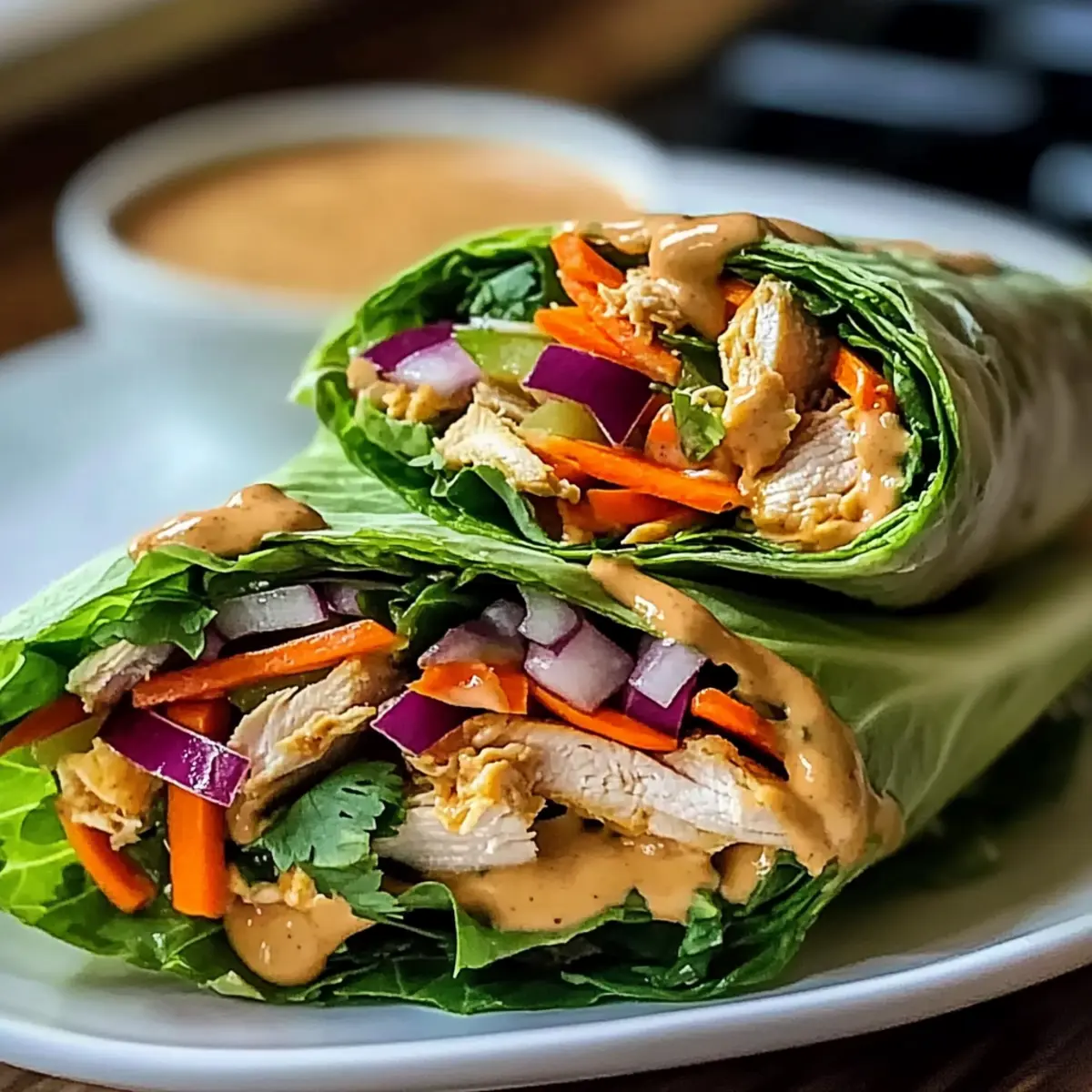 Carefully fold and roll the edges of the lettuce leaves around the filling to create a neat, handheld wrap. Serve immediately, allowing everyone to dig into these delightful Thai Peanut Chicken Wraps while the ingredients are fresh and crispy, and enjoy a satisfying meal bursting with flavor!