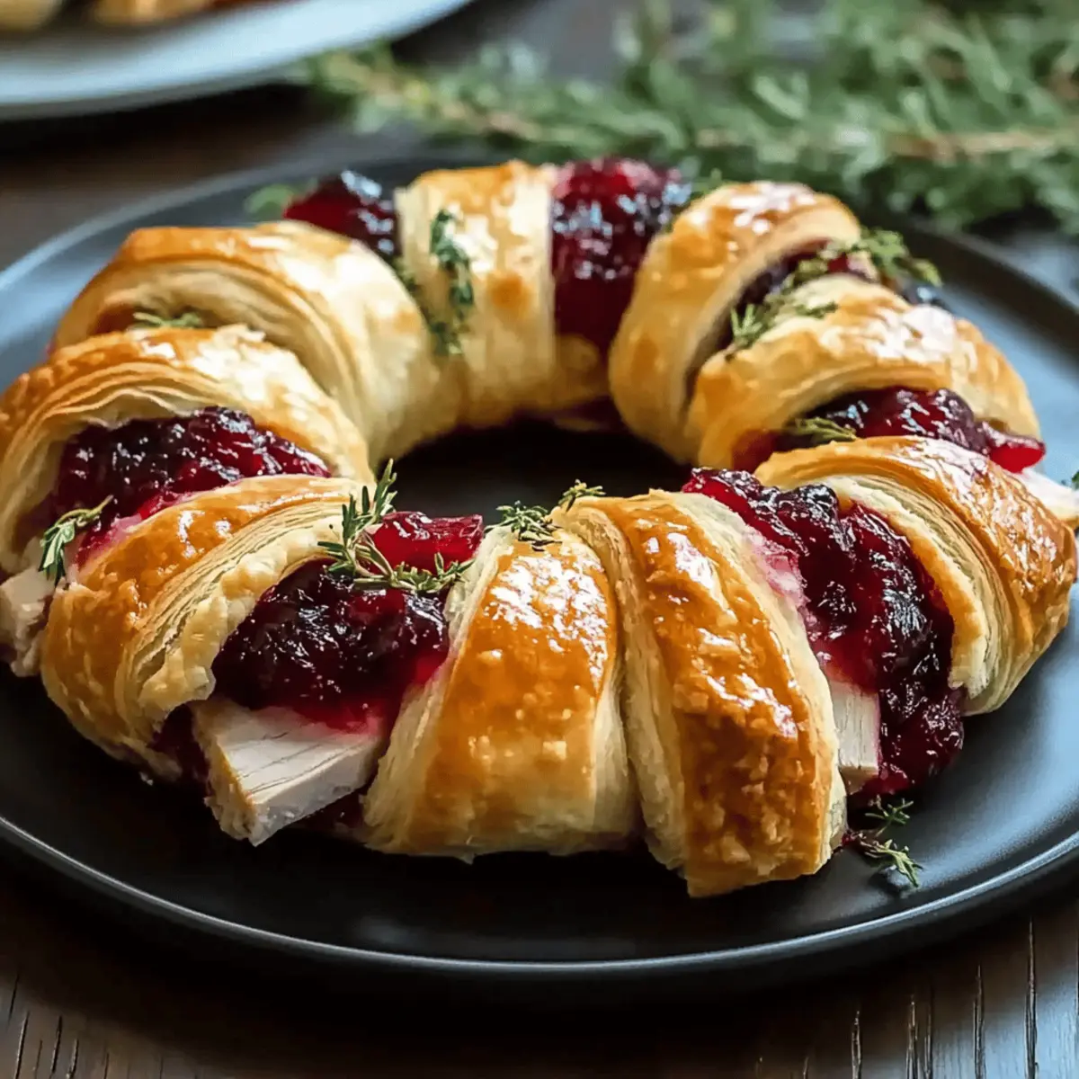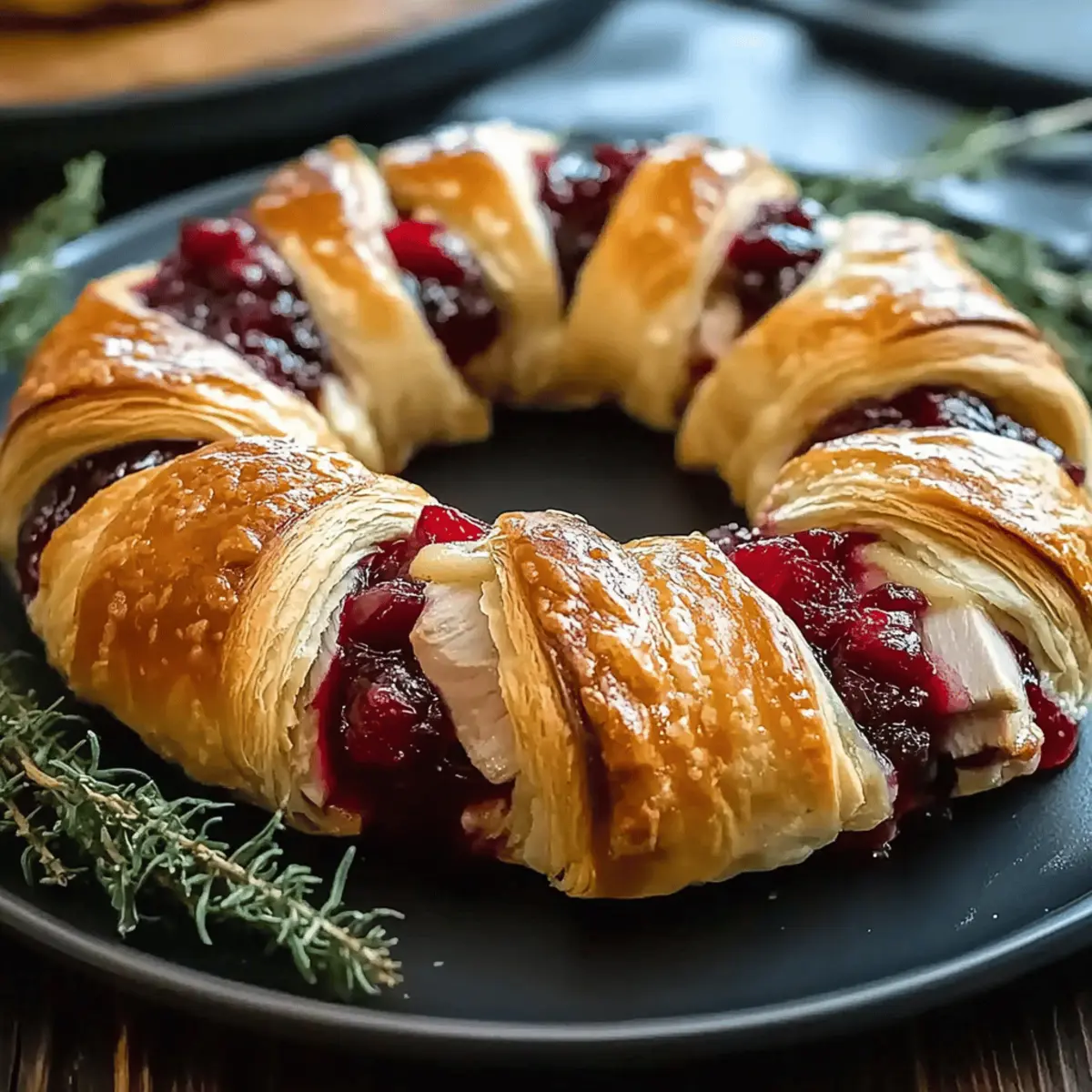 Jump to Recipe Print RecipeAs I stood in my kitchen, the aroma of melting cheese mingling with the sweet scent of cranberry sauce sparked a rush of nostalgia. There’s something enchanting about the flavors of the holidays—comforting yet festive, making the Turkey Cranberry Crescent Ring a delightful way to celebrate any occasion. This easy recipe combines tender turkey, tangy cranberry sauce, and gooey cheese ensconced in flaky crescent dough, all coming together in under 30 minutes. You won’t just impress your guests; this dish is a perfect way to repurpose leftovers! Whether it’s a cozy weeknight dinner or a grand brunch gathering, the versatility of this meal shines through, making it a true crowd-pleaser. Ready to unlock the secrets of this delicious creation? Let’s dive in! Why is This Recipe a Must-Try? Ease of Preparation: With just a few basic ingredients and simple steps, this Turkey Cranberry Crescent Ring comes together in under 30 minutes — perfect for busy weeknights or last-minute gatherings. Delightful Flavor Fusion: The combination of savory turkey, sweet cranberry sauce, and melted cheese creates a mouthwatering experience that everyone will love. Endless Versatility: Whether you want to use leftover turkey, swap in chicken, or even try ham or roast beef, this dish adapts to your preferences. Impressive Presentation: Shaped like a beautiful ring, this recipe looks as amazing as it tastes. It’s sure to wow your guests at any meal! Perfect for Any Occasion: Ideal for festive brunches, casual dinners, or family gatherings, this dish fits right in at any event. Plus, if you’re inspired by other fantastic meals, try pairing it with a Grilled Cheese Burrito or serving it alongside some delicious Char Siu Chicken. Turkey Cranberry Crescent Ring Ingredients • • The flavorful layers you’ll love! For the Dough Crescent dough – Provides a deliciously flaky exterior; using refrigerated dough makes prep a breeze. For the Filling Cooked turkey – Offers a hearty protein source; feel free to substitute with leftover chicken, ham, or roast beef for the Turkey Cranberry Crescent Ring. Cranberry sauce – Injects sweetness and moisture; both homemade and store-bought versions work beautifully. Cheese – Adds creaminess and savory notes; cheddar or mozzarella are excellent choices here. For Topping Melted butter – Essential for brushing over the dough to achieve that golden, appetizing finish. Sesame seeds – Optional for sprinkling on top, adding an earthy crunch and delightful flavor. Step‑by‑Step Instructions for Turkey Cranberry Crescent Ring Step 1: Preheat the Oven Begin by preheating your oven to 375°F (190°C). This temperature is essential for ensuring that your Turkey Cranberry Crescent Ring bakes evenly, achieving a golden-brown exterior. While the oven heats, you can gather your ingredients and prepare the crescent dough for assembly. Step 2: Prepare the Dough Unroll the refrigerated crescent dough on a clean, flat surface. To make it easier to work with, chill it slightly in the refrigerator for about 10 minutes. This prevents tearing as you separate the triangles and helps maintain the dough’s structure for your Turkey Cranberry Crescent Ring. Step 3: Assemble the Filling Spread the cooked turkey evenly over the unrolled crescent dough, leaving the edges clear. Next, drizzle the tangy cranberry sauce over the turkey, followed by a generous layer of your chosen cheese. This combination of flavors will create a delightful filling that enhances the overall taste of the Turkey Cranberry Crescent Ring. Step 4: Shape the Ring Starting from one end, carefully roll the crescent dough into a circle, pinching the ends together to secure the shape. Be gentle to keep the filling intact, forming a nice, circular ring. This visual cue of a seamless ring ensures that the Turkey Cranberry Crescent Ring will look appealing on the serving platter. Step 5: Brush with Butter Melt a few tablespoons of butter and use a pastry brush to apply it generously over the top of the dough. This step is crucial for enhancing the flavor and achieving that perfect golden-brown color during baking. If desired, sprinkle sesame seeds on top to add an extra layer of texture and flavor. Step 6: Bake the Ring Place the assembled Turkey Cranberry Crescent Ring on a baking sheet lined with parchment paper, ensuring there’s enough space for the ring to expand. Bake in the preheated oven for 20-25 minutes or until the dough is puffed and golden brown, and the cheese is bubbling. Keep an eye on it to prevent over-browning. Step 7: Cool and Serve Once baked to perfection, remove the Turkey Cranberry Crescent Ring from the oven and let it cool for about 5 minutes. This allows the flavors to set and makes it easier to slice. Serve warm, and enjoy the delightful combination of savory turkey and sweet cranberry sauce with family and friends! What to Serve with Turkey Cranberry Crescent Ring Elevate your meal experience by pairing this delightful dish with options that complement its savory and sweet flavors. Fresh Green Salad: A crisp salad with mixed greens adds a refreshing crunch, perfectly balancing the richness of the Turkey Cranberry Crescent Ring. Toss with a light vinaigrette for brightness. Garlic Roasted Vegetables: Roasted seasonal veggies enhance the dish’s comfort with their caramelized sweetness and earthy tones, offering a delightful contrast in texture. Honey-Glazed Carrots: Sweet, tender carrots bring out the sweetness of the cranberry sauce while adding a pop of color to your plate, making every bite more appealing. Creamy Mashed Potatoes: Fluffy mashed potatoes drizzled with gravy create a cozy, comforting feel, filling your plate with warmth; perfect for holiday gatherings. Cranberry Juice Spritzer: Serve a refreshing cranberry juice spritzer to echo the cranberry flavor in the ring while providing a festive touch; simply mix soda water with cranberry juice. Pumpkin
