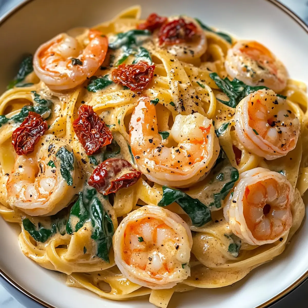 • Vegetarian Delight: Omit shrimp and double the spinach and sun-dried tomatoes for a colorful vegetarian dish. Adding mushrooms can enhance depth and umami flavor!
