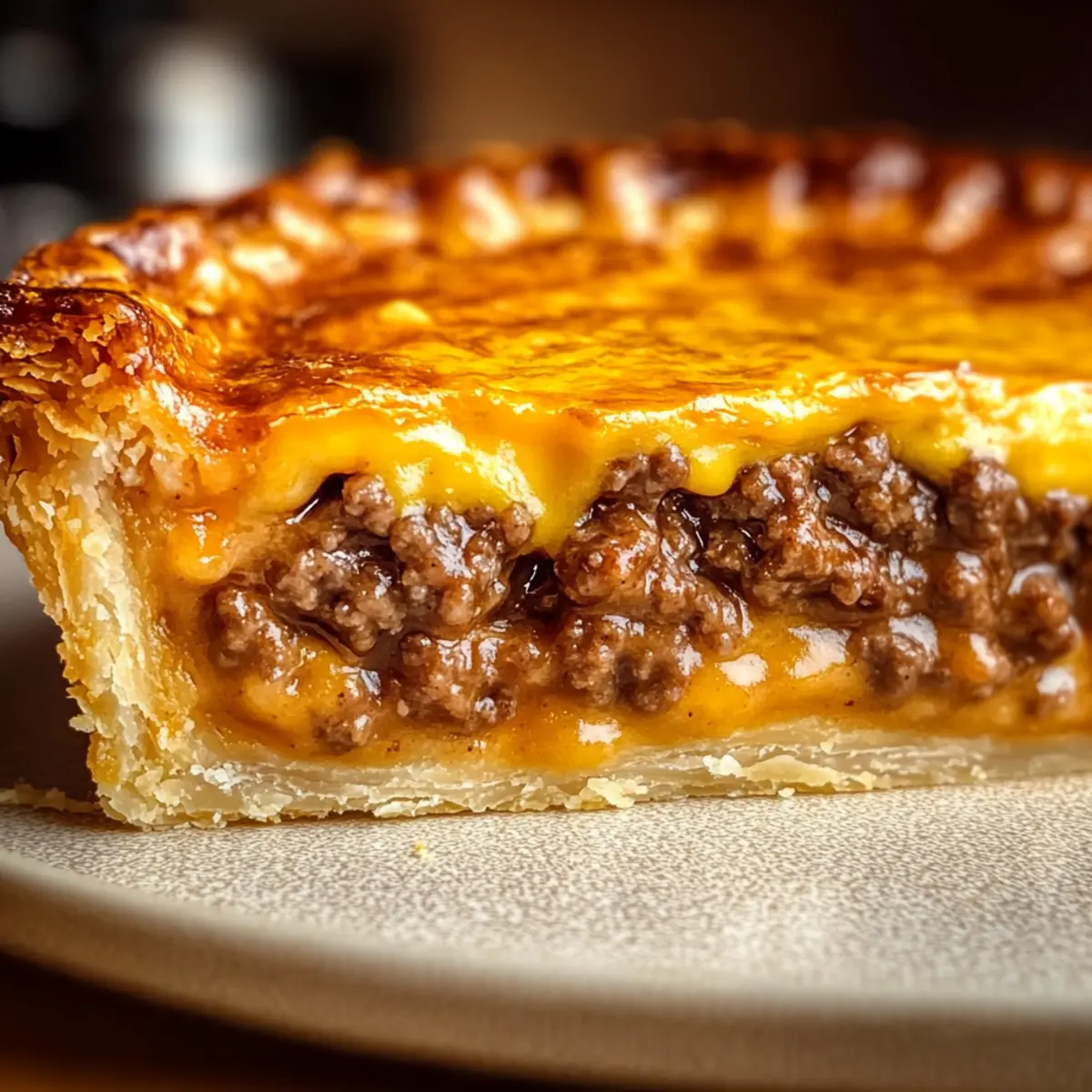 Jump to Recipe Print RecipeAs I stood in my kitchen, a warmth enveloped me not just from the oven but from the sweet anticipation of comfort food—my go-to remedy for any hectic day. This Ultimate Homemade Cheeseburger Pie combines the nostalgic flavors of a classic cheeseburger with a satisfying twist that brings smiles to every dinner table. Whether you’re short on time or just craving something hearty, this dish is a brilliant crowd-pleaser that’s as customizable as it is delicious. You can easily swap in your favorite veggies or substitute ground turkey to suit your family’s needs. With a crispy, golden crust and a gooey, cheesy filling, this pie is poised to become one of your kitchen legends. Ready to take the plunge into a comforting embrace of flavors? Let’s dive into this recipe and unlock the magic of homemade goodness together! Why Is Cheeseburger Pie So Irresistible? Comforting warmth: This pie brings the essence of a classic cheeseburger into a delightful, homey dish perfect for family dinners. Satisfying texture: Enjoy a crispy crust contrasted by a creamy, cheesy filling that delivers the ultimate bite. Customizable goodness: Easily swap out ingredients—like using ground turkey or adding your favorite veggies—for a unique twist. Quick prep: With just a few steps, this is an ideal meal for busy weeknights, sharing the love of homemade food without the fuss. Plus, pair it with a fresh salad or some delicious Banana Chips Homemade for a complete family feast! Ultimate Homemade Cheeseburger Pie Ingredients For the Filling • Ground Beef – The heart of the pie, providing a savory flavor; feel free to substitute with ground turkey for a lighter version. • Onion – Adds moisture and depth of flavor; choose yellow or white onion for the best taste. • Cheddar Cheese – Classic cheeseburger taste that melts beautifully; consider substituting with mozzarella or Monterey Jack for variety. • Salt – Enhances the overall flavor; adjust according to your taste preferences. • Black Pepper – Adds a slight kick; can be omitted for those who prefer a milder flavor. • Garlic Powder – Infuses aromatic flavor into the mix; for a stronger taste, fresh garlic works wonders. • Worcestershire Sauce (optional) – Boosts umami richness; omit if you want to keep it simple. For the Batter • Eggs – These act as a binding agent for the batter, creating a custardy texture. • Milk – Along with the eggs, it combines to form a smooth batter; whole or low-fat milk works here. • All-Purpose Flour – Provides structure to the top crust; gluten-free alternatives can be used for a variation. For Preparation • Cooking Spray or Butter – Essential for greasing the pan, ensuring nothing sticks. This Ultimate Homemade Cheeseburger Pie is sure to become a cherished recipe in your kitchen, delivering both comfort and satisfaction with every bite! Step‑by‑Step Instructions for Ultimate Homemade Cheeseburger Pie Step 1: Preheat Your Oven Begin by preheating your oven to 400°F (200°C). This ensures that when you’re ready to bake your Ultimate Homemade Cheeseburger Pie, it will cook evenly and develop a lovely golden crust. While your oven is heating up, you can prepare your ingredients, making sure everything is within reach for a smooth cooking process. Step 2: Cook the Ground Beef In a large skillet over medium heat, add the ground beef and diced onion. Brown the beef thoroughly until it’s no longer pink and the onions are soft and translucent, which should take about 6-8 minutes. Drain any excess fat to prevent a soggy pie, then move on to seasoning the meat for maximum flavor in your Ultimate Homemade Cheeseburger Pie. Step 3: Season the Meat Mixture Stir in salt, black pepper, garlic powder, and Worcestershire sauce into the cooked beef mixture. Ensure everything is well combined, allowing the spices to enhance the overall flavor. The mixture should smell savory and inviting—this is the heart of your delicious pie. Once seasoned, you’re ready for the layering process. Step 4: Prepare the Pie Dish Grease a 9-inch pie dish thoroughly with cooking spray or butter to prevent sticking. Spread the seasoned beef mixture evenly across the bottom of the dish, creating a solid base. Next, sprinkle a generous layer of shredded cheddar cheese over the meat, which will melt beautifully and add that classic cheeseburger flavor to your Ultimate Homemade Cheeseburger Pie. Step 5: Whisk the Batter In a mixing bowl, whisk together the eggs, milk, and all-purpose flour until a smooth batter forms with no lumps. This mixture will create a custardy topping for your pie. Pour this batter evenly over the beef and cheese layers, ensuring it envelops everything—this is what makes the pie so satisfying and filling. Step 6: Bake to Perfection Carefully place the pie dish in your preheated oven and bake for 25-30 minutes. You’ll know it’s done when the top is golden brown and the center has set—gently shake the dish to check for any wobbling. This perfect cooking time transforms your layers into the wonderfully cohesive Ultimate Homemade Cheeseburger Pie. Step 7: Cool and Serve After the baking time, remove your pie from the oven and let it cool for about 5-10 minutes before slicing. This cooling period helps the pie to firm up slightly, making it easier to serve. Cut it into wedges and enjoy this comforting, cheesy goodness that is sure to be a hit at your family dinner table! Make Ahead Options Preparing the Ultimate Homemade Cheeseburger Pie in advance is a fantastic way to save time during busy weeknights! You can cook the ground beef and onion mixture up to 24 hours in advance; simply refrigerate it once cooled. For even more convenience, you can assemble the entire pie (except for baking) and keep it in the fridge for up to 3 days. Just cover it tightly to maintain quality and freshness. When ready to serve, pour the batter over the layers and bake as instructed, ensu