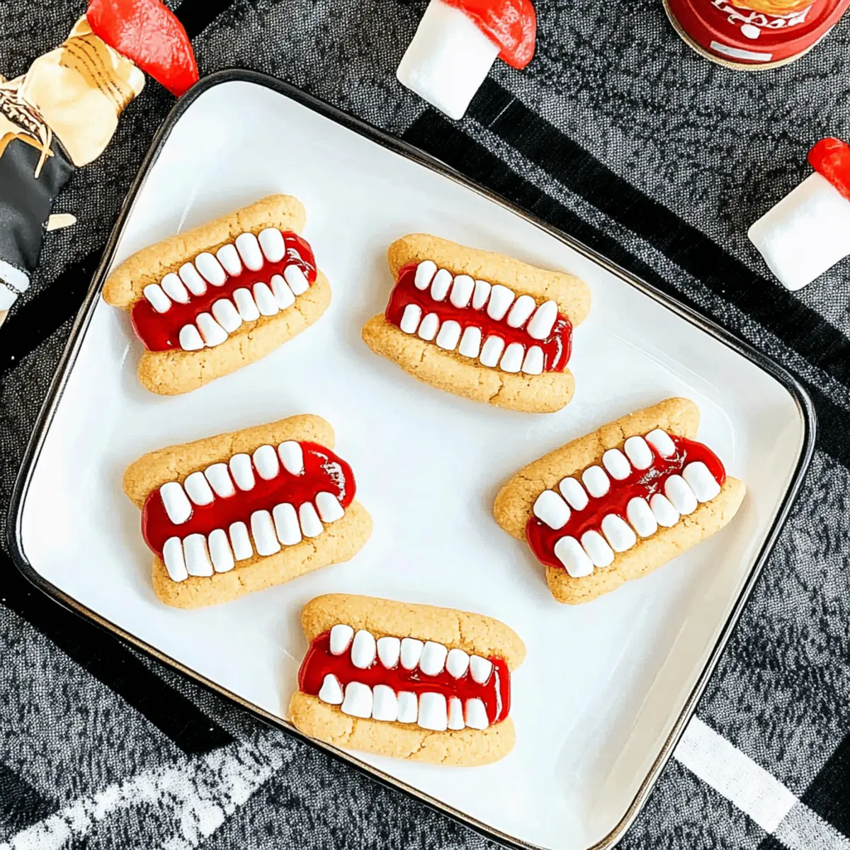 Absolutely! Store-bought sugar or chocolate chip cookies work best for these Vampire Fang Cookies as they provide a familiar sweetness and sturdy base for assembly. Ensure they are fresh and not broken to guarantee a successful construction!
