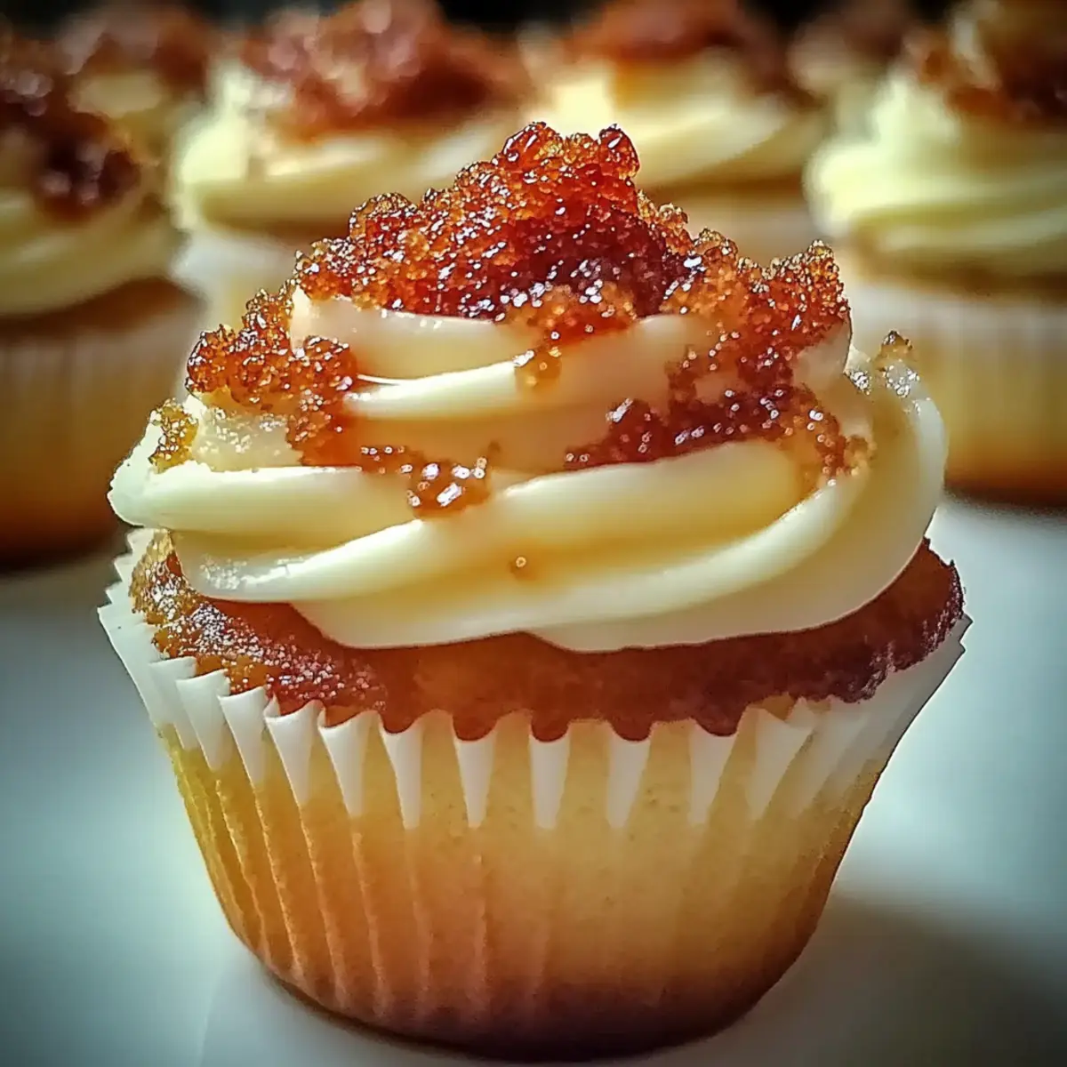 Jump to Recipe Print RecipeAs I stood in my kitchen, the warm aroma of vanilla wafted through the air, instantly transporting me to a cozy café filled with delectable desserts. That’s when I knew it was time to indulge in something truly special: Vanilla Bean Crème Brûlée Cheesecake Cupcakes. These delightful little treats marry the rich creaminess of cheesecake with that satisfying crispy top we all love in crème brûlée, making them the perfect solution for anyone tired of the same old fast food or boxed desserts. With their impressive presentation and gluten-free options, these cupcakes are quick to whip up and destined to impress at any gathering. Are you ready to bring a touch of gourmet elegance to your dessert table? Keep reading to learn how to create these irresistible delights! Why are these cupcakes a must-try? Indulgent Delight: Each Vanilla Bean Crème Brûlée Cheesecake Cupcake brings together the creamy richness of cheesecake with a delightful sugar crust that adds a satisfying crunch. Gluten-Free Options: You can easily adjust this recipe to be gluten-free, ensuring everyone can enjoy this exquisite treat. Simple to Make: With straightforward steps, you’ll have decadent desserts in no time, perfect for quick gatherings or special occasions. Elevated Presentation: Their elegant look is sure to impress your guests, making you the star of any dessert table. For a twist, serve with a drizzle of chocolate or alongside fresh berries for a pop of color! Vanilla Bean Crème Brûlée Cheesecake Cupcake Ingredients For the Crust • Graham Cracker Crumbs – Provides a delightful, crunchy base; opt for gluten-free graham cracker crumbs for a gluten-free option. • Unsalted Butter (melted) – Binds the crust together and adds richness. For the Cheesecake Filling • Granulated Sugar – Enhances overall sweetness; consider using coconut sugar for an intriguing flavor twist. • Cream Cheese (softened) – Essential for a smooth and creamy filling. • Sour Cream – Adds a tangy depth that balances the sweetness perfectly. • Vanilla Bean Paste – Infuses the filling with an intense vanilla flavor that complements the cupcakes beautifully. • Large Eggs – Key for achieving a perfectly creamy texture by helping to set the filling. • Heavy Cream – Creates a luxurious, velvety texture for the cheesecake. For the Topping • Turbinado Sugar – Sprinkled on top for that signature crunchy brûlée finish; can be substituted with brown sugar for variety. Step‑by‑Step Instructions for Vanilla Bean Crème Brûlée Cheesecake Cupcakes Step 1: Preheat Oven Preheat your oven to 325°F (163°C) to ensure it’s hot and ready for your Vanilla Bean Crème Brûlée Cheesecake Cupcakes. While the oven heats, gather your ingredients and line a cupcake pan with paper liners, creating a stylish base for your treats. Step 2: Prepare the Crust In a mixing bowl, combine graham cracker crumbs with melted unsalted butter until the mixture resembles wet sand. This will provide a delightful crunch to your cupcakes. Make sure it’s well mixed so that the crumbs hold together once pressed into the liners. Step 3: Divide and Press the Crust Spoon the crumb mixture into the lined cupcake cups, filling each one about halfway. Use the back of a spoon to press down firmly, ensuring an even and compact crust that will hold up against the rich cheesecake filling. Step 4: Beat the Filling In a large mixing bowl, beat together softened cream cheese and granulated sugar until smooth, approximately 3 minutes. This step is crucial for achieving a creamy texture in your cheesecake filling, so ensure no lumps remain for the best results. Step 5: Incorporate Ingredients Next, add the sour cream, vanilla bean paste, and large eggs one at a time to the cream cheese mixture. Mix until all ingredients are fully incorporated, about 1-2 minutes more. The cheesecake filling should be silky and a light yellow with flecks of vanilla bean throughout. Step 6: Fill the Cupcakes Carefully spoon the cheesecake mixture over the prepared crust in each cupcake liner, filling them about ¾ full. Take care not to overfill, as the cupcakes will rise slightly during baking. Step 7: Bake the Cupcakes Place the filled cupcake pan in the preheated oven and bake for 20-25 minutes. The edges should be set, while the centers remain slightly jiggly. This gentle baking helps achieve that perfect creamy texture intrinsic to your Vanilla Bean Crème Brûlée Cheesecake Cupcakes. Step 8: Cool the Cupcakes After baking, remove the cupcake pan from the oven and let it cool in the pan for about 10 minutes. This cooling period helps the cupcakes firm up slightly before transferring them to a wire rack to cool completely. Step 9: Chill the Cupcakes Once completely cool, refrigerate the cupcakes for at least 2 hours or overnight. Chilling allows the flavors to meld beautifully and ensures your Vanilla Bean Crème Brûlée Cheesecake Cupcakes are set to perfection before serving. Step 10: Brûlée the Top Just before serving, sprinkle a thin layer of turbinado sugar over the tops of each cupcake. Using a kitchen torch, caramelize the sugar until golden and bubbly, creating that signature brûlée crust. If you don’t have a torch, briefly broil them in the oven, watching carefully to prevent burning. How to Store and Freeze Vanilla Bean Crème Brûlée Cheesecake Cupcakes Fridge: Store the cupcakes in an airtight container for up to 3 days. This helps maintain their delicious flavor and creamy texture, making them ready to enjoy at a moment’s notice. Freezer: For longer storage, individually wrap each cupcake in plastic wrap followed by aluminum foil, then freeze for up to 2 months. Thaw overnight in the fridge before serving for the best taste. Reheating: If desired, you can briefly microwave the cupcakes for about 10-15 seconds to restore their creamy filling’s texture, but avoid melting the brûlée topping. Airtight Guidance: E