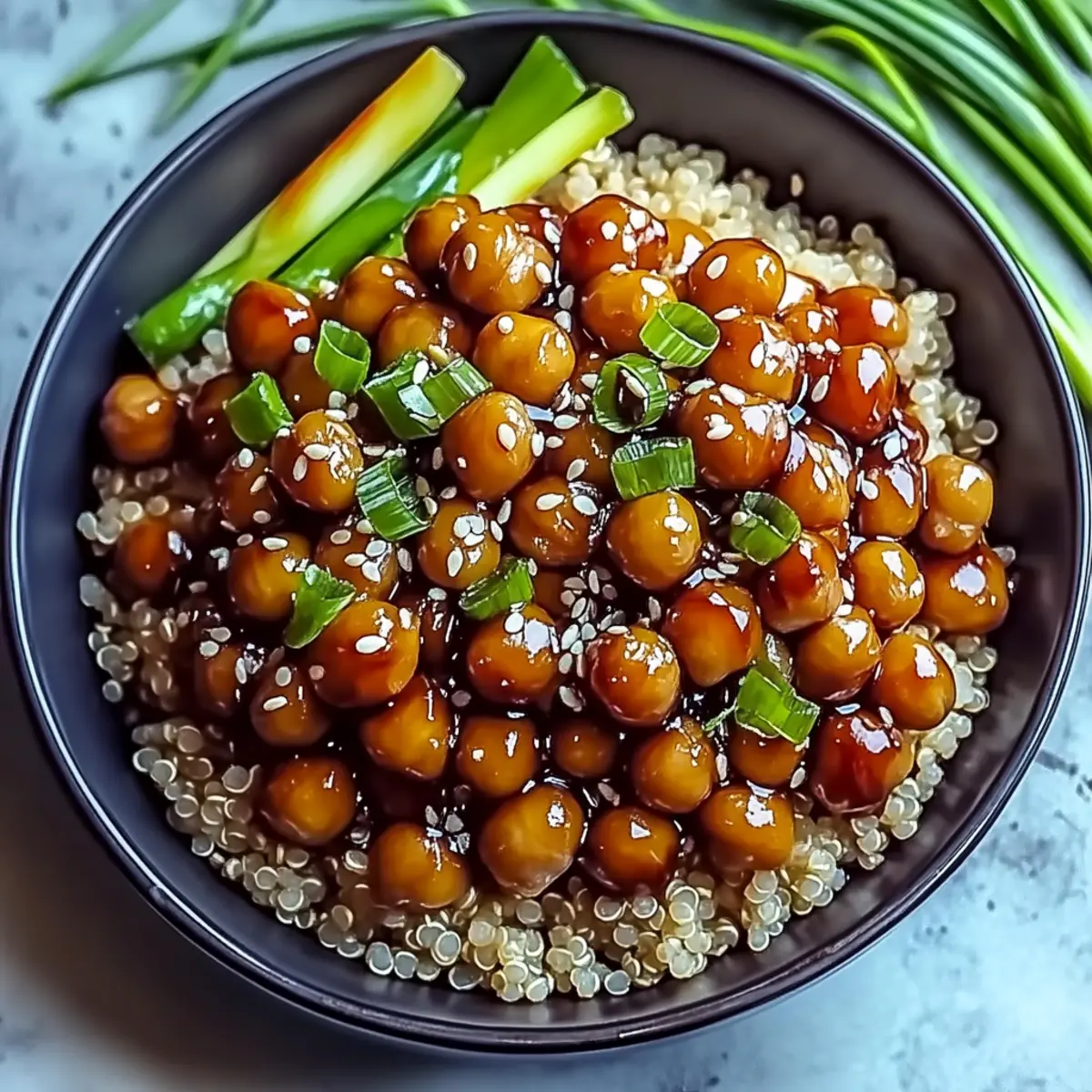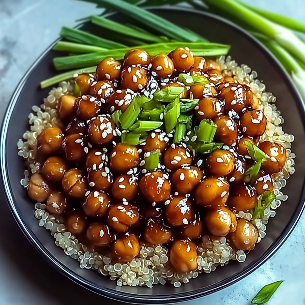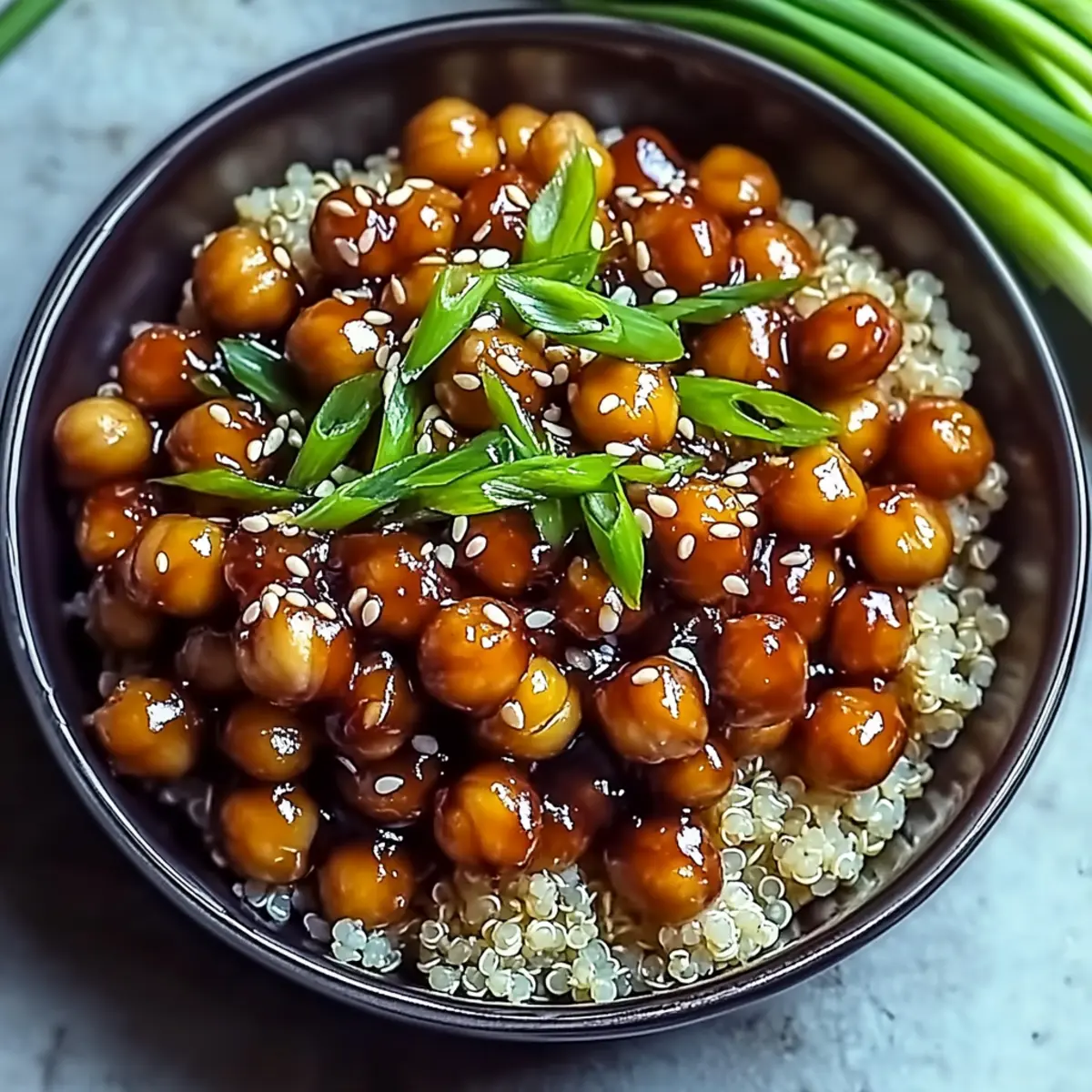 Jump to Recipe Print RecipeIn the midst of a busy week, there’s something magical about a dish that whisks you away with just a few ingredients and minimal effort. Enter my Vegan Sticky Sesame Chickpeas—a quick dinner that comes together in just 25 minutes, perfect for those who crave a delicious, home-cooked meal without a fuss. The centerpiece of this recipe is plump chickpeas draped in a glossy, sweet-and-savory glaze, creating a satisfying bite that even the biggest fast-food aficionados will rave about. Not only is this meal gluten-free and packed with plant-based protein, but it’s also a delightful way to enjoy wholesome ingredients without sacrificing flavor or time. Curious how to whip up this scrumptious dish? Let’s dive in! Why are these chickpeas so irresistible? Quick Preparation: You won’t believe how easy and fast this dish is—ready in just 25 minutes! Perfect for busy weeknights when you’re craving something homemade. Flavor Explosion: The sweet and savory glaze made from soy sauce and maple syrup creates an unforgettable taste, making them a hit with both vegans and non-vegans alike. Nutrient Boost: Packed with plant-based protein from chickpeas, this meal is a healthy choice that keeps you satisfied without weighing you down. Versatile Delight: Serve these sticky gems over rice or quinoa, or toss them into a colorful stir-fry with your favorite veggies—it’s the perfect way to use leftovers! Crowd-Pleaser: Get ready for compliments at the dinner table; everyone—from children to picky eaters—admires the glossy appearance and deliciousness of these Vegan Sticky Sesame Chickpeas. Vegan Sticky Sesame Chickpeas Ingredients • Explore the key components of this delicious dish! For the Sauce • Soy Sauce or Tamari – Adds deep savory flavor; opt for tamari for a gluten-free choice. • Maple Syrup – Provides sweetness; if you’re out, agave nectar makes a great substitute. • Rice Vinegar – Balances richness with acidity; apple cider vinegar can work in a pinch. • Toasted Sesame Oil – Infuses a nutty aroma; avoid substitutes for best flavor. • Cornstarch – Thickens the sauce for a satisfying texture. • Water – Necessary for creating a slurry with cornstarch. For the Chickpeas • Cooked Chickpeas (1 can, 15 oz) – Main protein source; I recommend using canned for convenience. • Olive Oil (2 tablespoons) – Essential for sautéing aromatics and building flavor. • Onion (1 medium, finely diced) – Adds natural sweetness; substitutes like shallots work well too. • Garlic (2 cloves, minced) – Enhances aroma and flavor; take care not to brown it. For Garnishing • Sesame Seeds (2 tablespoons) – Provides a lovely crunch; don’t skip this for added texture! • Green Onions (2 tablespoons, sliced) – Brightens the dish; can easily be replaced with chives. For Serving • Cooked Rice or Quinoa (2 cups) – Forms a hearty base; try cauliflower rice for a low-carb option. • Steamed or Roasted Vegetables (2 cups) – Any selection of veggies adds nutrition and color to your meal. With these Vegan Sticky Sesame Chickpeas, you’ll whip up a delightful dish that’s both quick and nourishing! Step‑by‑Step Instructions for Vegan Sticky Sesame Chickpeas Step 1: Heat Oil In a large skillet, warm 2 tablespoons of olive oil over medium heat. As the oil shimmers, add one finely diced medium onion and sauté for 3-4 minutes, stirring occasionally, until the onion becomes translucent and fragrant. This will serve as a flavorful base for your Vegan Sticky Sesame Chickpeas. Step 2: Sauté Garlic Add 2 minced garlic cloves to the skillet, stirring constantly for 1-2 minutes. You want the garlic to become aromatic but avoid browning it to prevent bitterness. As the garlic releases its wonderful scent, it’s time to move on to creating the sauce that will coat your chickpeas. Step 3: Mix Sauce In a separate bowl, whisk together ¼ cup of soy sauce (or tamari for gluten-free), 2 tablespoons of maple syrup, 1 tablespoon of rice vinegar, and 1 tablespoon of toasted sesame oil until well combined. This mixture will create the sweet and savory glaze that gives the Vegan Sticky Sesame Chickpeas their delicious flavor. Step 4: Combine Sauce & Aromatics Pour the sauce mixture into the skillet with the sautéed onion and garlic. Stir well to ensure the aromatics are evenly coated and the flavors meld together, creating a robust base for your chickpeas. Allow this to simmer for about a minute to enhance the taste. Step 5: Thicken Sauce In a small bowl, combine 1 tablespoon of cornstarch with 2 tablespoons of water to create a slurry. Stir this slurry into the skillet with the sauce, mixing continuously until the sauce thickens, which should take about 2-3 minutes. You’ll notice the sauce becoming glossy and slightly more viscous as it cooks. Step 6: Add Chickpeas Fold in one 15 oz can of drained and rinsed chickpeas into the thickened sauce, ensuring they’re well coated. Stir gently to combine, allowing the chickpeas to pick up the flavor of the sauce. This step keeps the Vegan Sticky Sesame Chickpeas both flavorful and satisfying. Step 7: Simmer Reduce the heat to low and allow the chickpeas to simmer in the sauce for 5-7 minutes, stirring occasionally. This gentle simmer allows the chickpeas to absorb the sweet and savory flavors fully, enhancing this quick dinner’s taste and texture. Step 8: Garnish Before serving, sprinkle 2 tablespoons of sesame seeds and 2 tablespoons of sliced green onions over the chickpeas, adding a delightful crunch and fresh flavor. This finishing touch elevates the presentation of your Vegan Sticky Sesame Chickpeas, making them visually appealing. Step 9: Serve Plate the Vegan Sticky Sesame Chickpeas over a bed of cooked rice or quinoa, accompanied by 2 cups of your favorite steamed or roasted vegetables. This hearty and nutritious meal is ready to take center stage at your dinner table, providing a delicious and s