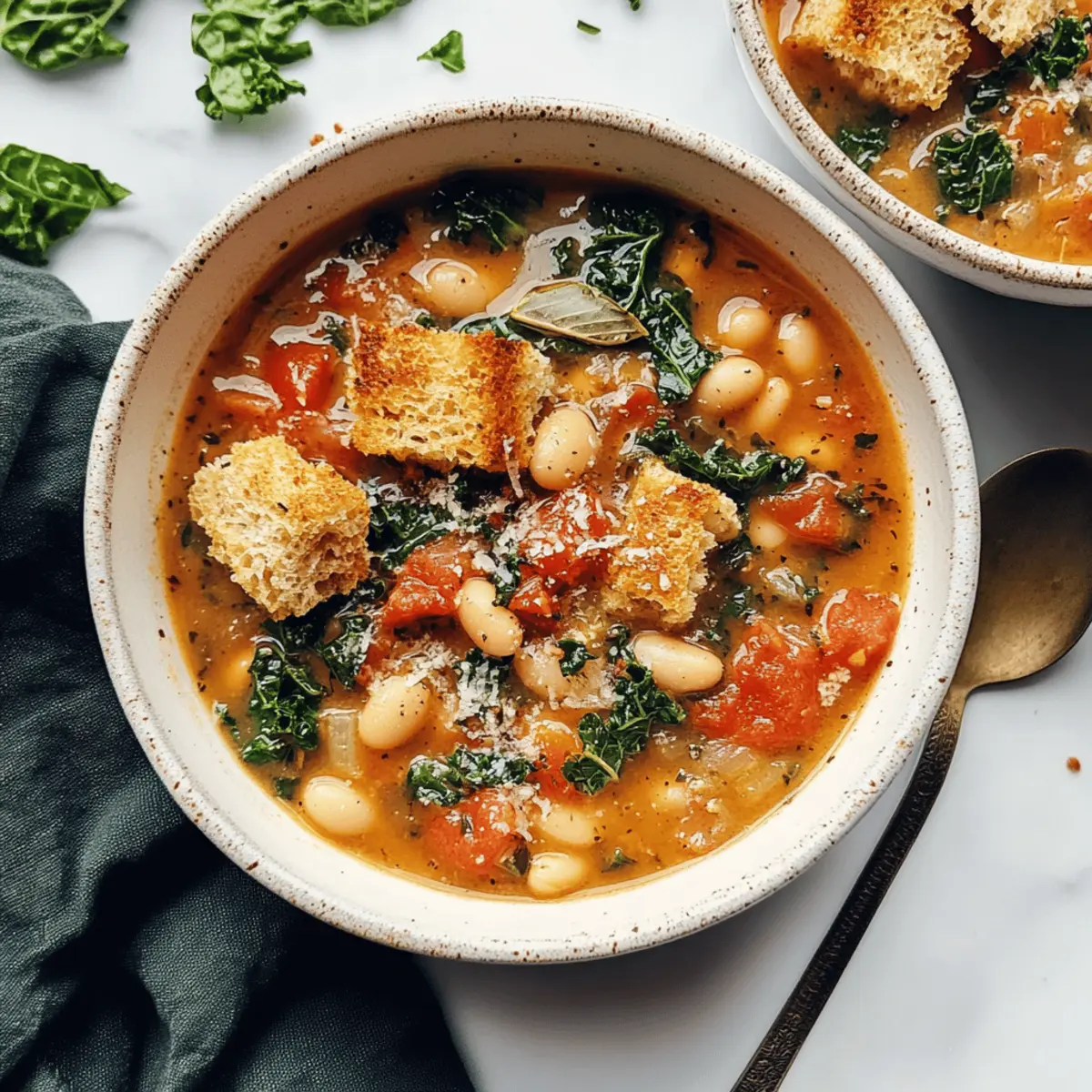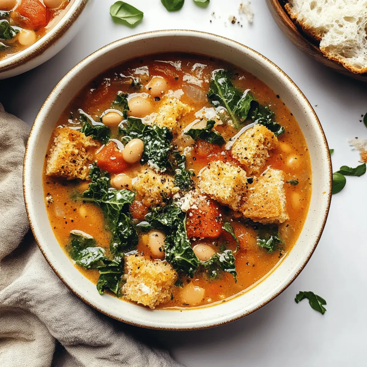 Jump to Recipe Print RecipeThe first whiff of this Creamy Tuscan White Bean & Kale Soup instantly transports me to a cozy Italian kitchen, where hearty flavors simmer and warmth fills the air. With each spoonful, you’ll experience the delightful combination of velvety white beans and vibrant kale, making this dish a true gem for anyone seeking a wholesome meal. Perfectly vegan and ready in just one pot, this soup is not only a time-saver, but it’s also a comforting hug for your soul, especially during those chilly evenings. Whether you’re meal prepping or simply in need of a cozy dinner, this White Bean Kale Soup is your answer to delicious, satisfying comfort food. Are you ready to create a bowl of this delicious warmth? Let’s dive into the recipe! Why is this soup a must-try? Hearty Comfort: This Creamy Tuscan White Bean & Kale Soup is a warm and nourishing hug in a bowl, perfect for cozy evenings. One-Pot Wonder: Effortlessly prepare a satisfying meal with minimal cleanup—ideal for busy weeknights or meal prepping! Flavorful Fusion: A delightful blend of herbs and vegetables creates a mouthwatering experience that’ll impress everyone at the table. Try serving it with some crusty bread or alongside a refreshing salad for a complete meal. Versatile Ingredients: Customize this recipe with leftover veggies or your favorite greens, making it adaptable to your pantry staples and personal tastes. Vegan & Wholesome: Packed with plant-based protein from white beans and rich in nutrients, this soup is perfect for anyone seeking healthy comfort food. It’s similar to our White Chicken Chili but with a unique twist! White Bean Kale Soup Ingredients For the Soup Base Olive Oil – Adds richness and depth to the soup; substitute with water for an oil-free version. Yellow Onion – Provides a savory base flavor and aroma; diced for even cooking. Carrots – Adds natural sweetness and warmth; peel and dice for uniform cooking. Celery – Contributes to the soup’s aromatic base; diced to blend seamlessly. Sea Salt – Enhances all flavors; divided for seasoning at different stages. Black Pepper – Adds warmth and slight heat; divided for layering flavor. Tomato Paste – Gives richness and umami flavor to the soup; a key ingredient for depth. Garlic – Provides a pungent aroma and flavor; minced for maximum potency. Red Pepper Flakes – Offers controlled heat; adjust to taste based on preference. Freshly Chopped Rosemary or Thyme – Adds aromatic depth; substitute dried if necessary. Dried Basil – Complements the other herbs with Italian flair. Vegetable Broth – Forms the soup base; can be homemade or store-bought for convenience. For the Hearty Components White Beans – Adds protein and creaminess; cannellini recommended for texture. Diced Tomatoes – Introduces acidity and sweetness; do not drain for more flavor. Chopped Kale Leaves – Adds nutty flavor and vibrant color; can substitute with spinach. For Creaminess and Flavor Balsamic Vinegar – Introduces sweetness and tang for a balanced flavor profile. Coconut Milk – Adds a creamy texture without dairy; can substitute cashew cream for a lighter option. For Optional Toppings Vegan Parmesan Cheese – Elevates presentation and flavor; sprinkle on top before serving. Fresh Basil – Adds a burst of freshness; chop and garnish just before serving. Croutons – Offers a delightful crunch; homemade or store-bought can enhance texture. Step‑by‑Step Instructions for Creamy Tuscan White Bean & Kale Soup Step 1: Sauté Aromatics In a large pot, heat 2 tablespoons of olive oil over medium heat until shimmering. Add the diced yellow onion, carrots, and celery, season with a pinch of sea salt and black pepper, then sauté for about 5 minutes until the vegetables are softened and fragrant. This foundational step builds the aromatic base for your Creamy Tuscan White Bean & Kale Soup. Step 2: Build Flavor Stir in 2 tablespoons of tomato paste, minced garlic, ¼ teaspoon of red pepper flakes, and your choice of chopped rosemary or thyme along with dried basil. Cook for an additional minute, stirring often, until the mixture becomes fragrant and the tomato paste deepens in color. This step enhances the rich flavors in your soup. Step 3: Simmer Pour in 4 cups of vegetable broth and add 2 cans of drained white beans and 1 can of diced tomatoes (including juice) into the pot. Season with remaining sea salt and black pepper, then bring the mixture to a gentle simmer. Cover the pot and cook for about 15 minutes, allowing the veggies to become tender and the flavors to meld beautifully. Step 4: Purée (Optional) If you prefer a creamier texture in your soup, use an immersion blender to partially blend the mixture right in the pot, leaving some chunky pieces for heartiness. Blend for about 30 seconds until the desired consistency is reached. This optional step will enhance the creamy texture of your White Bean Kale Soup without adding dairy. Step 5: Finish Soup Return the pot to a light simmer before adding the chopped kale. Cover and cook for another 5 minutes until the kale is wilted and vibrant. Finally, stir in 2 tablespoons of balsamic vinegar and 1 cup of coconut milk (or cashew cream), allowing the creaminess to meld with the other flavors, adjusting seasonings as desired. Step 6: Serve Ladle the hot Creamy Tuscan White Bean & Kale Soup into bowls and garnish with vegan parmesan cheese, fresh basil, and crunchy croutons if desired. Serve immediately, making sure to enjoy this comforting dish that offers warmth and satisfaction on chilly evenings. How to Store and Freeze White Bean Kale Soup Fridge: Store your creamy White Bean Kale Soup in an airtight container for up to 4 days, ensuring it remains fresh and delicious for quick meals. Freezer: This soup freezes wonderfully! Portion it into freezer-safe containers and enjoy it for up to 1 month. Thaw overnight in the fridge before reheating. Reheating: When ready to enjoy, gently re
