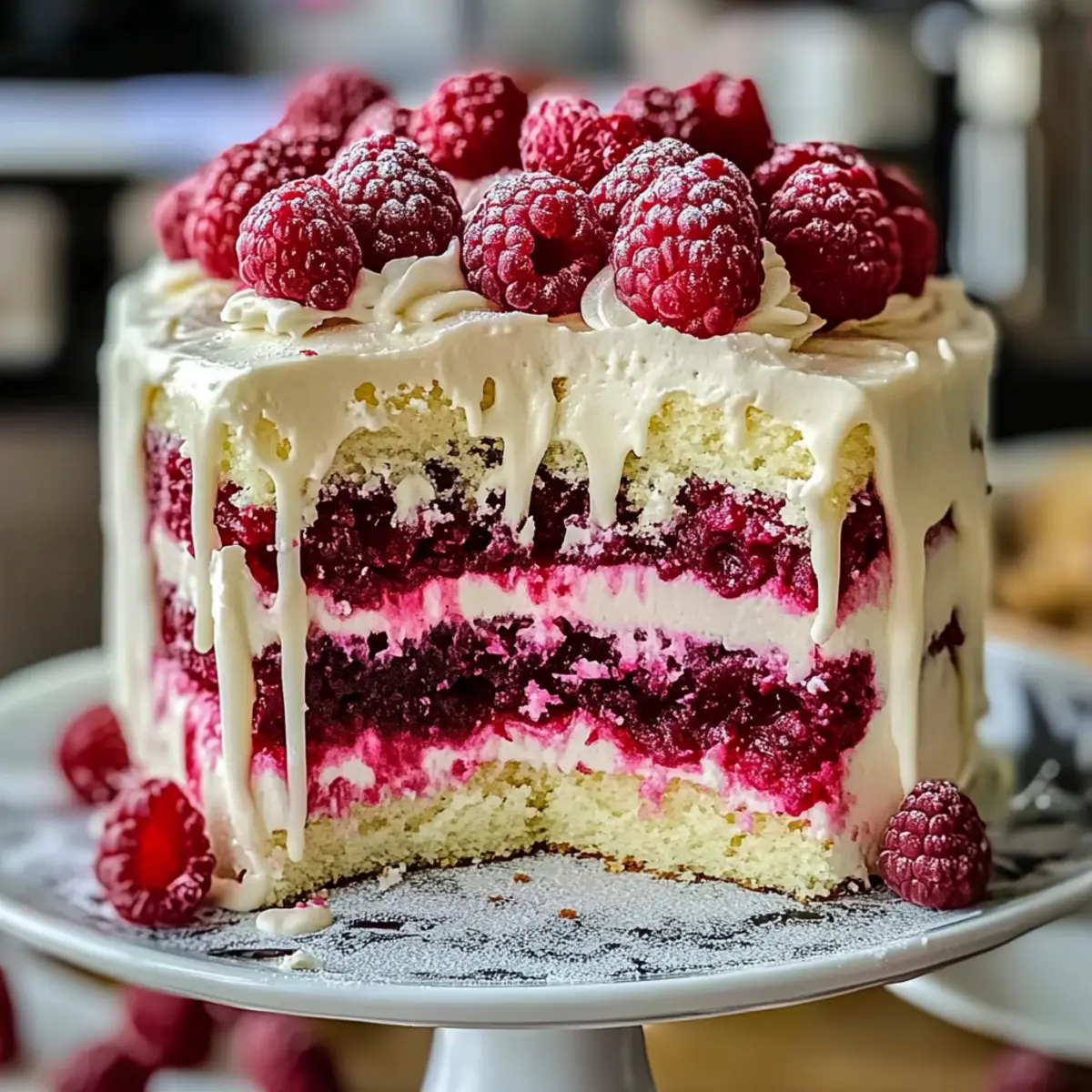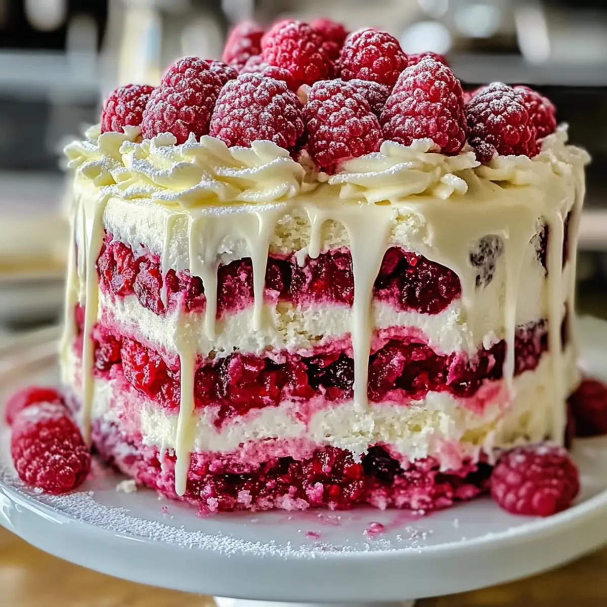 Jump to Recipe Print RecipeAs I stood in the kitchen, the sweet aroma of melting white chocolate wafted through the air, casting a spell over my senses. If you’re seeking a show-stopping dessert for your next celebration, look no further than this White Chocolate Raspberry Dream Cake. Its luscious layers offer a perfect balance of creamy white chocolate and tart raspberry, making it a delightfully impressive choice for birthdays, anniversaries, or any special gathering. Not only does this cake impress with its beautiful presentation, but it’s also surprisingly quick to whip up—a true triumph for any home chef. Imagine serving a slice that looks like it belongs in a gourmet bakery while knowing you made it with love. Are you ready to dive into this delicious adventure? Why is this cake so irresistible? Luxurious Layers: Each slice of this White Chocolate Raspberry Dream Cake reveals soft, sumptuous layers that are simply irresistible. The combination of rich white chocolate and tart raspberries creates a heavenly flavor that will have your guests asking for seconds. Quick & Easy: Despite its impressive appearance, this cake is surprisingly simple to make, perfect for both novice and experienced bakers alike. If you’re short on time but still want a stunning dessert, you’re in luck! Celebration Ready: Whether for birthdays, anniversaries, or holidays, this cake makes a statement and is sure to be the highlight of your celebrations. Serve it with a scoop of vanilla ice cream for the ultimate treat. Flexible Variations: Don’t hesitate to customize! Transform it into cupcakes or a slab cake to fit your needs. The options are endless, making it ideal for various occasions. Crowd-Pleaser: Trust me, this cake is a favorite with everyone. It appeals to chocolate lovers and fruity palates alike, making it a universally loved dessert at any gathering. Dive into this delicious experience and impress your loved ones with your baking skills! White Chocolate Raspberry Dream Cake Ingredients For the Cake All-purpose flour – Provides structure and texture; can use gluten-free flour for a gluten-free version. Baking powder – A leavening agent to help the cake rise; ensure it’s fresh for best results. Salt – Enhances the flavor balance in the cake. Unsalted butter (softened) – Adds richness and necessary moisture for a tender cake; allow it to reach room temperature before use. Granulated sugar – Sweetens the cake and helps create a light, fluffy texture when creamed with butter. Large eggs – Offers moisture and structure; use room temperature eggs for better incorporation. Vanilla extract – Adds depth to the overall flavor profile. White chocolate chips (melted) – Infuses the cake with a sweet, creamy flavor; cool slightly before adding to prevent cooking the eggs. Whole milk – Contributes to the cake’s moisture and helps achieve a tender crumb. For the Raspberry Filling Raspberries (fresh or frozen) – Introduces a tartness and vibrant color; can use high-quality raspberry jam for simplicity. Sugar (for filling) – Sweetens the raspberry filling. Lemon juice – Brightens the filling’s flavor, enhancing the overall taste. Cornstarch mixed with water – Acts as a thickener for the raspberry filling to achieve the right consistency. For the Frosting Unsalted butter (for frosting) – Base for creating a creamy white chocolate frosting. Powdered sugar – Sweetens the frosting and adds structure. Melted white chocolate – Enhances the flavor and richness; ensure it’s melted and slightly cooled. Milk – Adjusts the consistency of the frosting for spreading ease. For Garnish (Optional) Mint leaves – Adds a fresh touch for decoration. Fresh raspberries – Enhances presentation and adds to the flavor theme. White chocolate curls – A beautiful finish that elevates your cake’s visual appeal. This White Chocolate Raspberry Dream Cake not only promises a delightful taste but also invites you to create a memorable centerpiece for your celebrations! Step‑by‑Step Instructions for White Chocolate Raspberry Dream Cake Step 1: Preheat and Prepare Pans Begin by preheating your oven to 350°F (175°C). While the oven warms up, take three 8-inch round cake pans and generously grease each one with unsalted butter before dusting them with flour. This will ensure that your White Chocolate Raspberry Dream Cake releases easily after baking, leaving you with clean, beautiful layers. Step 2: Mix Dry Ingredients In a medium mixing bowl, whisk together 2 ½ cups of all-purpose flour, 2 tsp of baking powder, and a pinch of salt until thoroughly combined. This step not only incorporates the ingredients but also aerates them, promoting a light and fluffy cake. Once mixed, set this dry mixture aside as you move on to the wet ingredients. Step 3: Cream Butter and Sugar In a large bowl, using an electric mixer, beat 1 cup of softened unsalted butter and 2 cups of granulated sugar on medium speed until the mixture becomes light and fluffy, about 3-4 minutes. You’ll know it’s ready when it’s pale in color and has doubled in volume. This step is crucial for giving your cake a tender crumb and a delightful taste. Step 4: Add Eggs and Flavor One by one, add 4 large room temperature eggs to the butter-sugar mixture, beating well after each addition to fully incorporate them. Then, stir in 1 tsp of vanilla extract and 1 cup of melted white chocolate, allowing those rich flavors to blend together homogeneously. The melted chocolate should be warm but not too hot—this will ensure the eggs don’t curdle. Step 5: Combine Wet and Dry Mixtures Gradually add the dry flour mixture to the butter mixture, alternating with 1 cup of whole milk; start and finish with the flour. Mix on low speed just until barely combined—do not overmix, as this can create a dense cake. Your batter should be thick yet pourable, with no visible flour streaks, ready to transform into the charming layers of the Whi