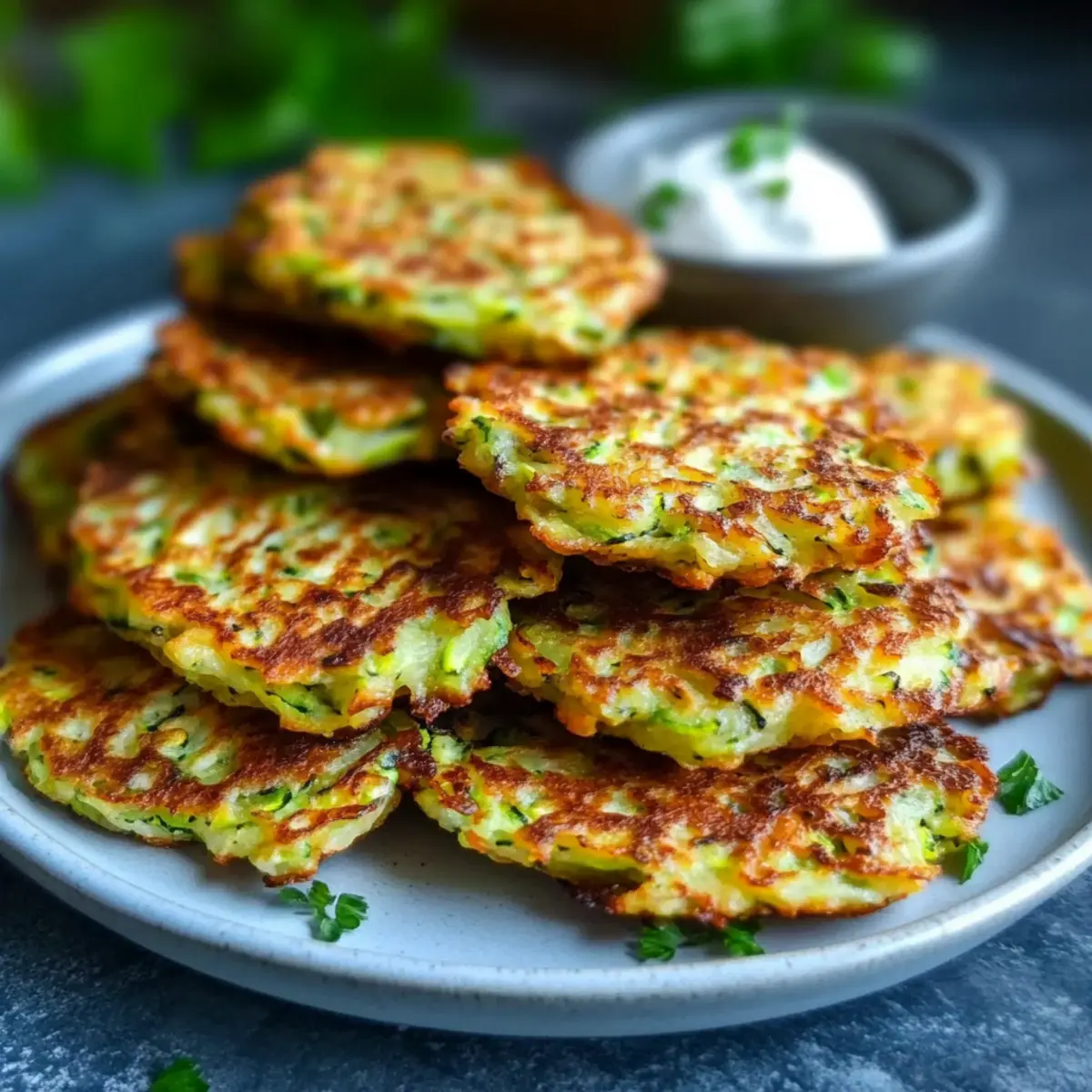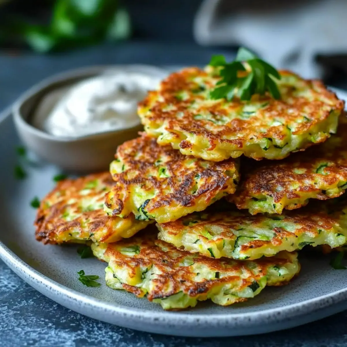 Jump to Recipe Print RecipeAs I flipped through my recipe notebook one evening, I stumbled upon a handwritten note that simply read “Zucchini Fritters.” It transported me back to a summer picnic where these delicious bites were the star of the show. Today, I’m excited to share my take on this classic dish with a twist: healthy gluten-free zucchini fritters! These crispy delights are not just a treat for the senses; they are packed with high protein and fiber to keep your hunger at bay. Quick to whip up, they make for an easy breakfast, a satisfying lunch, or even a post-workout snack. By using oat or almond flour, I ensure they remain low in carbs while maintaining all the delicious flavor that zucchini fritters promise. Ready to dive into a new culinary adventure? Let’s bring crispy, guilt-free goodness to your table! Why are These Zucchini Fritters So Irresistible? Crispy Perfection: These zucchini fritters boast a golden-brown exterior that’s irresistibly crunchy, making them a delightful snack or meal accompaniment. Healthy Twist: Enjoy the goodness of a gluten-free, high-protein recipe without compromising on taste, perfect for clean eating enthusiasts. Quick & Easy: With minimal preparation time, you can have these fritters ready in under 30 minutes, making them a fantastic time-saver for busy days. Versatile Appeal: Serve them warm with a dollop of Greek yogurt or tzatziki, or incorporate into meal prep to elevate any dish – they pair beautifully with salads or can stand alone! Delicious Flavor: The aromatic blend of garlic and herbs creates bursts of flavor in every bite, making them an instant favorite for family and friends; check out more ideas like my Garlic Chicken Zucchini for tasty pairings. Discover the joy of homemade cooking with these satisfying fritters that everyone will love! Zucchini Fritter Ingredients For the Fritters • Zucchini – The star ingredient! Be sure to squeeze out excess moisture to achieve that crispy texture. • Eggs – Essential for binding the fritters together while also boosting the protein content. • Oat Flour (or Almond Flour) – Gluten-free options that provide structure; almond flour is a great low-carb substitute. • Grated Parmesan Cheese (optional) – Adds richness and a deliciously crispy finish; feel free to omit for a dairy-free version. • Plain Greek Yogurt (or Cottage Cheese) – Keeps the fritters moist while enhancing their protein profile; swap for plant-based yogurt if needed. • Garlic Clove – A must for flavor! Minced garlic elevates the taste to a whole new level. • Sea Salt & Black Pepper – Enhance the overall flavor; adjust based on personal preference. • Dried Oregano or Thyme – Boosts the aromatic factor; can easily be switched with fresh herbs like basil or dill. • Fresh Parsley or Dill – Brings a fresh touch to your fritters; use any herbs you adore! • Olive Oil – Vital for pan-frying; olive oil spray offers a lighter cooking option. Feel free to get creative with these Zucchini Fritters, mixing in your favorite flavors to make them truly yours! Step‑by‑Step Instructions for Zucchini Fritters Step 1: Prepare the Zucchini Start by washing and trimming two medium zucchinis, then grate them using a box grater or food processor. Once grated, transfer the zucchini to a clean kitchen towel or cheesecloth and squeeze out as much excess moisture as possible—this crucial step ensures your zucchini fritters will achieve that desired crispy texture. Step 2: Mix the Batter In a large mixing bowl, combine the drained grated zucchini with two beaten eggs, one cup of oat flour (or almond flour), and half a cup of grated Parmesan cheese if desired. Add a quarter cup of plain Greek yogurt, one minced garlic clove, and a tablespoon each of dried oregano or thyme, along with salt and pepper to taste. Mix until a cohesive batter forms that holds together well. Step 3: Heat the Skillet Place a non-stick skillet over medium heat and add enough olive oil to coat the bottom—about two tablespoons should suffice. Allow the oil to heat for about one to two minutes, ensuring it shimmers but doesn’t smoke. The right temperature will help the zucchini fritters achieve a beautiful golden-brown crust. Step 4: Form the Fritters Using a spoon, scoop about two tablespoons of the batter and gently shape it into a patty with your hands. Carefully place the fritter in the heated skillet, making sure not to overcrowd the pan to allow even cooking. You can fit about three to four patties in a standard skillet, leaving enough space in between. Step 5: Cook Until Golden Let the zucchini fritters cook for about 3-4 minutes on one side. Keep an eye on them; you’re looking for a deep golden color before flipping. Once they’re perfectly browned, use a spatula to flip each fritter over and cook for another 2-3 minutes until they are crispy and cooked through. Step 6: Drain and Serve Once the fritters are done cooking, carefully transfer them to a plate lined with paper towels to drain any excess oil. Serve the zucchini fritters warm, either on their own or with a dollop of Greek yogurt or tzatziki for added flavor. The fritters should have a lovely golden color with a crispy exterior and soft center, ready to be enjoyed! What to Serve with Healthy Gluten-Free Zucchini Fritters Elevate your culinary experience with delightful dishes that beautifully accompany these crispy, protein-packed bites. Creamy Greek Yogurt: The cool, tangy flavor of Greek yogurt provides a refreshing contrast that enhances the fritters’ taste. It’s the perfect dip that feels indulgent yet healthy. Mixed Green Salad: A vibrant salad bursting with fresh vegetables adds a crunchy, refreshing element to your meal. Toss in your favorite vinaigrette for an extra zing! Garlic Aioli: This rich and savory dip complements the fritters with its creamy texture and aromatic garlic notes, making each bite even more irresistible. Quinoa Pilaf: Fluff